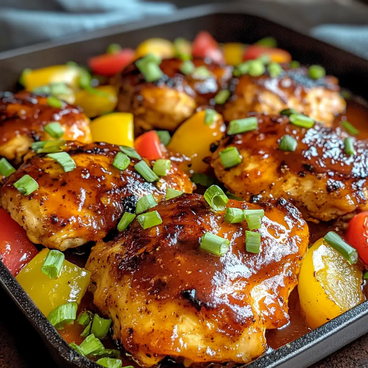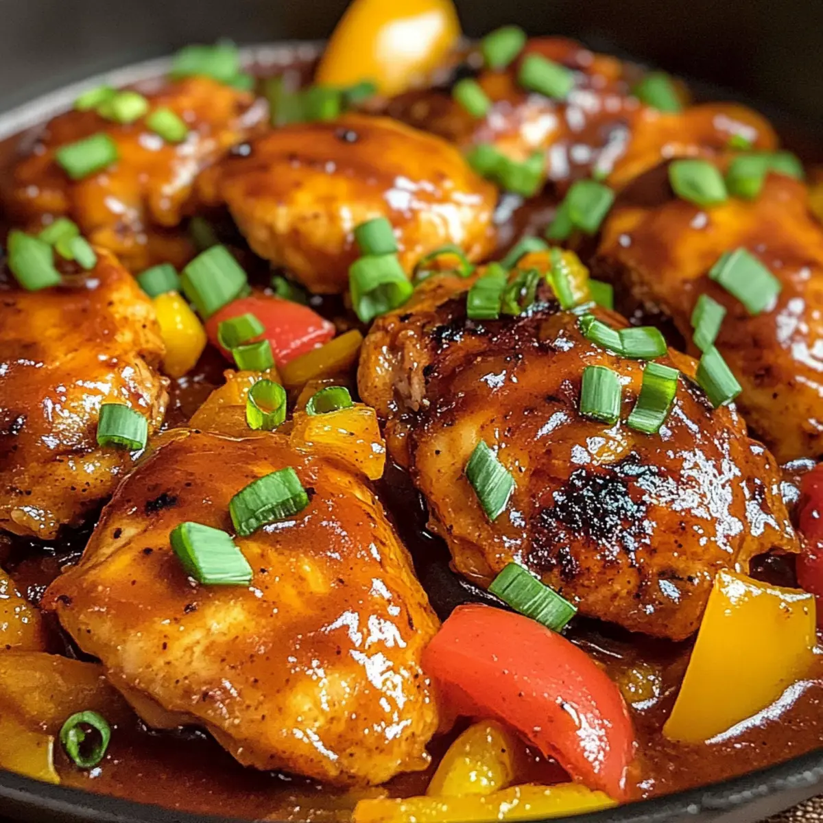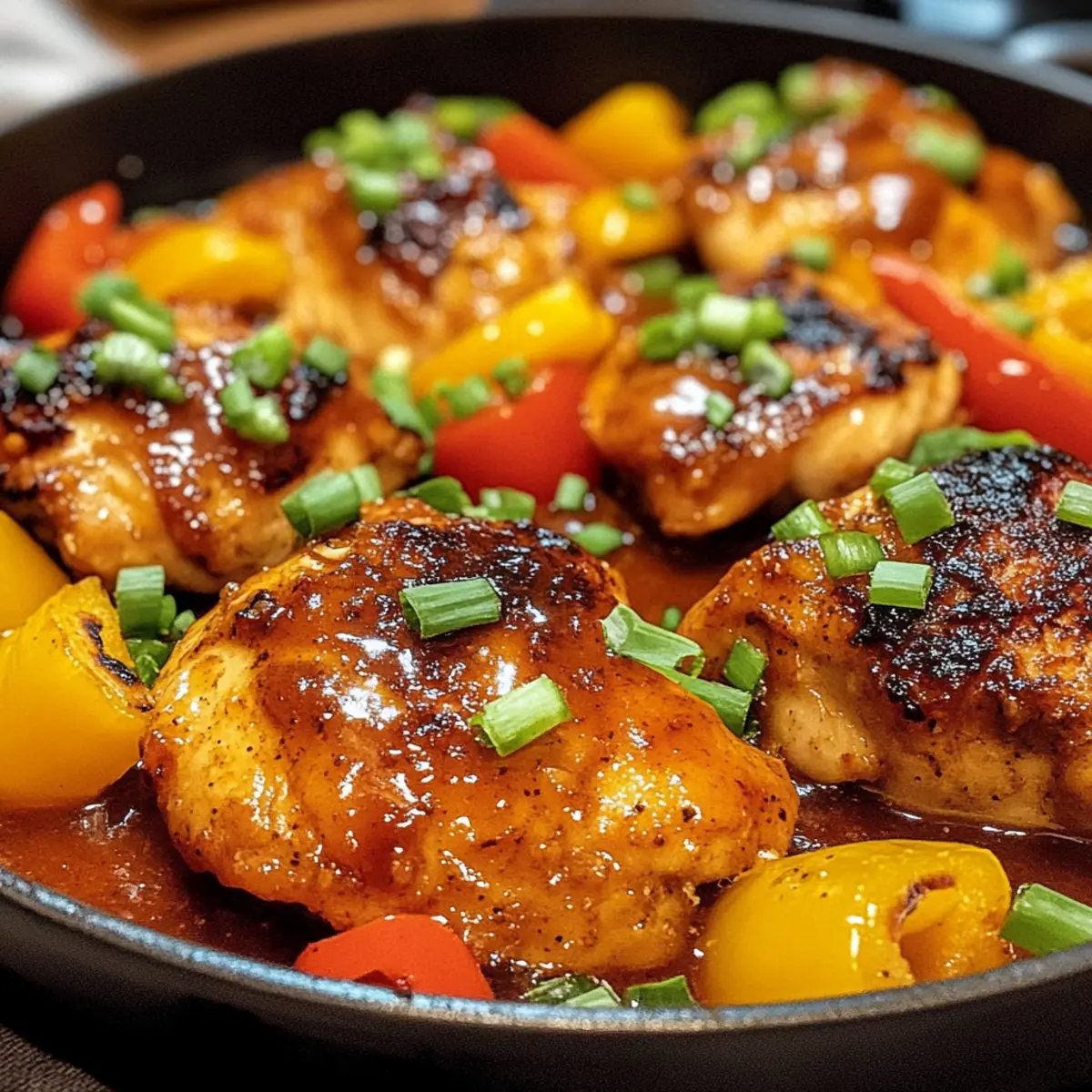 Als ich das erste Mal den Duft von scharfem süßem Hähnchen Diablo in meiner Küche verspürte, war es, als würde ich mich in einer lebhaften asiatischen Straße wiederfinden, wo die Aromen wie ein Fest für die Sinne sind. Dieses Rezept für scharfes süßes Hähnchen Diablo bringt nicht nur den perfekten Kick ins Spiel, sondern ist auch eine wahre Freude für all jene, die das Kochen lieben! Auch wenn du unter Zeitdruck stehst, ist dieses Gericht schnell zubereitet und dabei so vielseitig, dass du es nach Belieben anpassen kannst – sei es für ein schnelles Abendessen oder einen geselligen Abend. Die zarten Stücke Hühnchen vereinen sich mit einer glänzenden, würzigen Sauce und bieten ein Geschmackserlebnis, das einfach begeistert. Bist du bereit, deine Geschmacksnerven auf eine spannende Reise mitzunehmen? Warum wirst du dieses Rezept lieben? Einfachheit: Die Zubereitung ist kinderleicht und erfordert nur grundlegende Kochkünste. Vielseitigkeit: Dieses Rezept kann leicht angepasst werden, indem du verschiedene Gemüsesorten oder Proteinalternativen wie Tofu wählst. Reichhaltiger Geschmack: Die ausgewogene Kombination aus Süße und Schärfe sorgt für ein wahres Geschmacksfeuerwerk, das deine Familie und Freunde begeistern wird. Zeitersparnis: In nur 30 Minuten hast du ein köstliches Gericht auf dem Tisch, perfekt für hektische Werktage. Gesunde Option: Mit frischen Zutaten und der Möglichkeit, die Schärfe anzupassen, ist dieses Gericht eine gesunde Alternative zu Fast Food. Kreative Freiheit: Experimentiere mit unterschiedlichen Gewürzen oder perlenden Beilagen, um deinem eigenen Menü einen persönlichen Touch zu verleihen! Scharfes süßes Hähnchen Diablo Zutaten Für das Hähnchen Hähnchenschenkel ohne Knochen – Perfekte Proteinquelle, die nach dem Marinieren zart und saftig wird; für eine magere Option Hähnchenbrust verwenden. Sojasauce – Verleiht Umami-Geschmack; verwende natriumarme Sojasauce für eine gesündere Variante. Honig – Fügt Süße hinzu; Agavendicksaft oder Ahornsirup als vegane Alternative nutzen. Sriracha – Liefert Schärfe; passe die Menge je nach gewünschtem Schärfegrad an oder verwende Chili-Knoblauch-Sauce. Für das Gemüse Rote Paprika – Bringt Süße und Farbe ins Gericht; kann für einen anderen Geschmack durch grüne Paprika ersetzt werden. Gelbe Paprika – Steigert die Süße und die visuelle Attraktivität; andere Paprikasorten oder verschiedene Gemüsesorten sind ebenfalls möglich. Zwiebel – Bildet eine herzhafte Basis; weiße oder gelbe Zwiebeln sind gute Alternativen. Knoblauch – Sorgt für aromatische Tiefe; frisch ist bevorzugt, aber Knoblauchpulver kann im Notfall verwendet werden. Ingwer – Bietet Wärme und Würze; kann durch gemahlenen Ingwer ersetzt werden, wenn frischer nicht verfügbar ist. Für die Sauce Reisessig – Sorgt für einen Ausgleich der Säure; Apfelessig ist eine brauchbare Alternative. Cornstärke – Wird zum Verdicken der Sauce verwendet; kann mit Pfeilwurzmehl ersetzt werden. Wasser – Hilft, die Cornstärke aufzulösen und die Sauce zu bilden; keine Ersatzstoffe nötig. Sesamöl – Fügt einen nussigen Geschmack hinzu; kann weggelassen werden, wenn nicht verfügbar. Garnitur Frühlingszwiebeln – Für die Garnitur; kann durch Schnittlauch ersetzt werden. Sesamkörner – Optionale Garnitur für zusätzliche Textur. Dieses Rezept für scharfes süßes Hähnchen Diablo bringt den perfekten Kick auf den Tisch und sorgt für ein unvergessliches Geschmackserlebnis! Schritt-für-Schritt-Anleitung für Scharfes süßes Hähnchen Diablo Step 1: Marinieren des Hähnchens In einer mittelgroßen Schüssel das Hähnchen mit Sojasauce, Honig, Reisessig, Sriracha, Speisestärke und Sesamöl vermengen. Achte darauf, dass das Hähnchen gleichmäßig mit der Marinade bedeckt ist. Decke die Schüssel ab und stelle sie für mindestens 30 Minuten bis zu 2 Stunden in den Kühlschrank, damit die Aromen gut einziehen können. Step 2: Sauce zubereiten In einer kleinen Schüssel die restliche Sojasauce, Honig, Reisessig, Sriracha und Wasser gut vermischen. Mit einem Schneebesen ordentlich durchrühren, bis die Mischung einheitlich ist. Diese Sauce wird später über das Hähnchen gegossen, um das Gericht zu vervollständigen und Geschmack hinzuzufügen, also stelle sie beiseite. Step 3: Hähnchen braten Erhitze eine große Pfanne bei mittelhoher Temperatur und gib etwas Olivenöl hinzu. Wenn das Öl heiß ist, das marinierte Hähnchen portionsweise in die Pfanne legen. Jedes Stück etwa 5-7 Minuten braten, bis es schön braun und gar ist. Nach dem Braten das Hähnchen aus der Pfanne nehmen und beiseitelegen, während du das Gemüse vorbereitest. Step 4: Gemüse anbraten In derselben Pfanne die Zwiebel, rote und gelbe Paprika, Knoblauch und Ingwer hinzufügen. Alles bei mittlerer Hitze etwa 5-7 Minuten braten, bis das Gemüse zart und leicht angebraten ist. Dabei gelegentlich umrühren, damit nichts anbrennt. Diese bunten Gemüsestücke sorgen für zusätzlichen Geschmack und eine tolle Textur im scharfen süßen Hähnchen Diablo. Step 5: Alles kombinieren Das gebratene Hähnchen zurück in die Pfanne zum Gemüse geben und die vorbereitete Sauce darüber gießen. Rühre gut um, um alles gleichmäßig zu vermengen. Die Mischung zum Simmern bringen und etwa 3-5 Minuten kochen lassen, bis die Sauce eindickt und das Hähnchen gut überzogen ist. Step 6: Servieren Das Scharfe süße Hähnchen Diablo heiß servieren, idealerweise über frisch gekochtem Reis oder Quinoa. Nach Belieben mit gehackten Frühlingszwiebeln und Sesamkörnern garnieren. Diese köstliche Kombination wird deine Gäste begeistern und ist perfekt für ein schnelles Abendessen oder eine gesellige Runde. Scharfes süßes Hähnchen Diablo Variationen Lass deiner Kreativität freien Lauf und passe dieses köstliche Rezept ganz nach deinem Geschmack an! Vegetarisch: Ersetze Hähnchen durch Tofu oder Tempeh für eine fleischlose Variante. Achte dara