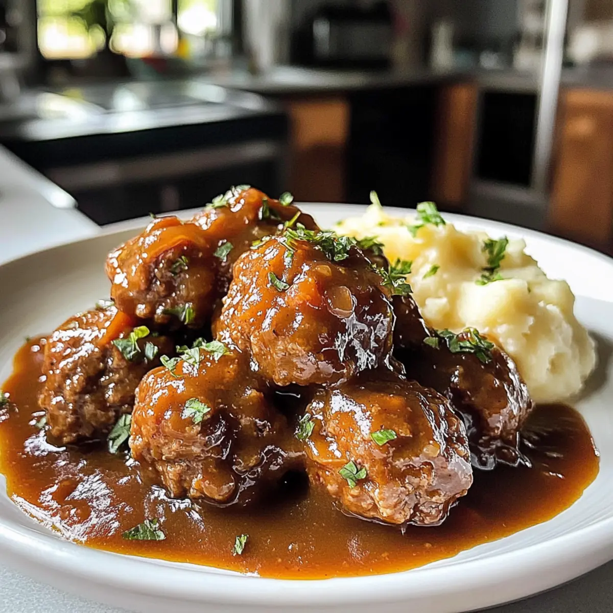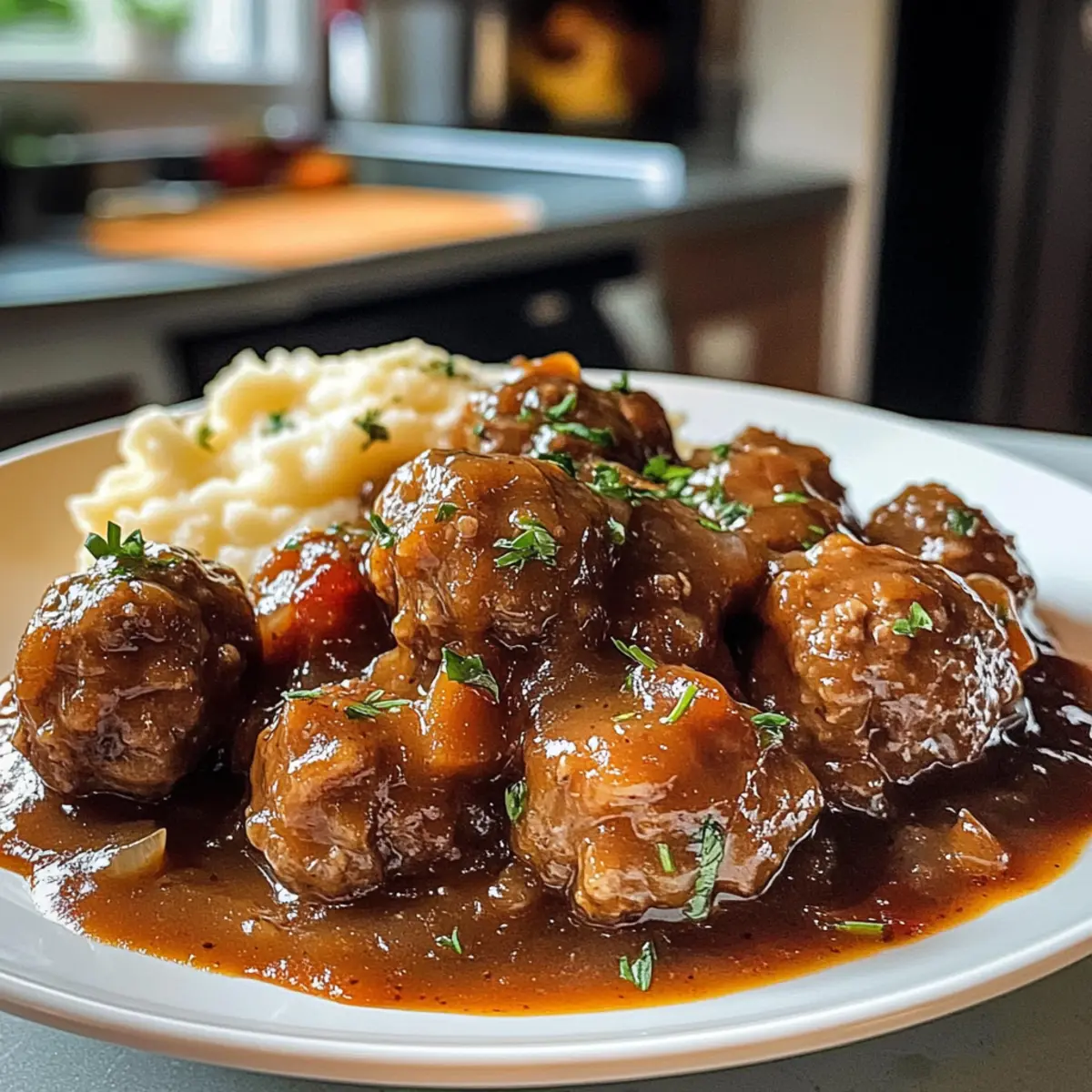 Die Küche füllt sich mit einem unwiderstehlichen Duft, der selbst die trübsten Tage aufhellt. Heute nehme ich euch mit auf eine kulinarische Reise, die Komfort und Freude vereint – mit meinen köstlichen Schmortopf Fleischbällchen und Soße! Diese einfache, aber geschmackvolle Speise ist nicht nur ein echter Publikumsliebling, sondern auch perfekt für gesellige Familienabende oder gemütliche Kochsessions. Die Zubereitung im Slow Cooker sorgt dafür, dass die Fleischbällchen unglaublich zart werden und die würzige Soße jedes Gericht verfeinert. Egal, ob ihr sie über Pasta, Reis oder pur genießen wollt, diese Mahlzeit bringt Wärme und Freude auf den Tisch. Seid Ihr bereit, mit mir in das Reich des herzhaften Genusses einzutauchen? Warum werden diese Fleischbällchen geliebt? Einfachheit, die begeistert: Die Zubereitung im Slow Cooker macht das Kochen so unkompliziert! Einfach alle Zutaten vermengen und die Zeit für sich selbst genießen. Unwiderstehlicher Geschmack: Mit einer Kombination aus Kräutern und würziger Soße ist jeder Bissen ein Hochgenuss, der nach mehr verlangt. Familienfreundlich: Diese Fleischbällchen sind perfekt für Groß und Klein, und sie bringen alle an den Tisch! Vielseitigkeit: Serviert über Pasta, Reis oder sogar mit frischem Brot, ihr könnt jedes Mal etwas Neues kreieren. Vorbereitung in Rekordzeit: In weniger als 20 Minuten ist alles bereit für den Slow Cooker. Für mehr Variationen könnt ihr auch Hawaiianisches Bananenbrot Rezept ausprobieren! Zutaten für Schmortopf Fleischbällchen • Diese Zutaten sorgen für einen unvergleichlichen Geschmack und perfekte Textur. Für die Fleischbällchen Rinderhackfleisch – liefert die Hauptproteinquelle; mageres Rinderhack ist ideal, alternativ könnt ihr auch Puten- oder Hähnchenhack verwenden, um die Gericht leichter zu gestalten. Paniermehl – wirkt als Bindemittel für die Fleischbällchen; kann durch zerbröselte Cracker oder glutenfreies Paniermehl ersetzt werden. Eier – helfen, die Zutaten zusammenzuhalten; für Eierallergien kann eine Leinsamenmehlmischung als Ersatz dienen. Parmesankäse – fügt Geschmack und Reichhaltigkeit hinzu; für eine milchfreie Variante ist Pecorino-Käse oder Hefeflocken eine gute Alternative. Knoblauchtrockengewürz – sorgt für eine geschmackliche Tiefe; frischer Knoblauch kann ebenfalls verwendet werden, wobei 1 Knoblauchzehe etwa 1/8 Teelöffel Knoblauchpulver entspricht. Zwiebelpulver – verstärkt das herzhafte Aroma; frische gewürfelte Zwiebeln können eingesetzt werden. Salz & Pfeffer – essentielle Grundgewürze für die Geschmacksausgewogenheit; nach Geschmack anpassen und für mehr Aroma auch Knoblauchsalz verwenden. Für die Sauce Gehackte Tomatensoße – sorgt für Feuchtigkeit und Geschmack der Soße; es kann auch marinara Soße oder zerdrückte Tomaten verwendet werden für einen anderen Geschmack. Niedrig-Natrium-Rinderbrühe – dient als Kochflüssigkeit; Hühner- oder Gemüsebrühe kann ebenfalls verwendet werden, um einen anderen Grundgeschmack zu erzielen. Worcestershire-Sauce – bringt einen umami Geschmack ins Gericht; Sojasauce kann als Ersatz für ein anderes Geschmacksprofil dienen. Diese sorgfältig ausgewählten Zutaten machen die Schmortopf Fleischbällchen und Soße zu einem unvergesslichen Erlebnis, das die Herzen und Mägen deiner Familie erobern wird! Schritt-für-Schritt-Anleitung für Schmortopf Fleischbällchen und Soße Step 1: Fleischbällchen-Mischung vorbereiten In einer großen Schüssel kombinierst du Rinderhackfleisch, Paniermehl, Eier, Parmesan, Knoblauchtrockengewürz, Zwiebelpulver, Salz und Pfeffer. Mische alles gründlich mit den Händen oder einem Löffel, bis eine homogene Masse entsteht. Die Mischung sollte feucht, aber nicht klebrig sein. Dies dauert etwa 5 Minuten. Step 2: Fleischbällchen formen Forme aus der Mischung gleichmäßige Fleischbällchen in der Größe von Golfbällen (ca. 2,5 cm Durchmesser) und lege sie auf ein mit Backpapier ausgelegtes Blech. Achte darauf, dass die Fleischbällchen in Form bleiben und gleichmäßig geformt sind. Dies hilft beim späteren Garen und sorgt für eine schöne Präsentation. Step 3: Optional anbraten Erhitze etwas Öl in einer großen Pfanne bei mittlerer Hitze. Brate die Fleischbällchen 5 Minuten lang rundherum an, bis sie goldbraun sind. Dieser Schritt ist optional, aber das Anbraten bringt mehr Geschmack in die Schmortopf Fleischbällchen und Soße und verhindert, dass sie während des Garens zu weich werden. Step 4: In den Slow Cooker geben Legen die gebräunten oder rohen Fleischbällchen vorsichtig in den Slow Cooker. Gieße die gehackte Tomatensoße und die Rinderbrühe gleichmäßig über die Fleischbällchen. Achte darauf, dass alle Fleischbällchen gut bedeckt sind, was für eine saftige Zubereitung sorgt. Step 5: Würze hinzufügen Träufle die Worcestershire-Sauce über die Fleischbällchen und rühre die Soße sanft um, um sicherzustellen, dass alle Bällchen gut mit dem aromatischen Mix bedeckt sind. Dieser Schritt intensiviert den Geschmack der Schmortopf Fleischbällchen und Soße und verleiht dem Gericht einen umami-reichen Charakter. Step 6: Garzeit einstellen Setze den Deckel auf den Slow Cooker und stelle ihn auf niedrig für 6-8 Stunden oder hoch für 3-4 Stunden. Wenn die Garzeit vorbei ist, sollten die Fleischbällchen zart und gut durchgegart sein. Sie sollten bei sanftem Druck leicht zerfallen, was auf die perfekte Konsistenz hinweist. Experten Tipps für Schmortopf Fleischbällchen Fleischqualität: Wähle hochwertiges Rinderhackfleisch; günstige Varianten können die Textur beeinträchtigen und die Fleischbällchen trocken machen. Vorbereitung ist alles: Bereite die Mischung gründlich vor, damit die Fleischbällchen gut zusammenhalten. Keine zu feuchte Mischung, sonst zerfallen sie beim Garen! Browning hinzufügen: Brate die Fleischbällchen an, bevor du sie in den Schmortopf gibst. Das fügt eine wunderbare Tiefe hinzu und ver