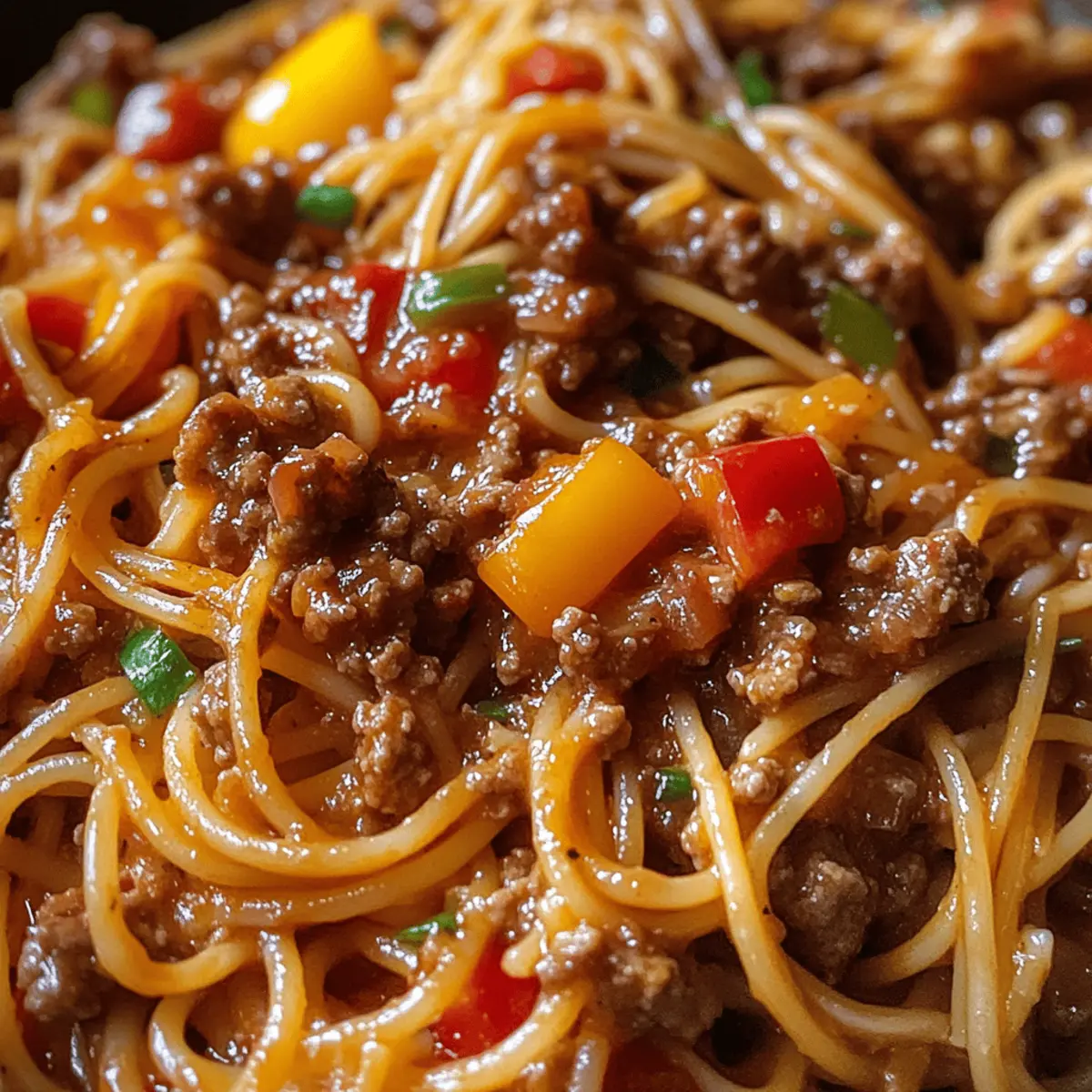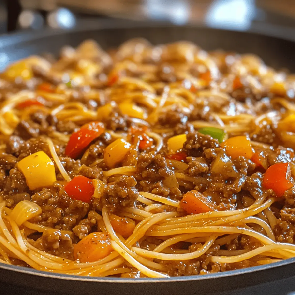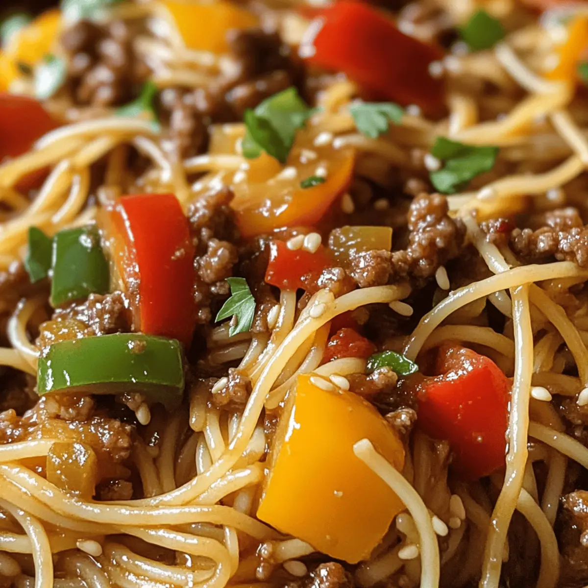 Ein schnelles und schmackhaftes Gericht mit Angel Hair Pasta und würziger chinesischer Rindfleischsauce, ideal für die ganze Familie.