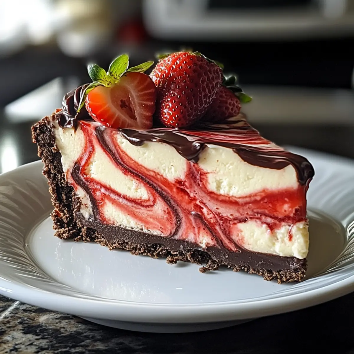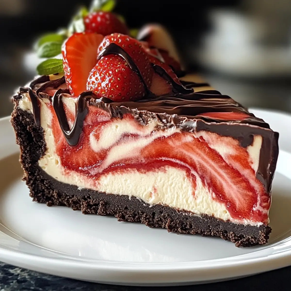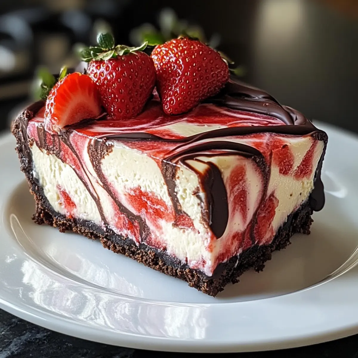 Hast du schon einmal einen köstlichen Käsekuchen mit einem unerwarteten Twist in der Küche kreiert? Hier kommt mein Schokoladen-Erdbeer-Swirl-Käsekuchen ins Spiel! Mit einem knusprigen Schokoladenkeksboden und einer cremigen Füllung, die mit einem leuchtenden Erdbeerschwirl versehen ist, vereint dieses Dessert die süße Schokolade mit der fruchtigen Frische der Erdbeeren. Die Zubereitung ist unglaublich einfach, und dieses beeindruckende Rezept wird zum Highlight deiner nächsten Feier oder einfach beim Schlemmen nach einem langen Tag. Egal, ob du köstliche Variationen mit anderen Früchten ausprobieren oder einfach diese klassische Kombination lieben möchtest – diese Leckerei ist der perfekte Weg, um dir selbst und deinen Lieben eine Freude zu machen. Welche Frucht würdest du als nächstes in deinen Käsekuchen swirlen? Warum wirst du dieses Rezept lieben? Einfachheit: Die Zubereitung des Schokoladen-Erdbeer-Swirl-Käsekuchens erfordert nur grundlegende Fähigkeiten, sodass du ihn ohne Stress zubereiten kannst. Leckere Vielfalt: Mit der Möglichkeit, verschiedene Fruchtvariationen auszuprobieren, kannst du jeden Biss anpassen und deine Kreativität ausleben. Krönender Genuss: Der Kontrast zwischen der cremigen Füllung und dem knusprigen Boden sorgt für ein unvergessliches Geschmackserlebnis, das deine Gäste begeistern wird. Eindrucksvoller Look: Die hübschen Erdbeerschwirl machen diesen Käsekuchen nicht nur köstlich, sondern auch zu einem optischen Highlight auf jedem Tisch. Crowd-Pleaser: Perfekt für jede Gelegenheit – ob Geburtstag, Feiertag oder einfach nur als Belohnung nach einem langen Tag. Probiere auch anderen Käsekuchen-Rezepte, um deine Dessert-Palette zu erweitern! Schokoladen-Erdbeer-Swirl-Käsekuchen Zutaten • Für den Boden: Schokoladenkeksbrösel – Sie sorgen für die Struktur des Bodens; glutenfreie Kekse können für eine glutenfreie Variante verwendet werden. Ungesalzene Butter – Bindet die Keksbrösel zum Boden; diese sollte vor dem Mischen geschmolzen werden. • Für die Käsekuchenfüllung: Frischkäse – Gewährleistet eine cremige, glatte Füllung; Mascarpone kann für einen reichhaltigeren Geschmack verwendet werden. Zucker – Süßt die Füllung; weniger Zucker kann für eine reduzierte Süße verwendet werden. Vanilleextrakt – Fügt der Füllung Tiefe hinzu; Mandelextrakt bietet eine interessante Variation. Große Eier – Sorgen für Struktur und Stabilität; ein Ei-Ersatz kann für eine vegane Version verwendet werden. Saure Sahne – Sorgt für Cremigkeit und Feuchtigkeit; griechischer Joghurt ist eine leichtere Alternative. Sahne – Fügt der Füllung Reichhaltigkeit hinzu; kann durch Kokoscreme für eine milchfreie Version ersetzt werden. • Für den Erdbeerschwirl: Frische Erdbeeren – Die Basis für den Erdbeerschwirl; Himbeeren oder Blaubeeren können für unterschiedliche Geschmäcker verwendet werden. Zucker (für den Schwirl) – Süßt die Erdbeermischung; die Menge kann je nach Süße der Früchte angepasst werden. Zitronensaft – Verstärkt den Geschmack und balanciert die Süße im Schwirl; frischer Saft ist für einen besseren Geschmack ideal. Genieße das Zubereiten dieses Schokoladen-Erdbeer-Swirl-Käsekuchens und lasse dich von den Aromen verführen! Schritt-für-Schritt-Anleitung für Schokoladen-Erdbeer-Swirl-Käsekuchen Step 1: Boden vorbereiten Heize den Ofen auf 163 °C (325 °F) vor. Mische die Schokoladenkeksbrösel mit der geschmolzenen ungesalzenen Butter, bis alles gut kombiniert ist. Drücke die Mischung gleichmäßig in den Boden einer 23 cm (9 Zoll) großen Springform. Backe den Boden für 10 Minuten und lasse ihn danach auf einem Gitterrost abkühlen. Step 2: Erdbeerschwirl herstellen Gib die pürierten Erdbeeren, Zucker und Zitronensaft in einen Topf. Erhitze die Mischung bei mittlerer Hitze für 5 bis 7 Minuten, bis sie leicht eingedickt ist und eine saftige Konsistenz hat. Nimm den Topf vom Herd und lasse den Erdbeerschwirl auf Raumtemperatur abkühlen. Step 3: Käsekuchenfüllung zubereiten Schlage den Frischkäse in einer großen Schüssel glatt. Füge den Zucker und den Vanilleextrakt hinzu und vermische alles gut. Gib die Eier einzeln dazu und rühre nach jedem Ei gut durch. Schließlich füge die saure Sahne und die Sahne hinzu und rühre, bis die Mischung cremig und homogen ist. Step 4: Käsekuchen schichten Gieße die Käsekuchenfüllung in den abgekühlten Keksboden und streiche sie gleichmäßig glatt. Träufle den Erdbeerschwirl über die Füllung und verwende ein Messer, um vorsichtig durch die Füllung zu swirlisieren. Achte darauf, nicht zu tief zu gehen, um die Schichten zu erhalten. Step 5: Backen Backe den Schokoladen-Erdbeer-Swirl-Käsekuchen für 50 bis 60 Minuten, bis die Ränder fest sind und die Mitte noch leicht wackelig ist. Schalte den Ofen aus, öffne die Tür einen Spalt und lasse den Käsekuchen für eine Stunde im Ofen abkühlen, um Rissbildung zu vermeiden. Step 6: Kühlen und servieren Nehme den Käsekuchen aus dem Ofen und lasse ihn vollständig auf Raumtemperatur abkühlen. Stelle den Käsekuchen für mindestens 4 Stunden oder über Nacht in den Kühlschrank. Entferne vor dem Servieren die Springform, schneide in Stücke und genieße deinen köstlichen Schokoladen-Erdbeer-Swirl-Käsekuchen! Was passt gut zu Schokoladen-Erdbeer-Swirl-Käsekuchen? Lass dich von köstlichen Beilagen inspirieren, die diesen verführerischen Käsekuchen perfekt ergänzen und dein Dessert-Erlebnis noch unvergesslicher machen. Frische Beeren: Die Süße und Frische von Himbeeren oder Blaubeeren verstärkt die fruchtigen Aromen des Käsekuchens und bietet einen schönen visuellen Kontrast. Schlagsahne: Ein Klecks lockerer Schlagsahne fügt eine luftige Textur hinzu und balanciert die reichhaltige Cremigkeit der Füllung perfekt. Eiscreme: Eine Kugel vanilliger Eiscreme sorgt für einen kühlen, cremigen Kontrast, der das Geschmackserlebnis abrundet. Kaffee oder Espresso: Der bittere