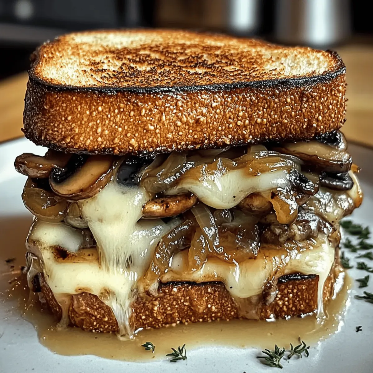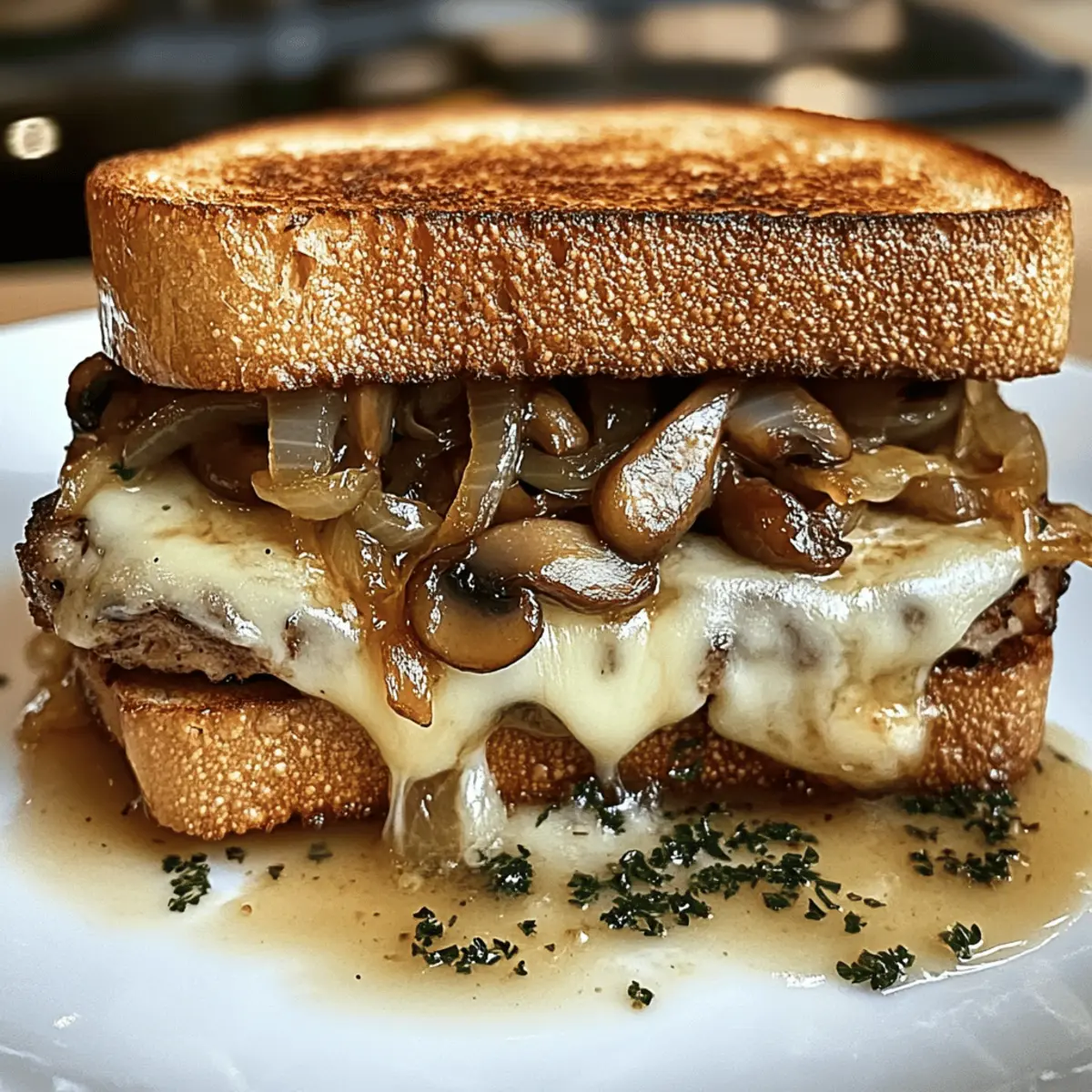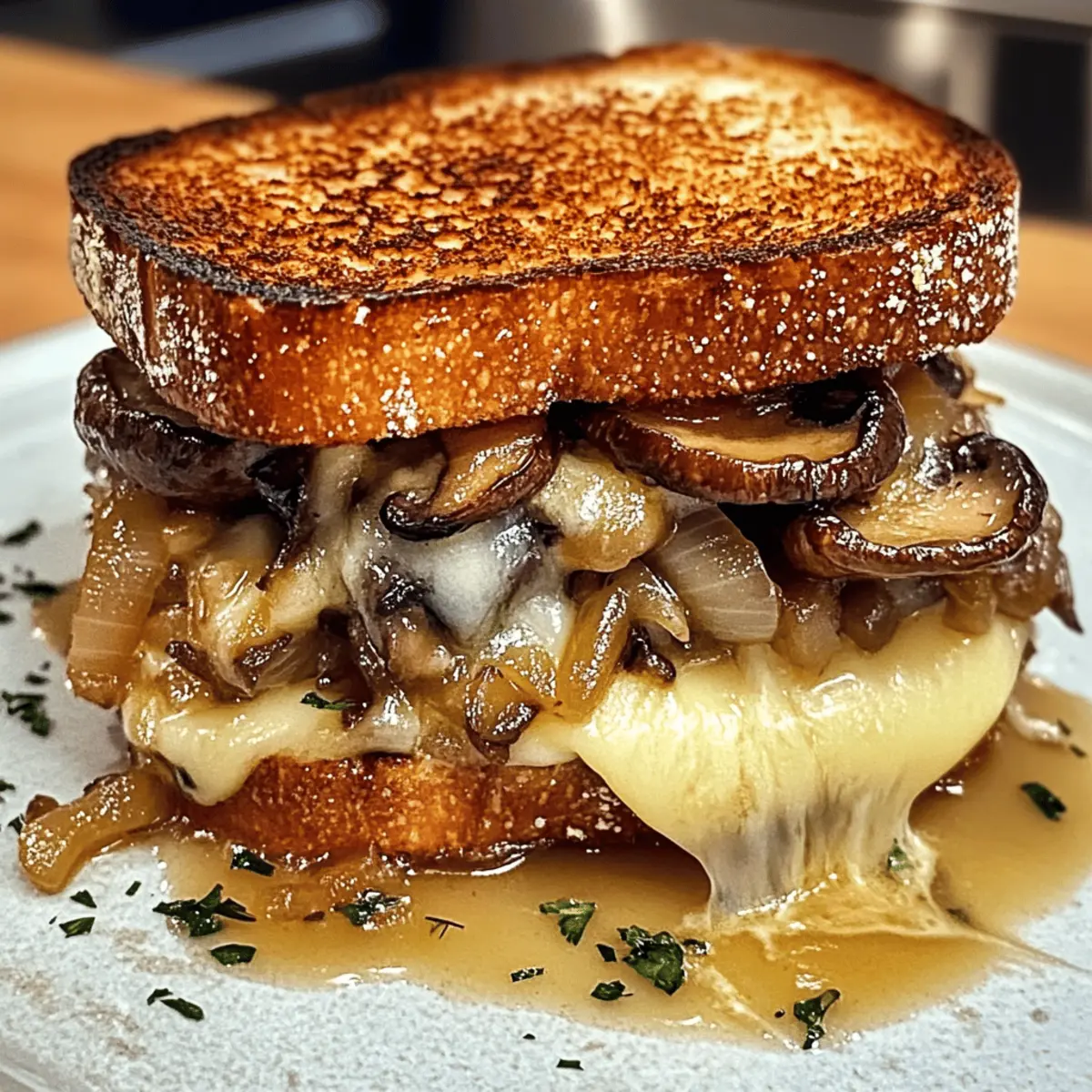 Dieses Rezept für Gourmet Schweizer Pilzschmelz Sandwich vereint umami-reiche Pilze mit karamellisierten Zwiebeln und schmelzendem Käse auf knusprigem Brot.