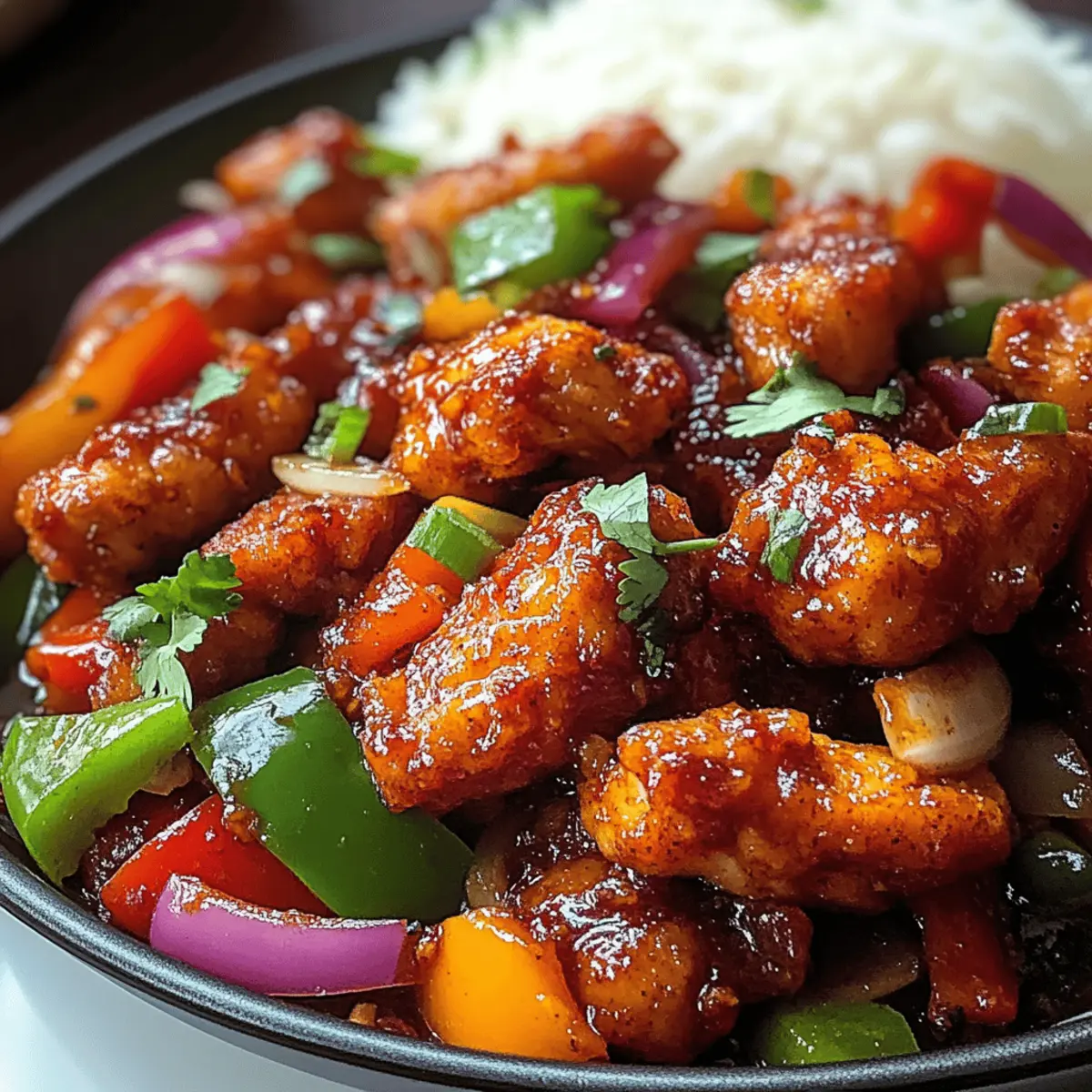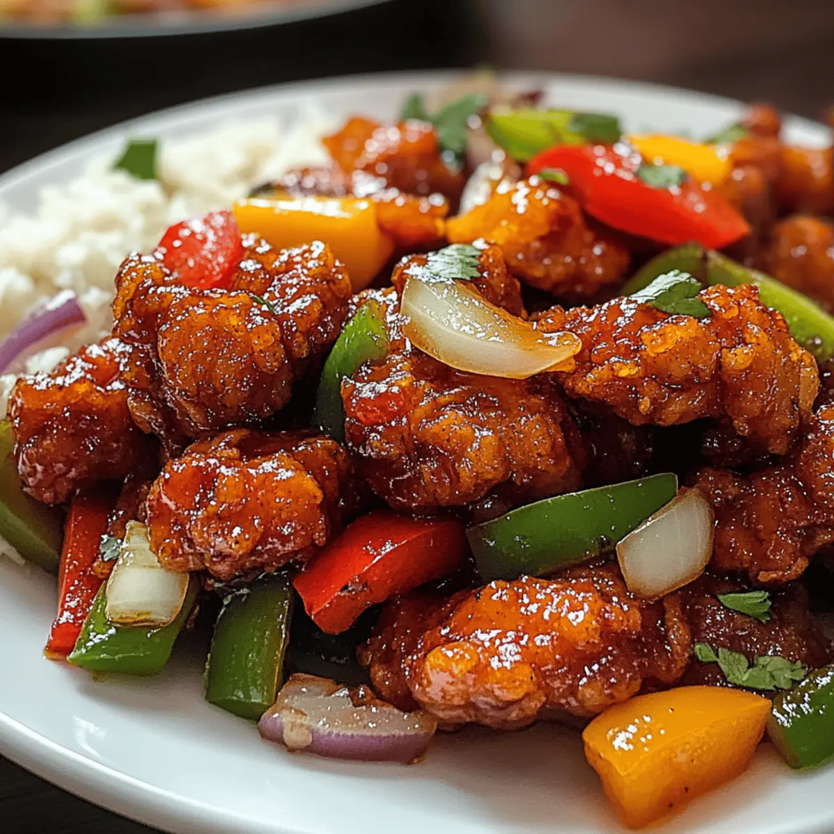 Eines Abends, während ich die Geräusche der Stadt und den verführerischen Duft von Gewürzen hörte, fiel mir auf, wie sehr ich eine gewisse Würze vermisste – und zwar in meinem Essen! So entstand die Idee, Spicy and Crispy Dragon Chicken zu kreieren, ein Gericht, das mit seinen knusprigen Hähnchenstücken und einer aufregenden, scharfen Marinade jeden Gaumen begeistert. Die Zubereitung ist schnell und einfach, perfekt für ein geselliges Abendessen oder einen gemütlichen Wochentag. Mit frischen, bunten Gemüse und einer köstlichen Sauce bringe ich ein Stück asiatischer Küche direkt auf unseren Tisch. Wer könnte da widerstehen? Lass uns gemeinsam in die Welt der Aromen eintauchen – bist du bereit für dieses Geschmacksabenteuer? Warum wirst du dieses Rezept lieben? Einfachheit: Die Zubereitung ist unkompliziert und benötigt nur grundlegende Kochkünste – perfekt für jeden Zuhause. Würzige Note: Diese scharfe Marinade bringt aufregende Aromen auf deinen Teller und sorgt für ein unvergessliches Geschmackserlebnis. Knusprige Textur: Mit einer goldenen, knusprigen Hülle wird jedes Stück Hähnchen zum unwiderstehlichen Biss. Vielfältig und Anpassbar: Ob du es schärfer oder milder magst, die Variationen sind endlos – probiere es mit Tofu oder einer glutenfreien Option mit glutenfreiem Mehl. Gesellige Mahlzeit: Ideal für ein gemeinsames Abendessen, das deine Gäste beeindrucken wird! Zutaten für Spicy and Crispy Dragon Chicken • Für die Marinade: Boneless Chicken (500 Gramm) – Der Hauptproteingehalt sorgt für eine herzliche Basis des Gerichts; Hähnchenschenkel können für mehr Saftigkeit verwendet werden. Cornflour (2 Esslöffel) – Sorgt für die Knusprigkeit des Hähnchens; kann durch Kartoffelstärke für eine glutenfreie Option ersetzt werden. All-Purpose Flour (1 Esslöffel) – Unterstützt die knusprige Beschichtung; für glutenfreie Varianten einen glutenfreien Mehlmix verwenden. Egg (1) – Bindet die Marinade und trägt zur Knusprigkeit bei; für eine eifreie Version kann ein Leinsamen-Ei als Bindemittel verwendet werden. Ginger-Garlic Paste (1 Esslöffel) – Fügt aromatischen Geschmack und Tiefe hinzu; hausgemachte Paste kann die Frische erhöhen. Red Chili Powder (1 Teelöffel) – Bringt Hitze und Farbe in das Gericht; nach Belieben anpassen. Soy Sauce (1 Teelöffel) – Führt umami Geschmack ein; für eine glutenfreie Variante Tamari verwenden. Salt – Verstärkt den Gesamtgeschmack; nach Geschmack anpassen. • Für das Frittieren und Gemüse: Oil for Deep Frying – Essentiell für die Erreichung der knusprigen Textur; hochhitzeöl wie Pflanzenöl oder Rapsöl eignet sich gut. Onion (1 mittelgängig, in Scheiben geschnitten) – Fügt Süße und Textur zu dem Wok-Gericht hinzu. Bell Pepper (1 mittelgängig, in Scheiben geschnitten) – Sorgt für Frische und Knackigkeit; jede Farbe von Paprika kann verwendet werden. • Für die Sauce: Soy Sauce (2 Esslöffel) – Wird in der Sauce für Tiefe und Würze verwendet. Tomato Ketchup (1 Esslöffel) – Trägt zur Süße und Säure der Sauce bei. Red Chili Sauce (1 Esslöffel) – Verstärkt die Schärfe; für weniger Schärfe kann süße Chilisauce verwendet werden. Vinegar (1 Esslöffel) – Balanciert die Aromen mit Säure. Sugar (1 Esslöffel) – Balanciert die Schärfe im Gericht; kann für weniger Süße reduziert werden. Curry Leaves (8-10) – Fügt aromatischen Geschmack und Frische hinzu; weglassen, wenn nicht verfügbar. Green Chilies (2-3, aufgeschnitten) – Bringt frische Schärfe und Geschmack; je nach persönlicher Schärfetoleranz anpassen. Spring Onions (gehackt, zum Garnieren) – Fügt beim Servieren Frische und Farbe hinzu. Schritt-für-Schritt-Anleitung für Spicy and Crispy Dragon Chicken Step 1: Marinade vorbereiten In einer Schüssel kombinierst du Maisstärke, Allzweckmehl, das Ei, Ingwer-Knoblauch-Paste, Paprikapulver, Sojasauce und Salz. Rühre die Zutaten gut um, bis eine dickflüssige Marinade entsteht, die deine geschmacklichen Erwartungen weckt. Diese Mischung verleiht dem Spicy and Crispy Dragon Chicken die nötige Würze und Knusprigkeit. Step 2: Hähnchen marinieren Füge die Hähnchenstreifen zur Marinade hinzu und stelle sicher, dass sie gleichmäßig bedeckt sind. Decke die Schüssel ab und lasse das Hähnchen mindestens 30 Minuten im Kühlschrank marinieren. Dies gibt den Aromen Zeit, in das Fleisch einzuziehen und sorgt für ein saftiges, geschmackvolles Ergebnis. Step 3: Hähnchen frittieren Erhitze in einer tiefen Pfanne ausreichend Öl auf etwa 180°C. Frittiere die marinierten Hähnchenstücke in Chargen, bis sie goldbraun und knusprig sind. Dies dauert etwa 5-7 Minuten pro Charge. Achte darauf, die Stücke nicht zu überlappen, damit sie gleichmäßig braten können. Lass die fertigen Hähnchenstreifen auf einem Küchenpapier abtropfen. Step 4: Gemüse anbraten In einer separaten Pfanne erhitzt du etwas Öl und gibst die Curryblätter sowie die aufgeschnittenen grünen Chilischoten hinzu. Brate sie 5 Sekunden lang an, bis sie aromatisch sind. Diese Schritte geben deinem Spicy and Crispy Dragon Chicken eine aufregende Würze und Frische. Step 5: Gemüse hinzufügen Füge nun die in Scheiben geschnittenen Zwiebeln und Paprika in die Pfanne. Brate das Gemüse 2-3 Minuten lang, bis es zart, aber knackig ist. Dabei entfalten sich die Aromen, und das Gemüse erhält eine schöne Farbvielfalt, die perfekt zu den knusprigen Hähnchenstücken passt. Step 6: Sauce zubereiten In einer Schüssel vermische die Sojasauce, Tomatenketchup, rote Chilisauce, Essig und Zucker zu einer köstlichen Sauce. Gieße diese Mischung über das angebratene Gemüse in der Pfanne und lasse sie 1 Minute lang köcheln, damit sich die Aromen entfalten können und eine würzige Basis für das Dragon Chicken entsteht. Step 7: Hähnchen hinzufügen Gib die frittierten Hähnchenstreifen zurück in die Pfanne und wende sie gründlich in der Sauce, damit jedes Stück gut bedeckt ist. Lass