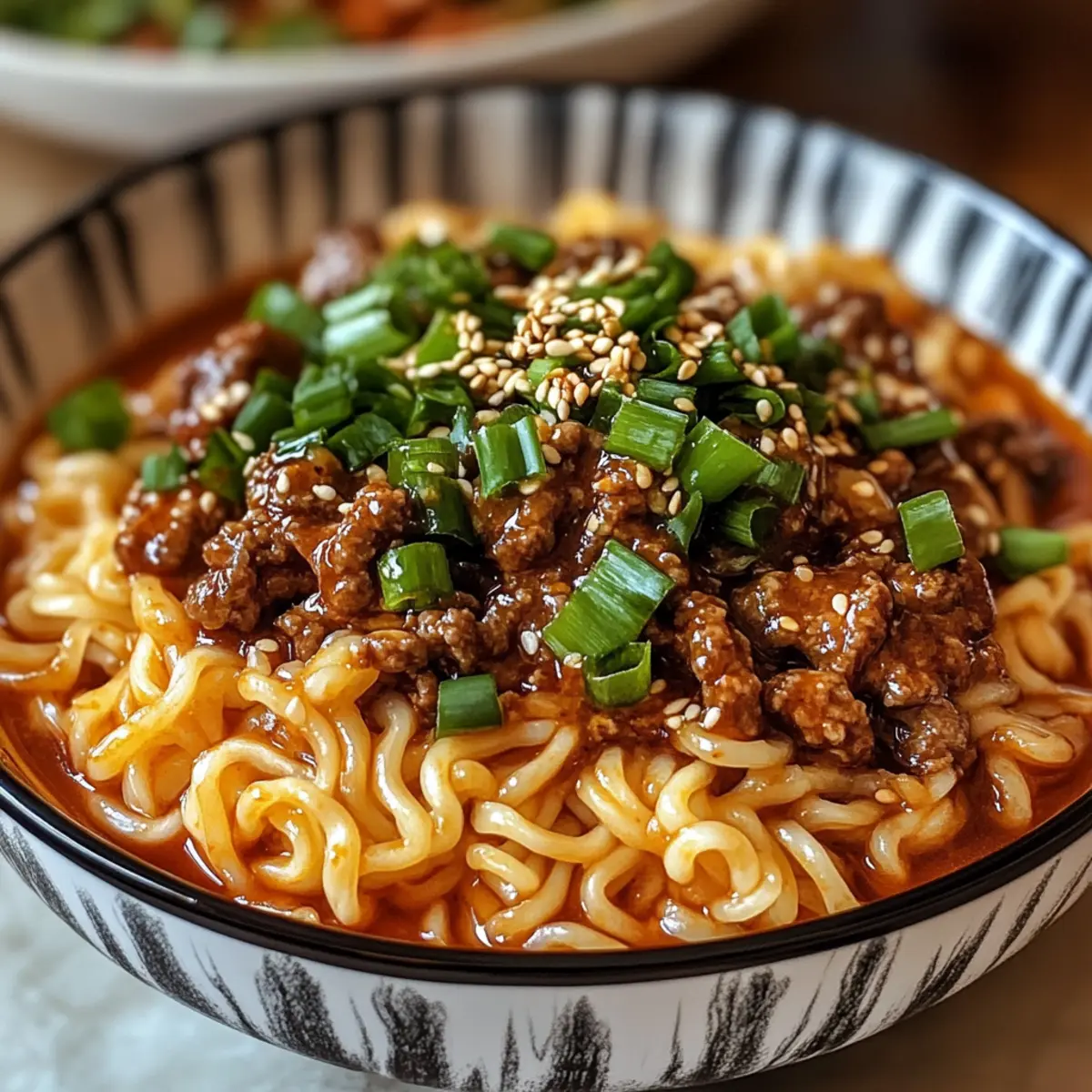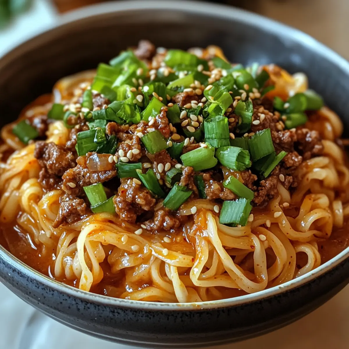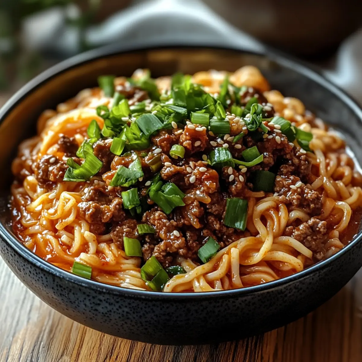 Während ich kürzlich in einem kleinen koreanischen Restaurant saß, wurde ich von dem verführerischen Aroma von würzigen Nudelgerichten umhüllt. Diese Erfahrung hat mich inspiriert, mein eigenes Rezept für Spicy Korean Gochujang Beef Noodles zu kreieren. In nur 30 Minuten verwandeln sich einfache Zutaten in eine kulinarische Offenbarung, die sowohl den Gaumen erfreut als auch das Herz wärmt. Diese Nudeln sind nicht nur schnell zubereitet, sondern auch individuell anpassbar – wählen Sie zwischen verschiedenen Proteinen wie Rinderhack, Hähnchen, Pute oder sogar Tofu. Egal, ob Sie nach einer schnellen Woche nach Hause kommen oder Gäste beeindrucken möchten, dieses Gericht ist Ihr perfekter Ausgangspunkt für ein schmackhaftes Abenteuer. Bereit, die Küche in ein koreanisches Bistro zu verwandeln? Warum sind diese Nudeln ein Muss? Einfachheit: Die Zubereitung ist so unkompliziert, dass selbst Kochanfänger in nur 30 Minuten köstliche, würzige Nudeln zaubern können. Vielseitigkeit: Mit der Option, verschiedene Proteine zu verwenden, können Sie das Rezept ganz nach Ihrem Geschmack anpassen – sei es mit Rinderhack, Hähnchen oder Tofu. Harmonische Aromen: Die perfekte Kombination aus Gochujang-Paste und frischem Ingwer sorgt für ein unvergessliches Geschmackserlebnis. Schnelles Essen: Dieses Rezept ist ein schneller Lebensretter für hektische Wochentage und bietet dennoch die Qualität eines Restaurantgerichts. Crowd-Pleaser: Ob Familienessen oder Dinnerpartys, diese Nudeln werden garantiert alle Gäste begeistern. Vorbereiten Sie auch als Begleitung dazu zarte Koreanische BBQ-Fleischbällchen oder erkunden Sie zusätzlich Spicy Kokosnuss Curry für noch mehr Abwechslung! Spicy Korean Gochujang Beef Noodles Zutaten Für die Nudeln Reisnudeln – Basis des Gerichts, können auch durch Ramen oder Udon ersetzt werden, um Abwechslung zu schaffen. Rinderhack – Hauptprotein, das für den reichhaltigen Geschmack sorgt; alternativ können Sie auch Hähnchen, Pute oder Tofu verwenden. Für die Sauce Sojasauce (niedriger Natriumgehalt, glutenfrei) – Fügt umami Geschmack hinzu und hält das Gericht gesünder; Tamari ist eine glutenfreie Alternative. Gochujang-Paste – Der Schlüssel zu Geschmack und Süße im Rezept; Sriracha kann als milde Alternative in kleineren Mengen verwendet werden. Kokoscreme – Verleiht der Sauce Cremigkeit; kann weggelassen oder durch Schlagsahne ersetzt werden. Tomatenmark – Verstärkt die Tiefe der Sauce. Wasser – Passt die Konsistenz der Sauce an. Honig oder brauner Zucker – Für eine süße Note; verwenden Sie Ahornsirup als vegane Alternative. Geröstetes Sesamöl – Bringt Nussigkeit ins Geschmacksprofil. Reisessig – Balanciert die Aromen mit einer spritzigen Note. Gehackter Knoblauch – Fügt aromatische Tiefe hinzu. Frisch geriebener Ingwer – Verleiht Wärme und Würze. Rote Pfefferflocken – Erlaubt es, die Schärfe nach Belieben anzupassen. Genießen Sie die Zubereitung dieser köstlichen Spicy Korean Gochujang Beef Noodles! Schritt-für-Schritt-Anleitung für Spicy Korean Gochujang Beef Noodles Step 1: Reisnudeln kochen Bringen Sie einen großen Topf mit gesalzenem Wasser zum Kochen und fügen Sie die Reisnudeln hinzu. Kochen Sie die Nudeln gemäß den Anweisungen auf der Verpackung für 4 bis 6 Minuten, bis sie weich, aber trotzdem bissfest sind. Nach dem Abgießen und Abspülen mit kaltem Wasser geben Sie die Nudeln zurück in den Topf und vermengen sie mit etwas Butter, um ein Verklumpen zu verhindern. Step 2: Rinderhack anbraten Erhitzen Sie eine große Pfanne bei mittlerer Temperatur und fügen Sie das Rinderhack hinzu. Braten Sie das Fleisch unter stetigem Rühren etwa 5 bis 7 Minuten lang an, bis es vollständig durchgegart und goldbraun ist. Achten Sie darauf, das Fleisch zu zerkleinern, damit es gleichmäßig gart. Nehmen Sie die Pfanne vom Herd und stellen Sie sie beiseite, während Sie die Sauce zubereiten. Step 3: Sauce zubereiten In einer großen Schüssel kombinieren Sie die Sojasauce, Gochujang-Paste, Kokoscreme, Tomatenmark, Wasser, Honig, geröstetes Sesamöl, Reisessig, gehackten Knoblauch, frisch geriebenen Ingwer und rote Pfefferflocken. Verquirlen Sie alles gründlich, bis die Mischung gleichmäßig und glatt ist. Diese aromatische Sauce wird die köstlichen Spicy Korean Gochujang Beef Noodles perfekt abrunden. Step 4: Nudeln und Sauce vermengen Fügen Sie die gekochten Reisnudeln und die Hälfte der vorbereiteten Sauce zur Pfanne mit dem Rinderhack hinzu. Verwenden Sie eine Zange oder einen großen Löffel, um die Nudeln und das Fleisch gut zu vermischen, bis alles gleichmäßig bedeckt ist. Lassen Sie die Mischung für weitere 2 bis 3 Minuten bei mittlerer Hitze erhitzen, damit das Gericht schön warm wird und die Aromen sich entfalten können. Step 5: Anrichten und servieren Nehmen Sie die Pfanne vom Herd und fügen Sie die restliche Sauce hinzu, um sicherzustellen, dass die Nudeln gut durchfeuchtet sind. Servieren Sie die Spicy Korean Gochujang Beef Noodles heiß auf Tellern und garnieren Sie sie nach Belieben mit gehackten Frühlingszwiebeln, gerösteten Sesamkörnern oder frischem Koriander. Diese wärmenden Nudeln sind ein perfekter Abschluss eines langen Tages! Expertentipps für Spicy Korean Gochujang Nudeln Nudeln sofort abspülen: Spülen Sie die Nudeln nach dem Kochen sofort ab, um ein Verklumpen zu verhindern; etwas Öl hilft zusätzlich beim Trennen. Würzen nach Geschmack: Beginnen Sie mit weniger Gochujang und roten Pfefferflocken, um die Schärfe anzupassen; so vermeiden Sie einen zu scharfen Auftakt. Frische Zutaten verwenden: Verwenden Sie frischen Knoblauch und Ingwer für den besten Geschmack; vorgepresste Versionen sind oft weniger aromatisch. Sauce abschmecken: Kosten Sie die Sauce, bevor Sie sie mit den Nudeln vermengen; so können Sie die Balance zwischen Süße und Salz anpassen. Gemüse hinzufügen: Fügen Sie gerne zusätzliches Gemüse wie Paprika oder Erbsen hinzu, um die Nähr
