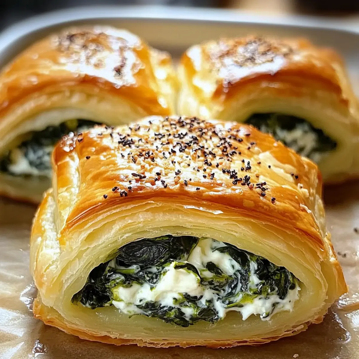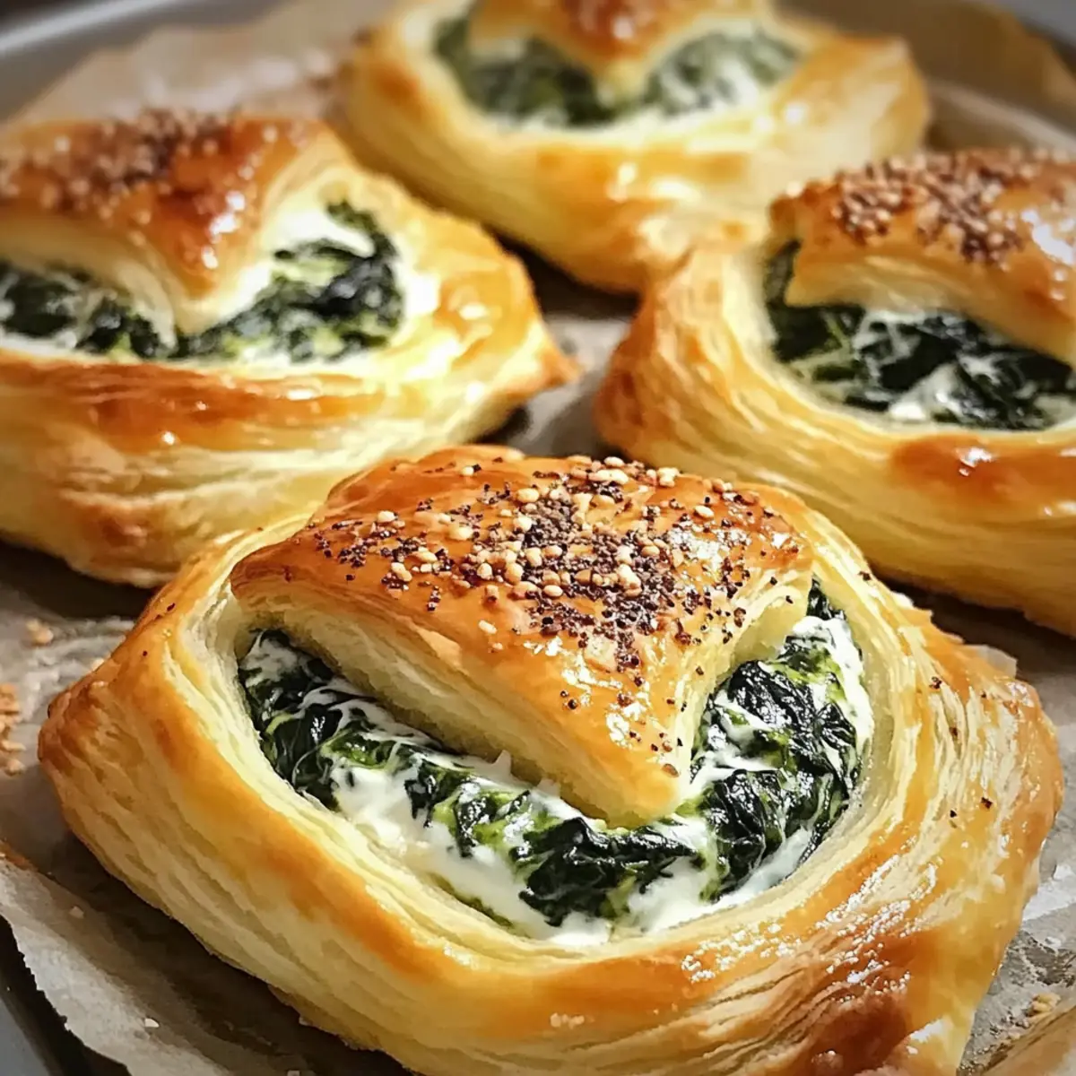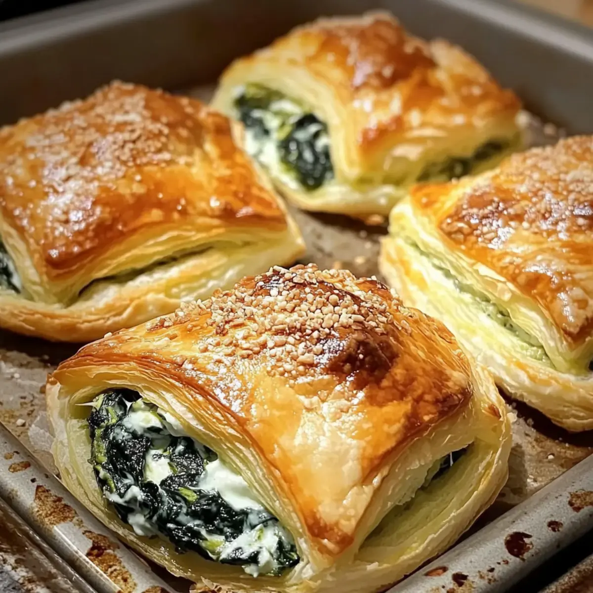 Eines Abends in meiner gemütlichen Küche, umgeben von dem verführerischen Duft frisch gebackener Snacks, entschied ich mich, die perfekte Anleitung für Spinatgebäck mit Frischkäse zu kreieren. Diese herzhaften Häppchen sind nicht nur ein Genuss für den Gaumen, sondern auch ein hitzefester Begleiter für jede Feier oder einen entspannten Abend zu Hause. Mit ihrer goldenen, knusprigen Hülle und der cremigen Füllung aus Spinat und Frischkäse sind sie in minimaler Zeit zubereitet und bieten jede Menge Optionen für kreative Variationen, wie etwa mit Knoblauch, Feta oder getrockneten Tomaten. Die Idee, die heimische Küche mit solch vielseitigen und köstlichen Snacks zu bereichern, lässt mein Herz immer höher schlagen. Neugierig, wie einfach es ist, diese kleinen Köstlichkeiten selbst zuzubereiten? Lass uns gemeinsam loslegen! Warum sind Spinatgebäck so beliebt? Vielseitigkeit: Spinatgebäck mit Frischkäse passt perfekt zu jedem Anlass, sei es eine Feier oder ein einfaches Treffen mit Freunden. Einfachheit: Die Zubereitung erfordert nur wenige Schritte, sodass auch Kochanfänger schnell Erfolg haben. Kreative Variationen: Von Feta über Knoblauch bis zu getrockneten Tomaten – diese Häppchen bieten unzählige Möglichkeiten zur Geschmacksanpassung. Unwiderstehlicher Geschmack: Der Kombination aus knusprigem Teig und cremiger Füllung kann niemand widerstehen. Praktisch: Diese Snacks lassen sich wunderbar vorbereiten und auch einfrieren, perfekt für spontane Einladungen. Ob als Vorspeise oder Snack zwischendurch – sie werden garantiert zum Highlight deines Buffets! Spinatgebäck mit Frischkäse Zutaten Für den Teig • Blätterteig – sorgt für eine knusprige und luftige Hülle; greife auf fertigen Blätterteig zurück, um Zeit zu sparen. Für die Füllung • Frischkäse – verleiht der Füllung ihre cremige Konsistenz; Neufchâtel kann eine leichtere Alternative sein. • Spinat – ist die Hauptzutat für einen herzhaften Geschmack; verwende frischen oder tiefgefrorenen, gut abgetropften Spinat. • Knoblauch (optional) – bringt ein aromatisches Aroma; frischer Knoblauch oder Knoblauchpulver sind beide geeignet. • Feta-Käse (optional) – fügt eine pikante Note hinzu; kann durch Ziegenkäse ersetzt oder ganz weggelassen werden. • Getrocknete Tomaten (optional) – sorgen für eine süße und würzige Note; frische Tomaten sind möglich, erfordern jedoch eine Feuchtigkeitsanpassung. Schritt-für-Schritt-Anleitung für Spinatgebäck mit Frischkäse Step 1: Ofen vorheizen Heize deinen Ofen auf 200 °C (400 °F) vor. Das ist wichtig, damit das Spinatgebäck mit Frischkäse gleichmäßig und knusprig gebacken wird. Während der Ofen aufheizt, hast du Zeit, die Füllung vorzubereiten. Step 2: Füllung zubereiten In einer Schüssel verrühre den geschmeidigen Frischkäse mit dem gut abgetropften Spinat, dem gehackten Knoblauch und den optionalen Zutaten, wie dem Feta oder getrockneten Tomaten. Rühre bis eine eineheitliche, cremige Masse entsteht. Dies wird die köstliche Füllung für unser Spinatgebäck sein. Step 3: Blätterteig ausrollen Nimm den Blätterteig aus dem Kühlschrank und lege ihn auf eine leicht bemehlte Fläche. Rolle den Teig gleichmäßig aus, bis er etwa 3 mm dick ist. Schneide ihn anschließend in Quadrate oder Kreise, je nach deiner gewünschten Form für das Spinatgebäck mit Frischkäse. Step 4: Puffs auslegen und füllen Lege jeweils einen Teigkreis oder -quadrat auf eine saubere Arbeitsfläche. Setze einen Esslöffel der vorbereiteten Füllung in die Mitte jedes Teigstücks. Achte darauf, genug Platz an den Rändern zu lassen, um sie gut verschließen zu können. Step 5: Puffs versiegeln Falte die Ränder des Teigs über der Füllung zusammen und drücke sie fest, um das Spinatgebäck zu verschließen. Verwende die Gabel, um die Ränder zusätzlich zu andrücken und eine schöne Struktur zu erhalten. So verhinderst du, dass die Füllung während des Backens herausläuft. Step 6: Backen Lege die gefüllten Puffs auf ein mit Backpapier ausgelegtes Blech. Schiebe das Blech in den vorgeheizten Ofen und backe die Puffs für etwa 15-20 Minuten, bis sie goldbraun sind und eine herrlich knusprige Kruste haben. Halte sie im Auge und lass dich von ihrem köstlichen Duft leiten! Step 7: Abkühlen und servieren Nimm die Spinatpuffs mit Frischkäse aus dem Ofen und lasse sie für einige Minuten abkühlen. Dies erleichtert das Servieren und sorgt dafür, dass sich die Aromen setzen. Genieße sie warm mit einer passenden Dipsauce, wie Marinara oder Joghurt-Dip. Spinatgebäck mit Frischkäse: Die perfekte Vorbereitung für stressfreie Abende Spinatgebäck mit Frischkäse ist ideal für die wochenlange Planung! Du kannst die Füllung (Frischkäse und Spinat) bis zu 3 Tage im Voraus zubereiten, indem du sie in einem luftdichten Behälter im Kühlschrank aufbewahrst – so bleiben die Aromen frisch und köstlich. Darüber hinaus lässt sich das gesamte Gebäck ungeschält auch bis zu 24 Stunden vorher vorbereiten. Lege die gefüllten Puffs einfach auf ein Backblech, decke sie ab und stelle sie in den Kühlschrank. Um die Qualität zu erhalten, vermeide es, sie zu lange draußen stehen zu lassen, und backe sie direkt aus dem Kühlschrank. Wenn du bereit bist, genieße die Spinatpuffs mit Frischkäse, indem du sie 15-20 Minuten goldbraun backst. So hast du im Handumdrehen ein leckeres Gericht, das alle lieben werden! Expert Tips für Spinatgebäck mit Frischkäse Gut abtropfen: Achte darauf, dass der Spinat gut abgetropft ist, insbesondere bei gefrorenem Spinat. Überschüssige Feuchtigkeit kann das Spinatgebäck mit Frischkäse aufweichen. Kühl arbeiten: Halte den Blätterteig kühl, während du arbeitest. Dies hilft, die perfekte Knusprigkeit zu erreichen, da kalter Teig besser aufgeht. Schön lackieren: Damit das Gebäck eine goldene Farbe erhält, kannst du die Oberseite vor dem Backen mit einem verquirlten Ei bestreichen. Dies verleiht auch einen zusä