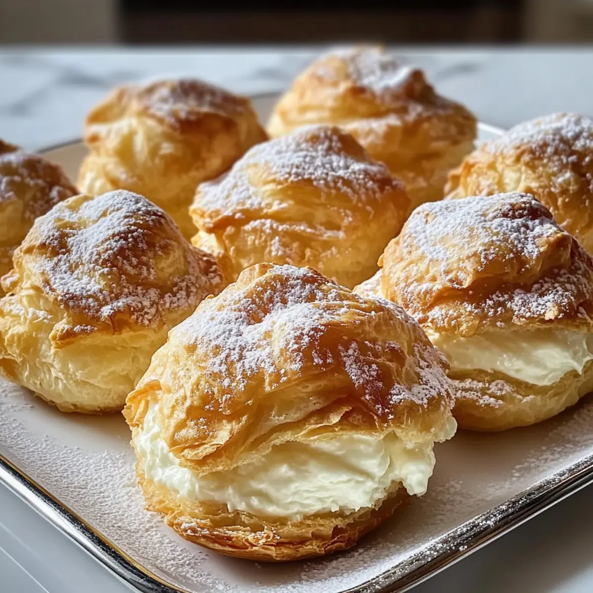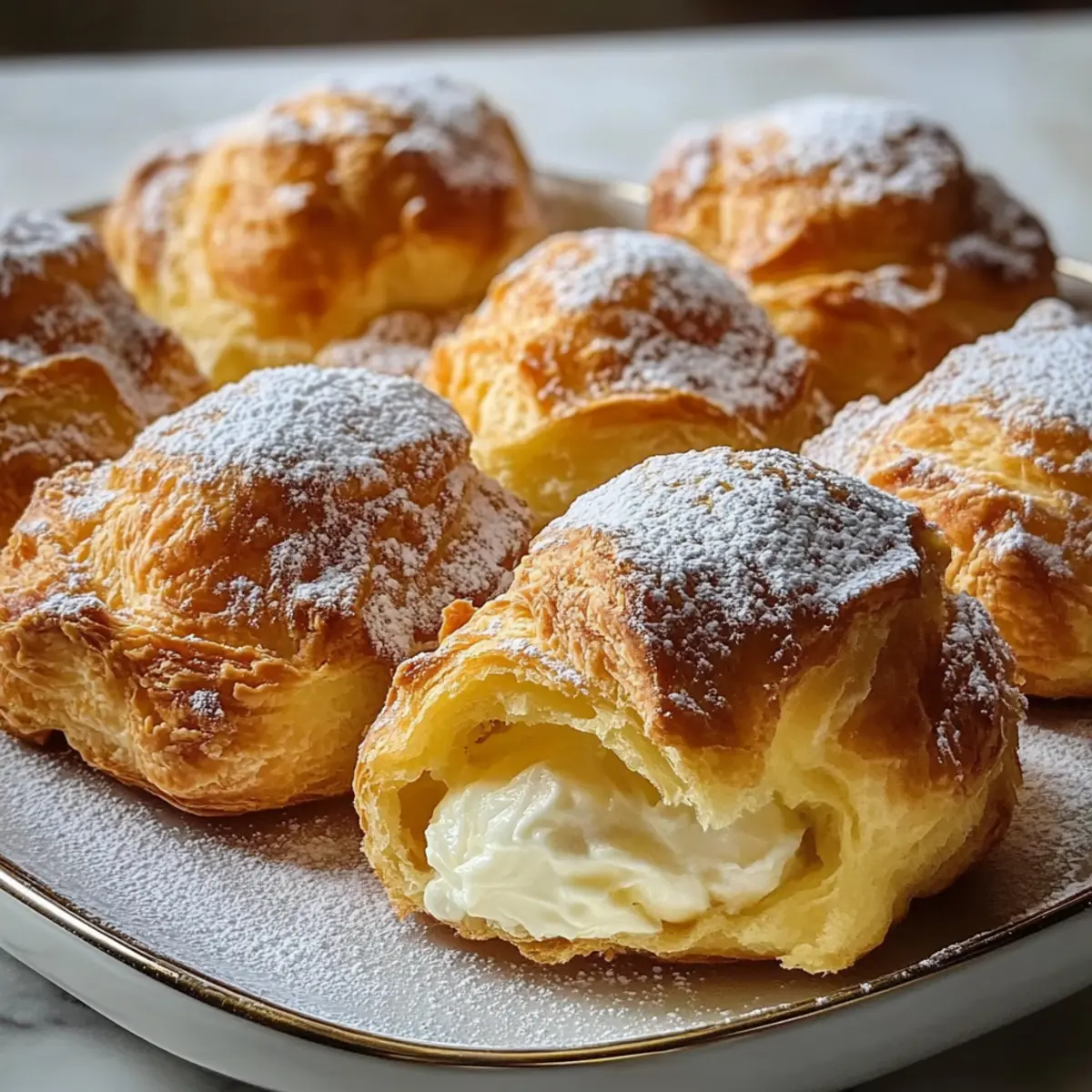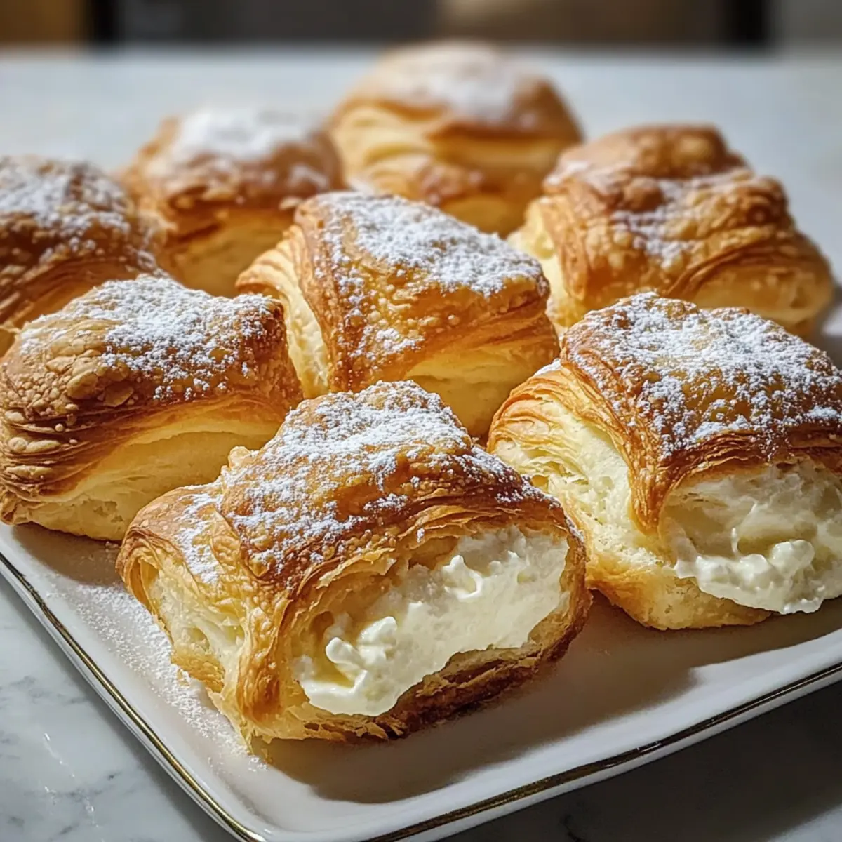 Als ich das erste Mal den süßen Duft frisch gebackener Süße Frischkäse-Teigtaschen in der Küche wahrnahm, konnte ich nicht anders, als mich in diesen warmen, goldbraunen Köstlichkeiten zu verlieben. Der Kontrast zwischen dem blättrigen Teig und der cremigen Füllung ist einfach unwiderstehlich und macht sie perfekt für ein entspanntes Brunch oder als kleine Nascherei zwischendurch. Diese Delikatesse ist nicht nur in weniger als 30 Minuten zubereitet, sondern sorgt auch für einen echten Augenschmaus, der bei Gästen Eindruck hinterlässt. Ob als süße Variante mit frischen Früchten oder herzhaft gefüllt – mit diesen Teigtaschen bringst du jede Menge Freude und Abwechslung auf den Tisch. Welche Füllung wagst du als Nächstes? Warum sind diese Teigtaschen ein Muss? Einfachheit: Die Zubereitung dieser Süßen Frischkäse-Teigtaschen ist kinderleicht und erfordert nur grundlegende Backkenntnisse. Vielseitigkeit: Sie sind in verschiedenen Varianten erhältlich – von fruchtig bis herzhaft – und passen sich perfekt deinem Geschmack an. Probiere beispielsweise die Schwarz Gebratene Garnelen als herzhaften Akzent! Aromatischer Genuss: Der süße Duft, der beim Backen durch dein Zuhause zieht, wird für unvergessliche Momente sorgen. Beeindruckende Präsentation: Diese Teigtaschen sehen nicht nur fantastisch aus, sondern bieten auch ein überraschendes Geschmackserlebnis – die perfekte Kombination für jedes Gathering oder Brunch. Zeitersparnis: In nur 30 Minuten sind sie fertig, sodass du mehr Zeit für das Genießen und für deine Gäste hast! Klassischer Genuss: Mit wenig Aufwand zauberst du eine Leckerei, die sowohl die Herzen von Bäckerei-Liebhabern als auch von Minimalisten erobert. Süße Frischkäse-Teigtaschen Zutaten Für den Teig • Blätterteig (2 Blätter, aufgetaut) – sorgt für die blättrige und buttrige Textur; sei kreativ und mache deinen eigenen Teig, wenn du Zeit hast! Für die Füllung • Frischkäse (450 g, weich) – bildet die reichhaltige, cremige Füllung; wähle unbedingt Vollfett für das beste Ergebnis. • Zucker (100 g) – fügt die nötige Süße hinzu, um die Säure des Frischkäses auszugleichen; weniger ist mehr, wenn du Fruchtmarmelade hinzufügst! • Vanilleextrakt (1 Teelöffel) – verstärkt den Geschmack der Füllung; für herzhafte Varianten kannst du diesen einfach weglassen. • Eigelb (1) – verleiht die notwendige Bindung für die Füllung; hier sind keine Alternativen nötig. • Ei zum Bestreichen (1) – sorgt für eine goldbraune Farbe beim Backen; Milch oder Sahne sind Alternativen, um einen ähnlichen Effekt zu erzielen. Für das Finish • Puderzucker zum Bestäuben (2 Esslöffel) – dient als süßer und dekorativer Abschluss; optional, wenn du sie mit Fruchtkompott oder Schokoladenglasur servierst. Entdecke den unwiderstehlichen Geschmack dieser süßen Frischkäse-Teigtaschen und lass dich von den vielfältigen Variationen inspirieren! Schritt-für-Schritt-Anleitung für Süße Frischkäse-Teigtaschen Step 1: Ofen vorheizen Heize den Ofen auf 190°C vor und lege ein Backblech mit Backpapier aus. Diese Vorbereitung sorgt dafür, dass die Süßen Frischkäse-Teigtaschen gleichmäßig bräunen und die perfekte knusprige Textur erhalten. Step 2: Füllung vorbereiten In einer mittelgroßen Schüssel den weichen Frischkäse, Zucker, das Eigelb und den Vanilleextrakt mit einem Handmixer glatt rühren. Dies sollte etwa 2-3 Minuten dauern, bis eine cremige und homogene Masse entsteht. Stelle die Füllung beiseite, während du den Teig vorbereitest. Step 3: Blätterteig vorbereiten Rolle den aufgetauten Blätterteig auf einer leicht bemehlten Fläche aus. Schneide jede Teigplatte in jeweils 6 Quadrate, sodass du insgesamt 12 Quadrate erhältst. Achte darauf, den Teig bei Bedarf leicht zu rollen, um eine gleichmäßige Dicke zu erreichen. Step 4: Teigtaschen füllen und formen Platziere in der Mitte jedes Quadrates etwa 2 Esslöffel der vorbereiteten Füllung. Falte die oberen und unteren Ecken des Teigs zur Mitte hin und drücke die Kanten kräftig zusammen, damit die Füllung nicht ausläuft. Diese Form sorgt für schöne, gefüllte Süße Frischkäse-Teigtaschen. Step 5: Bestreichen und backen Lege die gefüllten Teigtaschen auf das Backblech und bestreiche sie vorsichtig mit dem verquirlten Ei. Backe die Teigtaschen im vorgeheizten Ofen für 20-25 Minuten, bis sie goldbraun und schön aufgebläht sind. Die goldene Farbe ist ein Zeichen dafür, dass sie perfekt gebacken sind. Step 6: Bestäuben und servieren Lass die Süßen Frischkäse-Teigtaschen kurz abkühlen, bevor du sie mit Puderzucker bestäubst. Serviere sie warm oder bei Raumtemperatur als köstlichen Snack oder zum Brunch. Das süße, duftende Aroma wird wahrscheinlich jeden begeistern! Was passt zu Süßen Frischkäse-Teigtaschen? Die perfekten Begleiter zu diesen köstlichen Teigtaschen verwandeln dein Essen in ein unvergessliches Erlebnis. Frischer Obstsalat: Eine bunte Mischung aus saisonalen Früchten bringt eine erfrischende Note und ergänzt die süße Füllung wunderbar. Sahne oder Crème Fraîche: Ein kleiner Klecks sorgt für eine cremige Textur und verstärkt den Genuss – ideal für einen leckeren Nachtisch. Kaffee oder Tee: Eine Tasse deines Lieblingsgetränks rundet das Geschmackserlebnis ab und schafft eine gemütliche Atmosphäre. Eiscreme: Eine Kugel Vanilleeis zum Dessert bringt die Süßen Frischkäse-Teigtaschen auf ein neues Level und macht sie zum perfekten Genuss. Schokoladensauce: Ein warmer Schokoladendip zum Eintauchen fügt eine dekadente Note hinzu. Die süße und schokoladige Kombination ist ein wahrer Genuss. Joghurt mit Honig: Erfrischender Joghurt mit etwas Honig verleiht eine leichte Säure, die die Süße der Teigtaschen ausgleicht. Mit diesen leckeren Kombinationen hast du die ideale Grundlage, um jedem Anlass einen besonderen akzentuierten Genuss zu verleihen! Tipps zur Lagerung von Süßen Frischkäse-Teigtaschen Zimmertem
