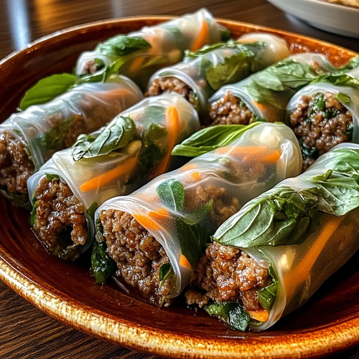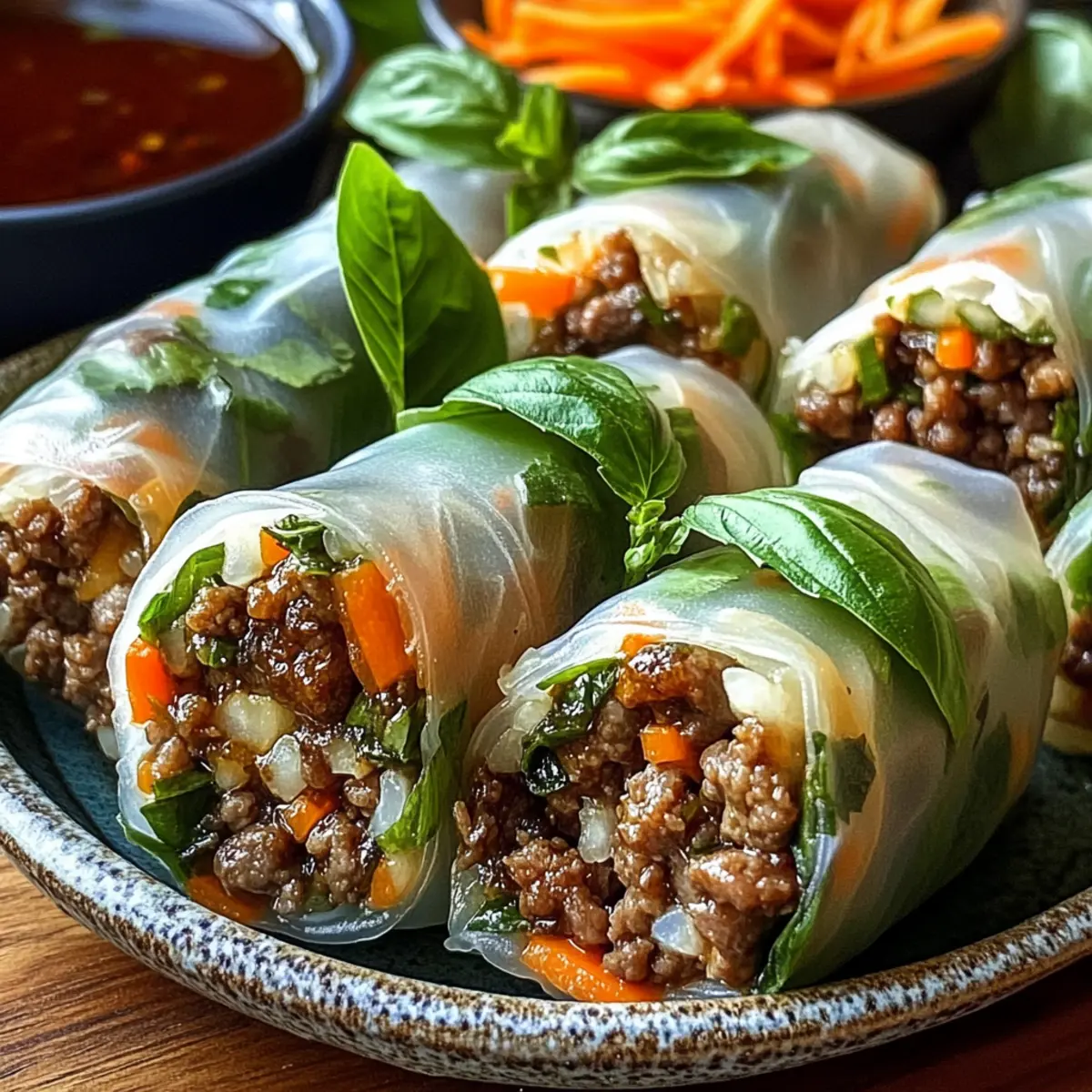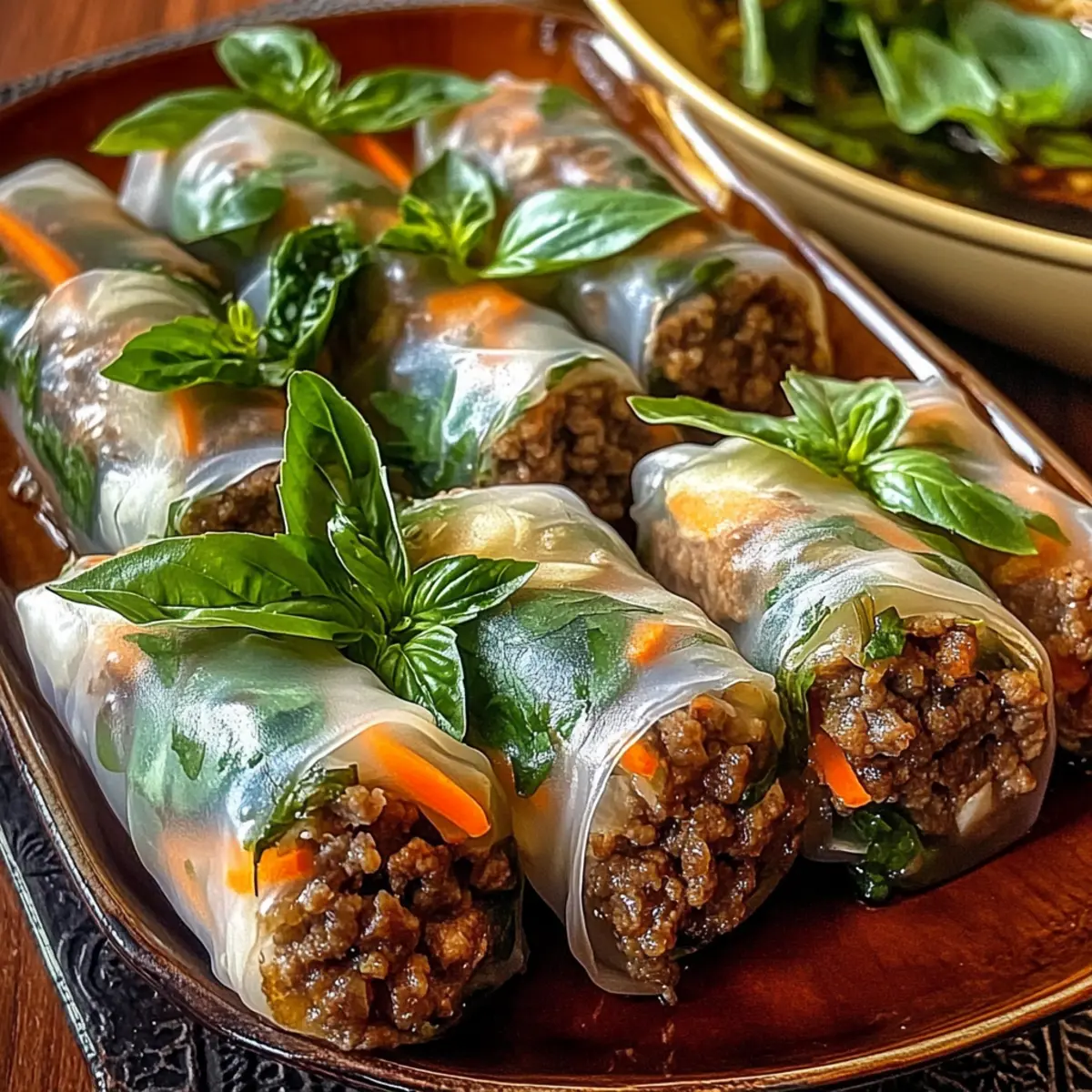 Es war einer dieser hektischen Tage, an denen der Hunger schnell im Nacken nagte. Ich wusste, dass ich ein schnelles, aber dennoch köstliches Abendessen zaubern wollte. Die Antwort? Thai-Basilikum-Rindfleisch-Rollen! Diese frischen und knusprigen Rollen sind nicht nur innerhalb von 30 Minuten zubereitet, sondern bieten auch eine gesunde, anpassbare Option für jedes Mal. Mit zartem, gewürzt mariniertem Rindfleisch, buntem Gemüse und aromatischem Basilikum, alles eingewickelt in zarte Reisnudeln—sie sind ein absoluter Genuss! Ob für ein schnelles Mittagessen oder ein geselliges Abendessen mit Freunden, diese Röllchen werden garantiert zum Hit. Welche füllenden Zutaten werden Sie heute ausprobieren? Warum sind Thai-Basilikum-Rindfleisch-Rollen ein Hit? Schnelligkeit: Diese Röllchen sind in weniger als 30 Minuten fertig und perfekt für hektische Tage. Gesunde Wahl: Mit frischen Zutaten und wenigen Kalorien bieten sie eine nahrhafte Mahlzeit. Vielfältige Varianten: Ob mit Garnelen oder extra Gemüse – persönliche Anpassungen sind ganz einfach. Knusprige Frische: Die Kombination aus knusprigem Gemüse und zartem Rindfleisch sorgt für ein einzigartiges Geschmackserlebnis. Leicht zu machen: Mit einfachen Techniken können auch Anfänger in der Küche beeindruckende Ergebnisse erzielen. Genießen Sie dazu eine Erdnusssoße für den perfekten Dip! Thai-Basilikum-Rindfleisch-Rollen Zutaten Hinweis: Diese Zutaten ergeben die perfekte Grundlage für deine leckeren Thai-Basilikum-Rindfleisch-Rollen! Für die Füllung Mageres Rinderhackfleisch – sorgt für eine proteinreiche und sättigende Basis in den Rollen. Sojasauce – bringt einen salzigen, umami Geschmack, der die Füllung verfeinert. Hoisinsauce – fügt eine subtile Süße hinzu, die die Aromen perfekt ausbalanciert. Geraspelte Karotten – sorgen für einen knackigen Biss und lebendige Farbe. Gehackte Paprika – bietet Frische und natürliche Süße in jedem Bissen. Frische Basilikumblätter – sind essenziell für das aromatische Geschmackserlebnis. Für die Verpackung Reisnudelblätter – dünn und weich, perfekt zum Einwickeln der köstlichen Füllung. Diese Thai-Basilikum-Rindfleisch-Rollen sind nicht nur ein Genuss für den Gaumen, sondern auch schnell und einfach zubereitet – eine ideale Lösung für deine kulinarischen Bedürfnisse! Step-by-Step Instructions for Thai-Basilikum-Rindfleisch-Rollen Step 1: Rindfleisch anbraten Erhitze eine große Pfanne bei mittlerer Hitze und gib das magere Rinderhackfleisch hinzu. Brate es für etwa 5-7 Minuten an, bis es schön gebräunt ist. Füge während des Bratens die Sojasauce und Hoisinsauce hinzu, um das Fleisch aromatisch zu verfeinern. Rühre gut um, damit die Saucen gleichmäßig verteilt sind. Step 2: Gemüse hinzufügen Sobald das Fleisch gar ist, gib die geraspelten Karotten und die gehackten Paprika in die Pfanne. Koche alles zusammen für weitere 2-3 Minuten, damit das Gemüse leicht gar, aber schön knackig bleibt. Rühre ständig um, um sicherzustellen, dass alles gut vermischt ist und die Aromen sich entfalten können. Step 3: Reisnudelblätter vorbereiten Fülle eine flache Schüssel mit warmem Wasser und tauche ein Reisnudelblatt hinein. Lass es für etwa 5-10 Sekunden im Wasser, bis es weich und biegsam ist, aber nicht zu lange, damit es nicht reißt. Hebe das Blatt vorsichtig heraus und lege es auf ein sauberes Küchentuch, um es abtropfen zu lassen. Step 4: Füllung einlegen Legen Sie das weiche Reisnudelblatt auf eine flache Arbeitsfläche. Platziere einige frische Basilikumblätter in der Mitte des Blattes, gefolgt von einer portionierten Menge der Rinderfüllung. Achte darauf, nicht zu viel Füllung zu verwenden, damit das Rollen einfacher wird und nichts herausfällt. Step 5: Röllchen formen Schlage die Seiten des Reisnudelblattes über die Füllung und rolle dann das Blatt von unten nach oben auf, um die Füllung fest einzuschließen. Achte darauf, dass die Rolle kompakt und straff ist, um ein Auslaufen der Füllung zu vermeiden. Wiederhole diesen Schritt mit den restlichen Zutaten. Step 6: Servieren Serviere die frisch zubereiteten Thai-Basilikum-Rindfleisch-Rollen sofort auf einem schönen Teller. Stelle eine Auswahl an Dips bereit, wie Erdnusssoße oder süße Chilisauce, um den Geschmack der Rollen zu ergänzen. Die Röllchen sind am besten frisch und warm, damit ihre knusprige Textur erhalten bleibt. Expertentipps für Thai-Basilikum-Rindfleisch-Rollen Einzelne Blätter: Arbeite mit einem Reisnudelblatt gleichzeitig, damit es nicht austrocknet und bricht. Nicht überfüllen: Verwende nur eine moderate Menge Füllung, um ein einfaches Rollen zu gewährleisten und ein Auslaufen zu verhindern. Frisch servieren: Die Röllchen schmecken am besten sofort nach der Zubereitung – so bleibt die knackige Textur erhalten. Schnelle Dips: Bereite verschiedene Dips vor, um das Geschmackserlebnis der Thai-Basilikum-Rindfleisch-Rollen zu intensivieren. Wasser temperieren: Achte darauf, das Wasser für die Reisnudelblätter nicht zu heiß zu machen, um ein Zerreißen zu vermeiden. Thai-Basilikum-Rindfleisch-Rollen für die Vorausplanung Die Thai-Basilikum-Rindfleisch-Rollen sind perfekt für alle, die gerne frisch kochen, aber nicht viel Zeit haben! Du kannst die Füllung (gemischtes Rinderhackfleisch, Sojasauce, Hoisinsauce, Karotten und Paprika) bis zu 3 Tage im Voraus vorbereiten. Lagere die Masse in einem luftdichten Behälter, um ihre Frische zu bewahren. Wenn du bereit bist zu servieren, weiche die Reisnudelblätter ein und füge die zuvor zubereitete Füllung sowie die frischen Basilikumblätter hinzu. Um Qualität zu gewährleisten, rolle die Röllchen erst kurz vor dem Servieren, damit sie knackig bleiben und nicht austrocknen. Genieße diese leckeren Thai-Basilikum-Rindfleisch-Rollen mit minimalem Aufwand! Variationen für Thai-Basilikum-Rindfleisch-Rollen Lassen Sie Ihrer Kreativität freien Lauf und passen Sie die Röllchen nach Ihrem Geschmack an