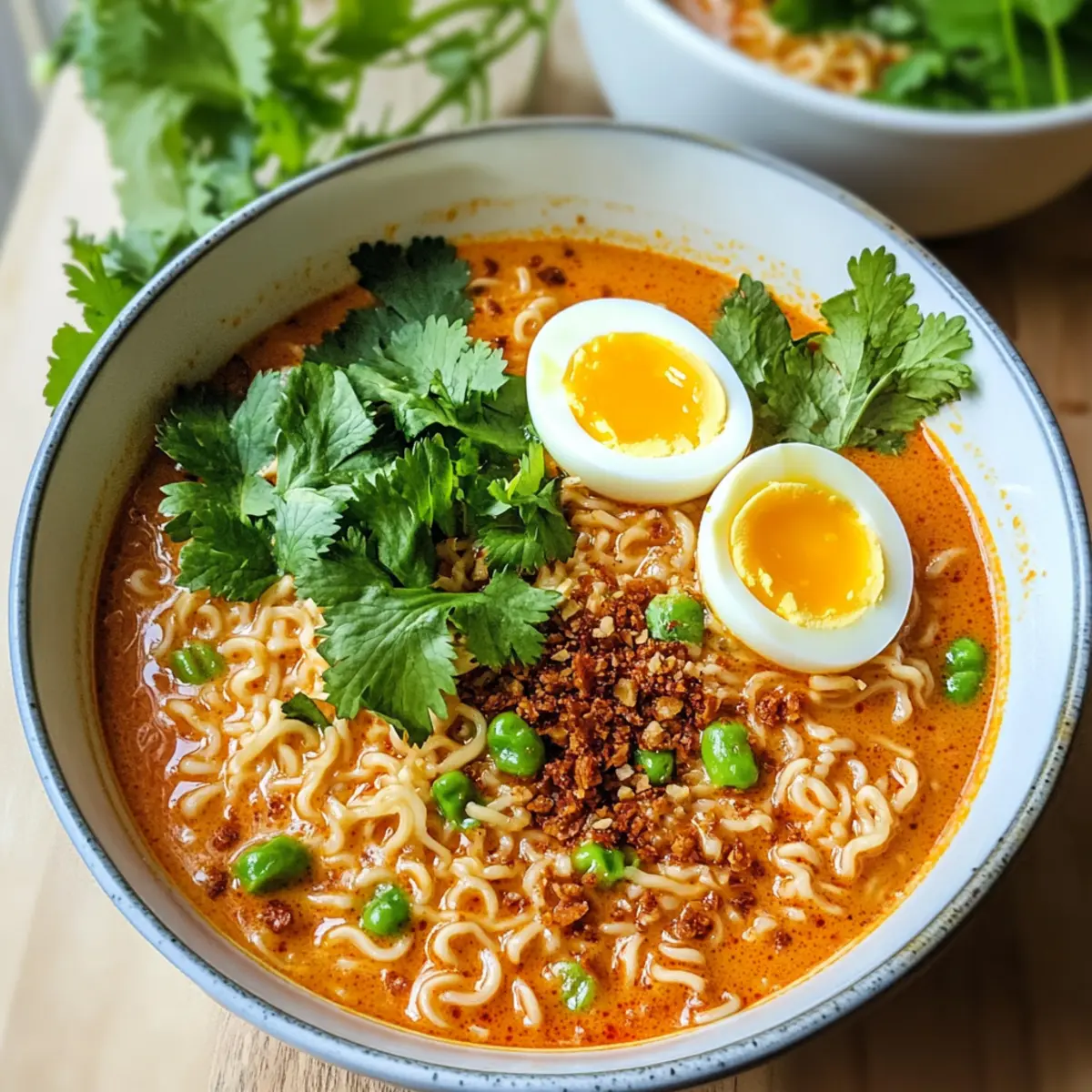 Ein köstliches Thai Kokosnuss-Curry Ramen, das in nur 30 Minuten fertig ist und die Aromen des Fernen Ostens vereint.