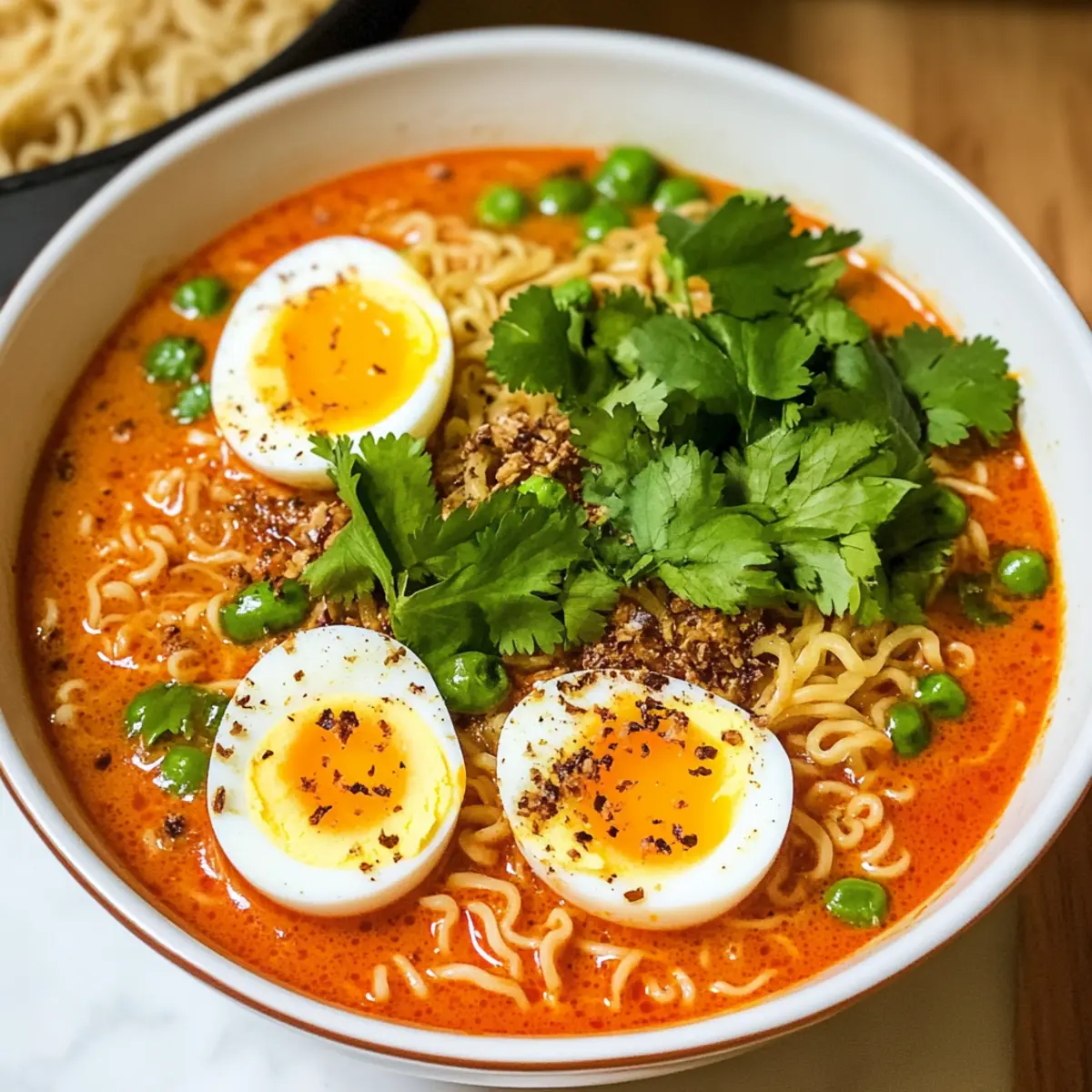 Perfekte Konsistenz: Mit weichgekochten Eiern und zarten Nudeln bietet es eine wunderbare Mischung aus Texturen, die den Genuss noch steigert.