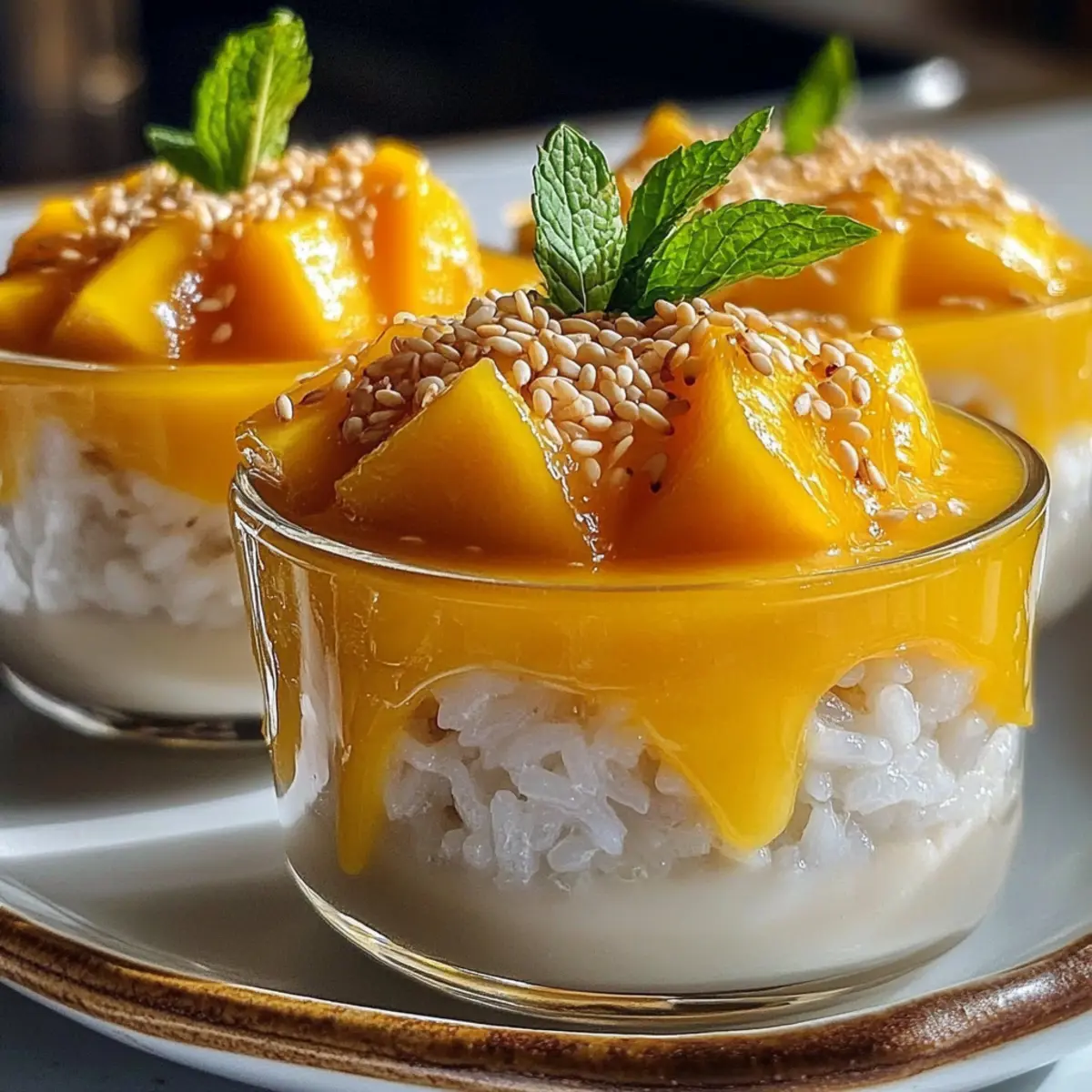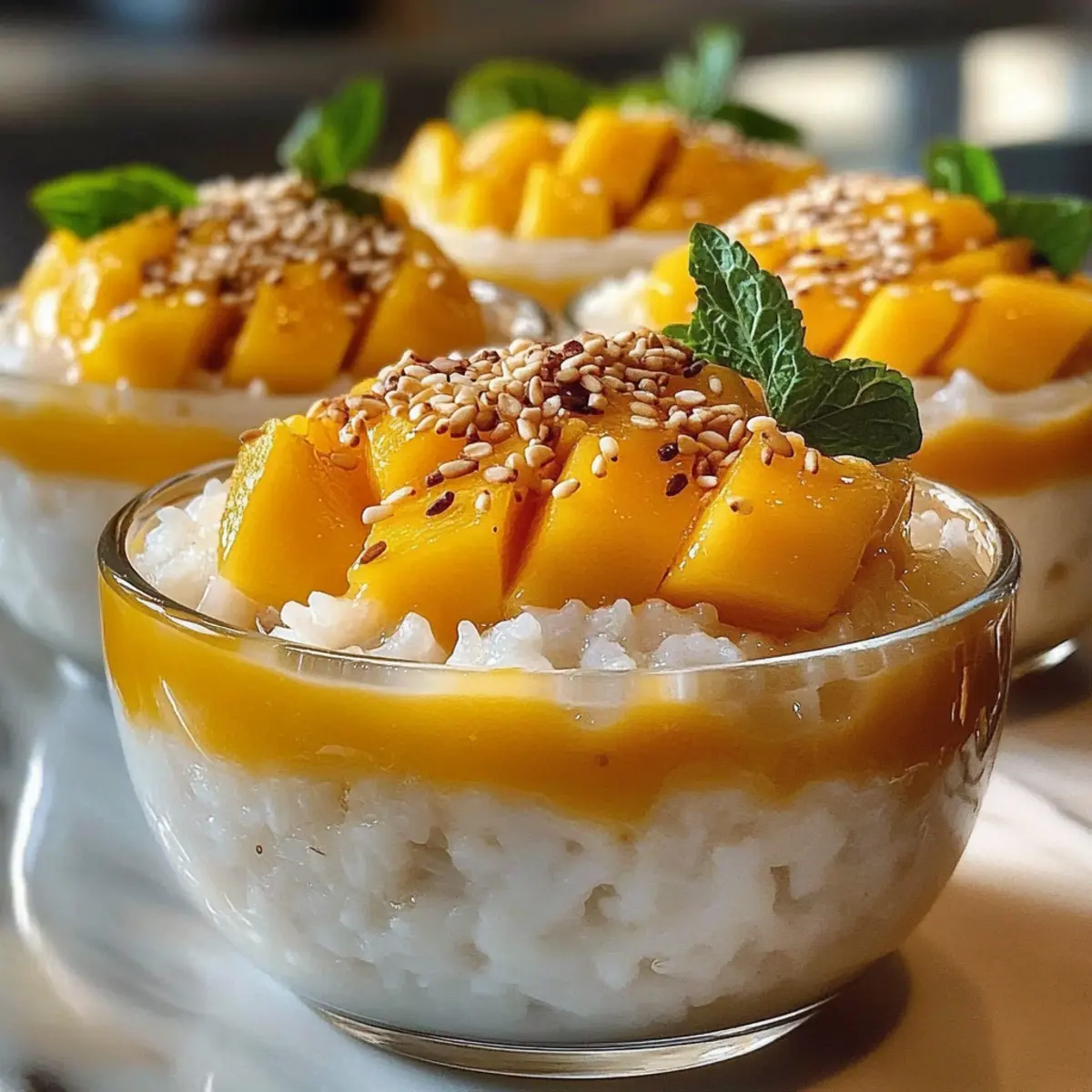Anything, was ich an diesen tropischen Köstlichkeiten zubereite, bringt sofort die Sonne ins Herz! Die thailändischen Mango-Klebreis-Tassen sind eine verführerische Kombination aus cremigem, kokosnuss-infundiertem Klebreis und saftigen, reifen Mangos. Diese einfache und glutenfreie Nachspeise ist nicht nur kinderleicht zuzubereiten, sondern beeindruckt auch bei jedem Anlass. Perfekt portioniert für Feste oder als leichter Genuss, bieten diese Tassen eine harmonische Balance aus Süße und Textur. Ob zu einem geselligen Abend mit Freunden oder einfach als kleine Auszeit für sich selbst; jeder Löffel bringt den Zauber Thailands direkt auf Ihren Tisch. Neugierig, wie einfach Sie diese Delikatesse in Ihrer Küche zaubern können? Warum werden Sie dieses Rezept lieben? Einfachheit: Die Zubereitung ist kinderleicht und erfordert nur grundlegende Kochkenntnisse. Tropischer Genuss: Die Kombination aus cremigem Kokosreis und saftigen Mangos bringt Urlaubsfeeling in Ihre Küche. Vielfältige Variationen: Experimentieren Sie mit schwarzem Klebreis oder fügen Sie frische Früchte hinzu, um neue Geschmacksrichtungen zu entdecken. Geselliges Dessert: Diese Portionen sind ideal für Partys und verleihen Ihrem Tisch einen eleganten Touch. Gesundheitlich unbedenklich: Glutenfrei und pflanzenbasiert – perfekt für verschiedene Ernährungsvorlieben. Entdecken Sie auch andere köstliche Rezepte wie den Avocado Toast Radieschen oder den Cheeseburger Auflauf Familie, um Ihre Kochkünste weiter zu verfeinern! Thailändische Mango-Klebreis-Zutaten • Diese köstlichen Zutaten machen Ihre thailändischen Mango-Klebreis-Tassen unwiderstehlich! Für den Klebreis Klebreis – Der Basisbestandteil, sorgt für die charakteristische klebrige und zähe Textur. Substitution: Sushi-Reis kann verwendet werden, aber die Textur ist etwas anders. Wasser – Zum Einweichen und Dämpfen des Reises. Für die Kokossoße Vollfett-Kokosmilch – Unverzichtbar für die reichhaltige und cremige Soße. Substitution: Es kann leichte Kokosmilch verwendet werden, jedoch ist der Geschmack weniger intensiv. Zucker – Süßt die Kokossoße. Substitution: Ahornsirup bietet eine nuancierte Süße. Salz – Verstärkt den Gesamtschmack der Soße. Für das Topping Mangos – Frisches Obst, das Saftigkeit und natürliche Süße hinzufügt. Tipp: Wählen Sie reife Mangos mit glatter Haut und floraler Note. Geröstete Sesamsamen oder Mungobohnen – Optionale Garnitur für zusätzliche Knusprigkeit und Textur. Frische Minzblätter – Farbige Garnitur für zusätzlichen Frischekick. Schritt-für-Schritt-Anleitung für Thailändische Mango-Klebreis-Tassen Step 1: Reis einweichen Spülen Sie den Klebreis unter kaltem Wasser so lange, bis das Wasser klar ist. Legen Sie den Reis in eine Schüssel und bedecken Sie ihn mit frischem Wasser. Lassen Sie den Reis mindestens 4 Stunden oder über Nacht einweichen, damit er die perfekte, klebrige Konsistenz erreicht. Step 2: Reis dämpfen Nach dem Einweichen den Reis abtropfen lassen. Bereiten Sie einen Dampfgarer vor, indem Sie ein Küchentuch in einen Dämpfkorb legen und diesen über einem Topf mit leicht simmerndem Wasser platzieren. Dämpfen Sie den Reis für 25-30 Minuten, bis er zart und durchgekocht ist. Achten Sie darauf, dass der Dampf nicht entweicht. Step 3: Kokossoße zubereiten In einem kleinen Topf die Vollfett-Kokosmilch, den Zucker und das Salz bei mittlerer bis niedriger Hitze erhitzen. Rühren Sie die Mischung regelmäßig um, bis sich der Zucker vollständig aufgelöst hat, aber lassen Sie die Soße nicht kochen. Dieser Schritt sorgt für eine cremige und süße Kokossoße, die perfekt zu Ihren Thailändischen Mango-Klebreis-Tassen passt. Step 4: Reis mit Kokossoße mischen Nehmen Sie 1/4 Tasse der vorbereiteten Kokossoße ab und stellen Sie sie für später beiseite. Mischen Sie die restliche Kokossoße gründlich mit dem gedämpften Reis. Decken Sie die Schüssel mit einem Tuch ab und lassen Sie die Mischung 15 Minuten ruhen, damit der Reis die Aromen gut aufnehmen kann. Step 5: Portionieren und anrichten Jetzt können Sie den Klebreis gleichmäßig in Desserttassen portionieren. Schneiden Sie die reifen Mangos in dünne Scheiben und legen Sie sie großzügig auf die Reisportionen, um eine ansprechende Präsentation zu erzielen. Die Kombination aus dem cremigen Reis und der süßen Mango ist ein wahrer Genuss. Step 6: Garnieren und servieren Gießen Sie die zurückbehaltene Kokossoße über jede Portion und garnieren Sie optional mit gerösteten Sesamsamen oder Mungobohnen für zusätzlichen Crunch. Fügen Sie frische Minzblätter hinzu, um die Farben aufzufrischen. Servieren Sie die Thailändischen Mango-Klebreis-Tassen warm oder bei Raumtemperatur und genießen Sie diese tropische Köstlichkeit! Was serviert man zu Thailändischen Mango-Klebreis-Tassen? Ein feines Dessert, das Sie mit zusätzlichen Köstlichkeiten kombinieren können, um ein vollständiges Geschmackserlebnis zu schaffen. Kokosnusseis: Creamy und erfrischend, es verstärkt den tropischen Flair und ergänzt den süßen Klebreis perfekt. Frischer Obstsalat: Eine Mischung aus saisonalen Früchten bringt eine knackige Textur und frische Aromen, die die Süße der Mangos ausbalancieren. Grüner Tee: Der knackige und leicht herbe Geschmack von grünem Tee harmoniert hervorragend mit der süßen Nachspeise und sorgt für einen eleganten Kontrast. Zitronen-Limonade: Die spritzige Frische und leichte Säure der Limonade erfrischt den Gaumen und ergänzt die Süße des Desserts. Geröstete Nüsse: Mandeln oder Cashewkerne fügen einen nussigen Crunch hinzu und bringen eine herzliche Note, die zu den Aromen des Reises passt. Mango-Sorbet: Intensiv fruchtig, es verstärkt das Mangoaroma und macht jeden Bissen noch erfrischender. Kokos-Chia-Pudding: Eine cremige und nahrhafte Beilage, die als Gesundheitszusatz wahrgenommen werden kann und geschmacklich gut harmoniert. Iced Matcha Latte: Das erdige Aroma passt sich gut an 