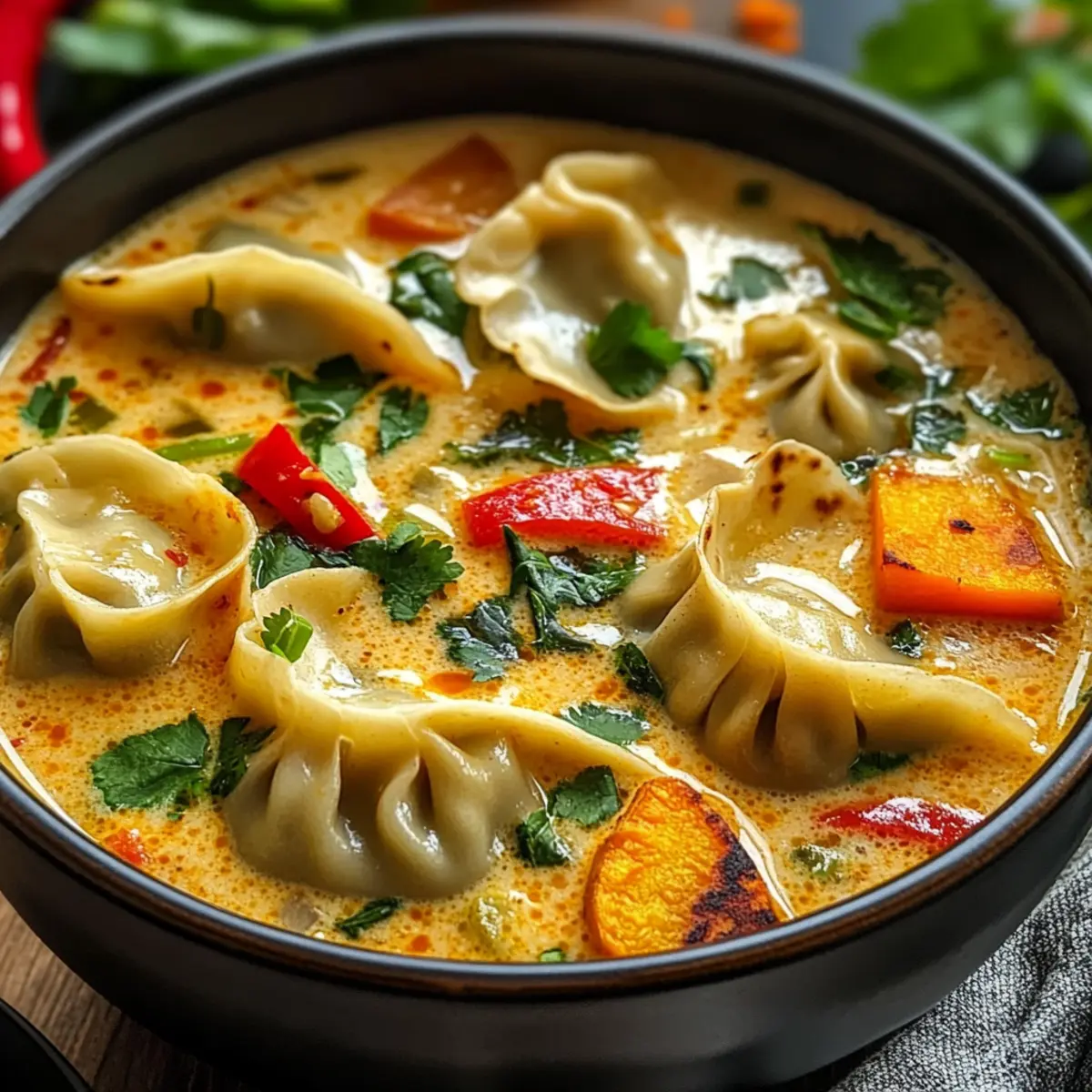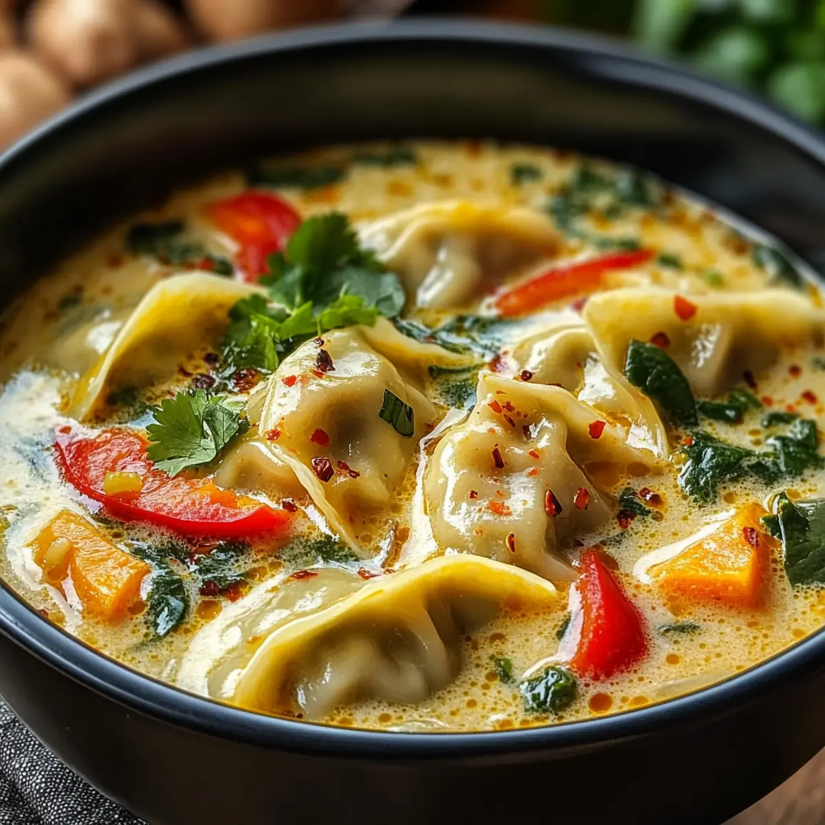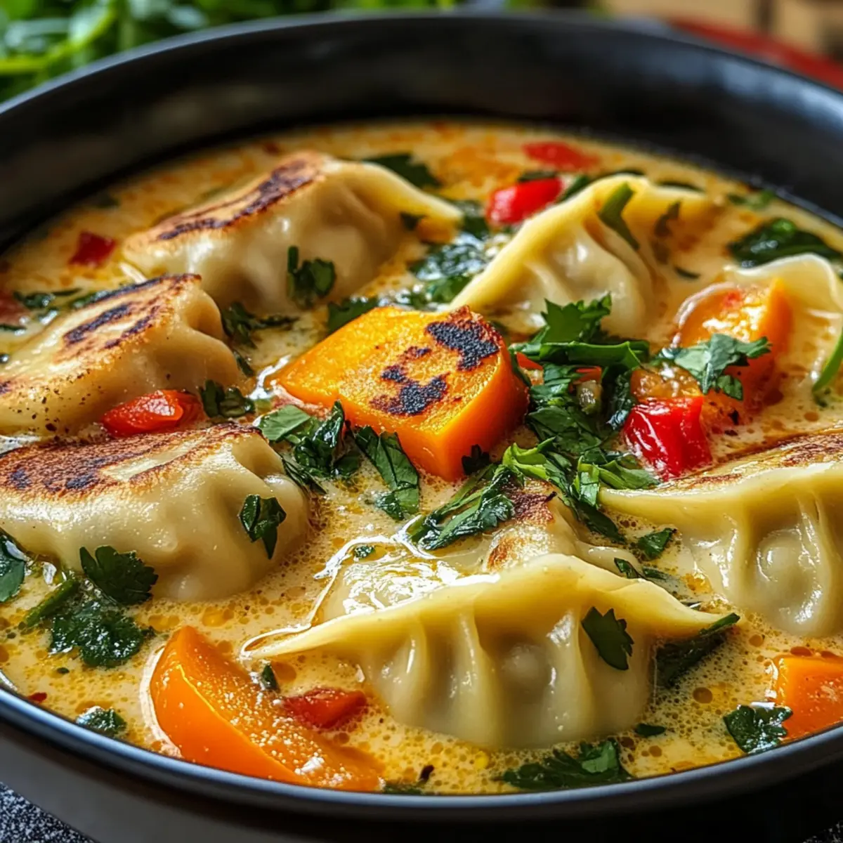 Als ich neulich durch den Gewürzladen schlenderte, fiel mir ein faszinierendes Aroma auf – eine Kombination aus kräftigem Curry und duftender Kokosnuss. Es war der perfekte Aufhänger für mein neues Rezept: Thailändische Teigtaschen-Kokosnuss-Suppe. Diese warme und einladende Suppe kombiniert köstliche potstickers mit farbenfrohen Paprika und süßen Kartoffeln in einer cremigen Kokosmilchbasis, die einfach zum Verlieben ist. Ein gesundheitlicher Bonus: Sie ist nicht nur eine schnelle und unkomplizierte Lösung für hektische Wochentage, sondern auch anpassbar – ob vegetarisch oder mit Fleisch, jeder findet hier seinen Platz. Neugierig, wie die verschiedenen Aromen sich vereinen und in deinem Esszimmer für Freude sorgen können? Lass uns gleich loslegen! Warum du dieses Rezept lieben wirst Einfachheit: Die Zubereitung der Thailändischen Teigtaschen-Kokosnuss-Suppe ist kinderleicht und benötigt nur grundlegende Kochfähigkeiten, perfekt für alle, die frische, hausgemachte Gerichte suchen. Vielseitigkeit: Egal, ob du Vegetarier bist oder Fleischliebhaber – du kannst die Teigtaschen ganz nach deinem Geschmack füllen oder sogar deine Lieblingsgemüse substituieren. Reichhaltiger Geschmack: Die Kombination aus cremiger Kokosmilch und würzigem Curry bringt einen umwerfenden Geschmack auf deinen Tisch, der bei jedem Schluck zum Entspannen einlädt. Gesunde Zutaten: Mit frischem Gemüse und einer leckeren Brühe, die voll von Nährstoffen ist, fügt dieses Gericht nicht nur Geschmack, sondern auch Vitamine hinzu. Köstliches Soulfood: Diese Suppe ist das ideale Comfort Food, das die ganze Familie lieben wird – von den Kinderaugen bis zu den anspruchsvollen Gaumen der Erwachsenen. Wenn du nach weiteren inspirierenden Rezepten suchst, schau dir auch meine zarten koreanischen BBQ-Fleischbällchen mit Dip an! Zutaten für die Thailändische Teigtaschen-Kokosnuss-Suppe • Diese Zutatenliste hilft dir, die perfekte Kombination für die Thailändische Teigtaschen-Kokosnuss-Suppe zu zaubern. Für die Suppe Olivenöl – ideal zum Sautieren der Gemüse und Verbesserung des Geschmacks; oft kann auch Sesamöl verwendet werden für einen authentischeren asiatischen Flair. Knoblauch – bringt eine aromatische Tiefe; alternativ kannst du Schalotten für einen milden Geschmack verwenden. Zwiebel – sorgt für eine süße Grundnote; Lauch ist ein guter Ersatz, wenn du etwas Abwechslung möchtest. Rote Paprika – fügt Süße und Farbe hinzu; gelbe oder grüne Paprika sowie Zuckerschoten bieten ebenfalls einen knackigen Kontrast. Süßkartoffel – trägt zur Cremigkeit und Süße bei; Butternusskürbis oder gewürfelte Karotten halten gut die Form beim Köcheln. Rote Currypaste – verleiht der Suppe ihre Hauptgeschmacksnote und Schärfe; passe die Menge an deinen persönlichen Vorlieben an – thailändische Chilisauce kann eine schnelle Alternative sein. Kokosmilch – schafft die cremige Basis für die Brühe; für eine leichtere Variante kannst du ungesüßte Mandelmilch verwenden. Gemüsebrühe – sorgt für eine tiefere Geschmacksdimension; für nicht-vegetarische Varianten ist auch Hühnerbrühe geeignet. Teigtaschen – die Hauptproteinquelle; achte darauf, glutenfreie Optionen wählen, falls erforderlich. Frischer Spinat – bringt Farbe und Nährstoffe; Baby-Grünkohl oder Napa-Kohl sind tolle Alternativen für eine andere Textur. Limettensaft – bringt Frische durch seine Säure; Zitronensaft kann zur Schärfe ebenfalls verwendet werden. Frischer Koriander – sorgt für einen frischen Kräutergeschmack als Garnierung; tausche ihn gegen Thai-Basilikum oder Minze aus, um den Geschmack zu variieren. Für das Topping Gebackene Schalotten – fügen eine knusprige Note hinzu und passen perfekt zur Textur der Suppe. Chiliöl – für diejenigen, die es gerne etwas schärfer mögen; gibt der Suppe das gewisse Etwas. Schritt-für-Schritt-Anleitung für die Thailändische Teigtaschen-Kokosnuss-Suppe Schritt 1: Gemüse anbraten Erhitze in einem großen Topf 2 Esslöffel Olivenöl bei mittlerer bis hoher Hitze. Füge den fein gehackten Knoblauch, die gewürfelte Zwiebel, die rote Paprika und die gewürfelte Süßkartoffel hinzu. Brate diese Mischung 3–4 Minuten lang, bis das Gemüse weich wird und die Zwiebel glasig aussieht. Schritt 2: Currypaste integrieren Rühre die rote Currypaste in das sautierte Gemüse ein und lasse alles für weitere 1 Minute kochen, bis die Paste aromatisch wird und die Aromen sich entfalten. Achte darauf, die Currypaste gut mit dem Gemüse zu vermengen, um eine gleichmäßige Verteilung der Gewürze zu gewährleisten. Schritt 3: Brühe und Kokosmilch hinzufügen Gieße nun 400 ml Kokosmilch und 500 ml Gemüsebrühe in den Topf. Rühre gründlich um, bis alles gut vermischt ist. Bringe die Mischung zum Kochen und beobachte, wie sie leicht zu blubbern beginnt; dies dauert etwa 3–5 Minuten. Schritt 4: Teigtaschen kochen Füge die Teigtaschen in die kochende Brühe hinzu und reduziere die Hitze auf ein sanftes Köcheln. Lass die Suppe etwa 6–8 Minuten köcheln, bis die Teigtaschen durchgewärmt sind und die Brühe leicht eingedickt ist. Überprüfe die Teigtaschen auf Garheit – sie sollten weich und heiß sein. Schritt 5: Spinat und Limettensaft hinzufügen Rühre den frischen Spinat und 2 Esslöffel Limettensaft in die Suppe ein und lasse alles für 1–2 Minuten köcheln, bis der Spinat verwelkt und leuchtend grün wird. Achte darauf, die Suppe nicht zu lange zu kochen, damit der Spinat frisch bleibt. Schritt 6: Servieren und garnieren Verteile die Thailändische Teigtaschen-Kokosnuss-Suppe in Schüsseln und garniere jede Portion mit frisch gehacktem Koriander. Du kannst auch knusprige gebackene Schalotten oder einen Spritzer Chiliöl hinzufügen, um den Geschmack zu intensivieren und für ein ansprechendes Aussehen zu sorgen. Variationen für die Thailändische Teigtaschen-Kokosnuss-Suppe Lass deiner Kreativität freien Lauf und passe dieses Rezept an