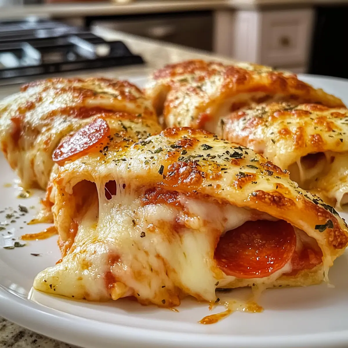 Als ich kürzlich meine Küche betrat, überkam mich die Sehnsucht nach etwas Knusprigem und Herzhaftem. Die Lösung? Diese unwiderstehlichen Tortilla-Pizza-Rollen mit Mozzarella und Peperoni! In gerade einmal 22 Minuten zauberst du eine köstliche Snack-Option, die perfekt für die nächste Spielabend-Party oder als schnelle Vorspeise ist. Was mich besonders begeistert, ist die Vielfalt, denn du kannst sie ganz nach deinem Geschmack anpassen, sei es mit Gemüse oder unterschiedlichen Fleischsorten. Nicht nur sind sie eine echte Gaumenfreude, sondern auch kinderleicht zuzubereiten. Wer könnte da widerstehen? Bist du bereit, deine nächste Geschmacksexplosion zu erleben? Warum sind Tortilla-Pizza-Rollen so beliebt? Einfache Zubereitung: Diese Tortilla-Pizza-Rollen sind im Handumdrehen fertig, sodass du sie auch an hektischen Tagen genießen kannst. Kreative Anpassungsfähigkeit: Füge deine Lieblingszutaten hinzu und kreiere so einzigartige Variationen – von Gemüse über verschiedene Wurstsorten bis hin zu Käse. Perfekte Häppchen: Ideal für Partys oder als Snack vor dem Fernseher; sie begeistern sowohl Kinder als auch Erwachsene! Knuspriger Genuss: Außen goldbraun und knusprig, innen weich und cheesy – ein Geschmackserlebnis, das du nicht verpassen solltest. Vielleicht möchtest du sie mit einem köstlichen Dip wie Schichtdessert Blaubeeren Erdbeeren kombinieren! Vielseitige Beilagen: Egal ob mit Marinara, Ranch-Dressing oder sogar spicy Sriracha – du wirst die perfekte Dip-Kombination finden! Zutaten für Tortilla-Pizza-Rollen • Hier sind die notwendigen Zutaten, um diese köstlichen Tortilla-Pizza-Rollen mit Mozzarella und Peperoni zuzubereiten: Für die Rollen Mehl-Tortillas – Die Basis der Rollen; achte darauf, dass sie Raumtemperatur haben, um ein Brechen zu vermeiden. Pizzasauce – sorgt für Geschmack und Feuchtigkeit; verwende sie sparsam, um Sumpf-Effekte zu vermeiden. Mozzarella-Käse – bietet Cremigkeit und einen tollen Schmelz; frisch ist bevorzugt, aber vorgeriebener funktioniert auch. Peperoni – gibt den herzhaften Geschmack; für eine andere Option kannst du Truthahn-Peperoni, Salami oder Gemüse verwenden. Italienische Gewürzmischung – verstärkt den Gesamtgeschmack; kann mit getrocknetem Oregano und Basilikum ersetzt werden. Schritt-für-Schritt-Anleitung für Tortilla-Pizza-Rollen Mozzarella Peperoni Step 1: Ofen vorheizen Heize den Ofen auf 200°C vor, damit deine Tortilla-Pizza-Rollen gleichmäßig und perfekt knusprig werden. Dies dauert etwa 10 Minuten, während du die anderen Zutaten vorbereitest. Eine vorgeheizte Umgebung sorgt dafür, dass der Käse gleichmäßig schmilzt und die Tortillas eine goldene Farbe annehmen. Step 2: Tortillas vorbereiten Lege die Mehl-Tortillas flach auf eine saubere Arbeitsfläche. Stelle sicher, dass sie Zimmertemperatur haben, um ein Brechen beim Rollen zu vermeiden. Diese Basis ist entscheidend, damit die Tortilla-Pizza-Rollen ordentlich zusammenhalten und schön gleichmäßig gefüllt werden können. Step 3: Pizzasauce auftragen Verteile mit einem Löffel eine gleichmäßige Schicht Pizzasauce auf jeder Tortilla. Achte darauf, die Sauce nicht zu dick aufzutragen, um ein Durchweichen zu vermeiden. Eine dünne, gleichmäßige Schicht sorgt für den perfekten Geschmack, ohne dass die Tortillas matschig werden. Step 4: Mozzarella-Käse hinzufügen Füge großzügig den geriebenen Mozzarella-Käse über die Pizzasauce hinzu. Decke die Sauce vollständig ab, damit der Käse beim Backen schön schmilzt und einer der Hauptgeschmäcker der Tortilla-Pizza-Rollen wird. Frischer Käse sorgt für eine bessere Schmelze, aber vorgeriebener funktioniert auch gut. Step 5: Peperoni anordnen Lege die Peperoni gleichmäßig über den Käse und lasse sie dabei leicht überlappen. So erhält jede Tortilla-Pizza-Rolle den herzhaften Geschmack, den du liebst. Wenn du eine vegetarische Variante bevorzugst, kannst du die Peperoni durch dein Lieblingsgemüse ersetzen. Step 6: Italienische Gewürze hinzufügen Bestreue die gefüllten Tortillas mit einer Prise italienischer Gewürzmischung. Diese Mischung verstärkt den Gesamtgeschmack der Tortilla-Pizza-Rollen. Achte darauf, nicht zu viel zu verwenden, damit die anderen Aromen nicht überdeckt werden. Step 7: Rollen formen Beginne an einem Ende der Tortilla und rolle sie straff bis zum anderen Ende auf. Achte darauf, dass die Füllung nicht herausquillt, da eine feste Rolle ein besseres Backergebnis liefert. Diese Technik sorgt dafür, dass die Tortilla-Pizza-Rollen beim Backen ihre Form behalten. Step 8: In Stücke schneiden Schneide die Rollen in 2-3 cm breite Stücke, um kleine Häppchen zu erhalten. Diese Portionsgröße macht sie ideal für Snacks oder Appetizer und sorgt dafür, dass sie gleichmäßig backen. Positioniere die Rollen mit der Schnittfläche nach oben, damit sie schön knusprig werden. Step 9: Auf dem Backblech anordnen Lege die geschnittenen Tortilla-Pizza-Rollen auf ein mit Backpapier ausgelegtes Backblech. Achte darauf, dass sie genügend Abstand haben, um gleichmäßig zu backen. Dies verhindert, dass sie aneinanderbacken und sorgt für eine perfekte Knusprigkeit. Step 10: Backen Backe die Tortilla-Pizza-Rollen für 10-12 Minuten im vorgeheizten Ofen, bis der Käse geschmolzen und die Tortillas goldbraun sind. Überwache den Backvorgang, damit sie nicht anbrennen. Die perfekte Backzeit bringt die idealen knusprigen und geschmackvollen Rollen hervor. Was passt zu Tortilla-Pizza-Rollen Mozzarella Peperoni? Um ein rundum gelungenes Mahl zu kreieren, solltest du das perfekte Begleitessen wählen, das die knusprigen und herzhaften Aromen der Tortilla-Pizza-Rollen hervorragend ergänzt. Cremige Guacamole: Diese leckere Mischung aus Avocado und Zwiebeln bringt eine frische, cremige Note, die ideal zu den herzhaften Rollen passt. Sie sorgt für eine harmonische Balance zwischen den Aromen. Marinara-Dip: Ein klassischer Begleiter! Die süß-saure Tomatensauce unterstreich