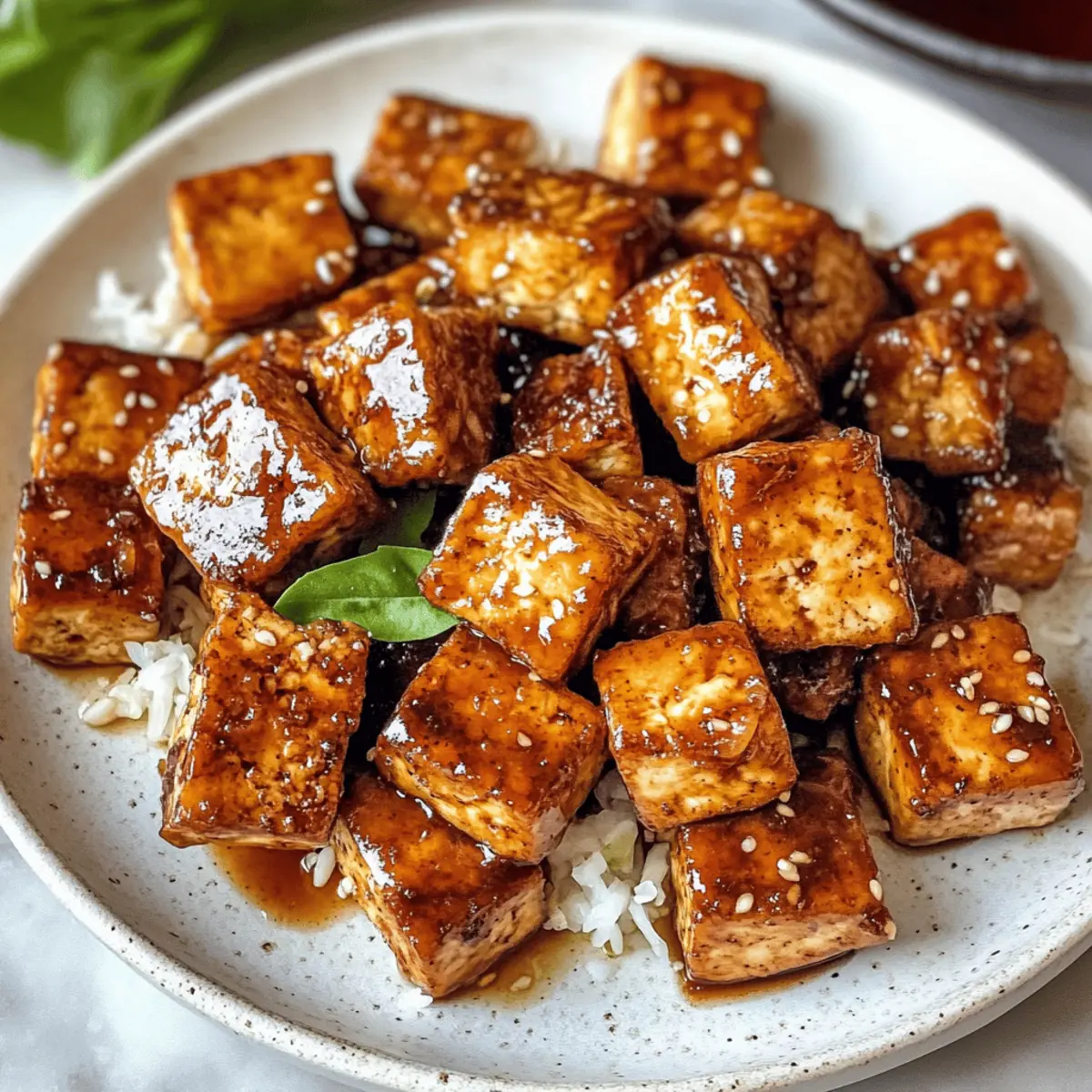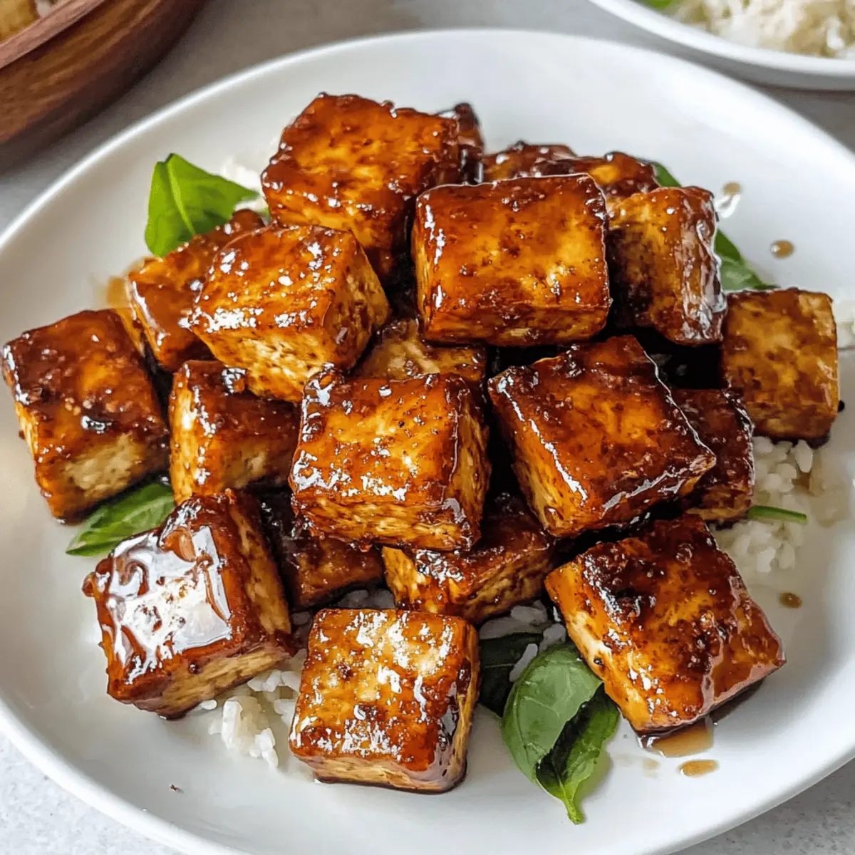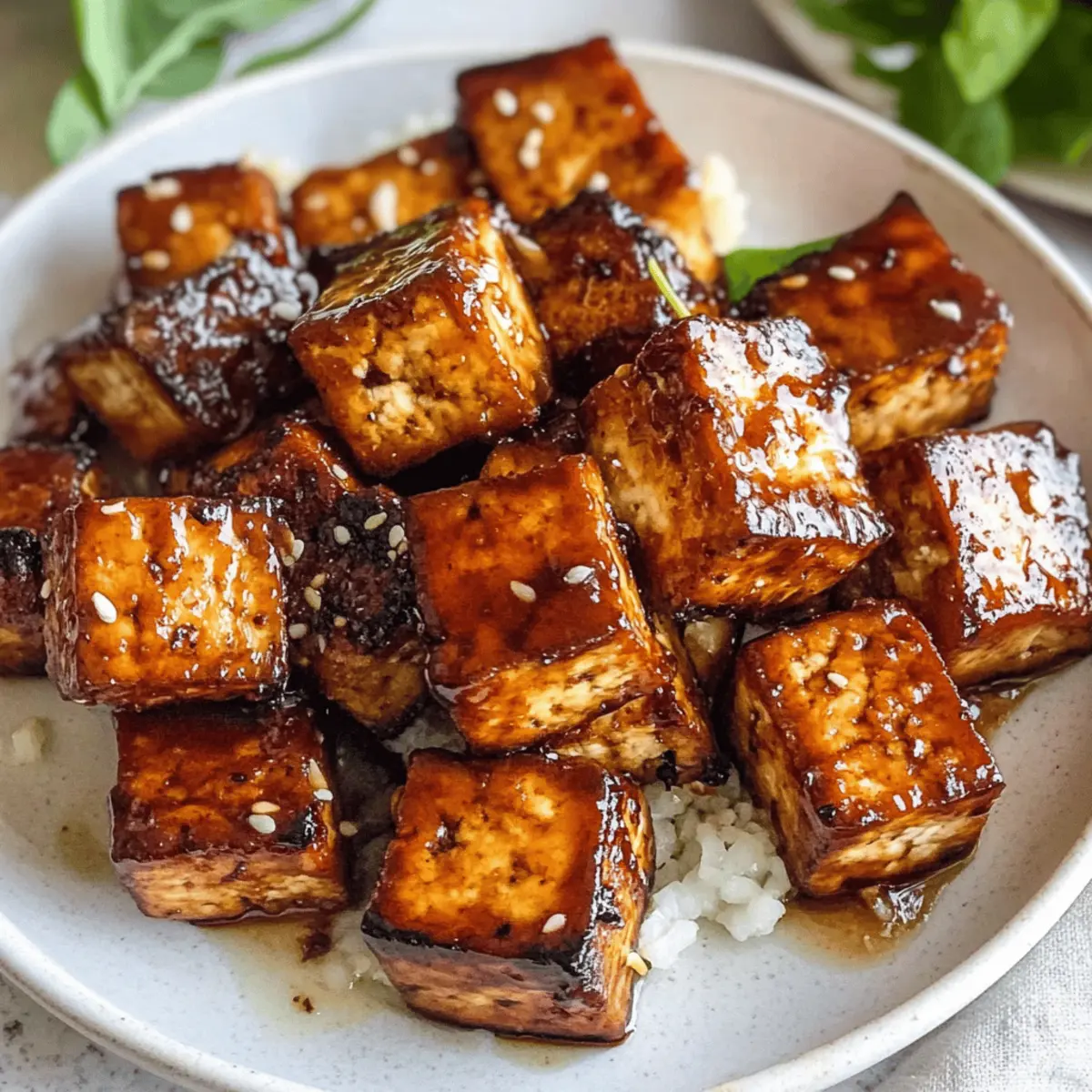 Während ich in meiner Küche stehe und die Zutaten für mein neuestes Gericht vorbereite, überkommt mich sofort der wunderbare Duft von gebratenem Tofu, der in der Luft schwebt. Heute präsentiere ich euch mein Rezept für 20-Minuten Umami Bomb Tofu – ein veganes Gericht, das nicht nur unglaublich köstlich ist, sondern auch in Windeseile auf dem Tisch steht. Diese krebsroten Tofuwürfel sind umhüllt von einer cremigen Sauce aus Tamari, Ahornsirup, Knoblauch und Dijon-Senf und machen euch garantiert zu einem Star bei eurem nächsten Abendessen. Die Kombination aus süßen, herzhaften und leicht würzigen Aromen sorgt dafür, dass dieses Gericht nicht nur gesund ist, sondern auch eine wahre Freude für eure Geschmacksknospen darstellt. Ob in Schüsseln, Salaten oder Wraps serviert – ich kann kaum erwarten, wie sehr ihr dieses Rezept lieben werdet! Seid ihr bereit, euch von diesem umami-reichen Genuss verführen zu lassen? Warum ist Umami Bomb Tofu einzigartig? Einfachheit: In nur 20 Minuten zaubert ihr ein köstliches, veganes Gericht, das perfekt für jede Gelegenheit ist. Vielfältige Verwendung: Ob in Reis-Schüsseln, in Salaten oder Wraps – der Umami Bomb Tofu passt einfach überall rein! Reichhaltiger Geschmack: Die Kombination aus Tamari, Ahornsirup und Knoblauch macht jeden Bissen zu einem Genuss. Nährstoffreich: Tofu ist eine großartige Proteinquelle, die nicht nur sättigt, sondern auch viele Vitamine liefert. Gesunde Zubereitung: Mit Avocadoöl gebraten, bleibt dieses Rezept leicht und köstlich, ideal für alle, die auf ihre Ernährung achten. Ein Hit bei Gästen: Überrascht eure Freunde mit diesem einfach zuzubereitenden Star-Gericht, das jeden Tisch aufwertet! Schaut euch auch unsere Fryer Pizza Bombs an, wenn ihr nach weiteren köstlichen Ideen sucht. Umami Bomb Tofu Zutaten • Für den perfekten Geschmack. Für die Tofu-Zubereitung: Avocadoöl – sorgt für eine gesunde Fettquelle beim Braten. Ersetzt es durch neutrales Öl wie Raps- oder Sonnenblumenöl. Extra fester Tofu – der Hauptdarsteller, der für Protein und eine angenehme Textur sorgt. Verwende einen 400g Block, vorzugsweise in Wasser verpackt, damit er beim Kochen stabil bleibt. Für die Sauce: Tamari – bringt umami und ist eine glutenfreie Sojasauce. Verwende Sojasauce, wenn Gluten kein Problem darstellt. Dijon-Senf – verleiht Cremigkeit mit einer würzigen Note. Keine direkten Ersatzstoffe, aber Senf aus der Tube könnte in der Not funktionieren. Wasser – hilft, die Sauce auf die gewünschte Konsistenz zu verdünnen. Gemüsebrühe sorgt für zusätzlichen Geschmack. Ahornsirup – bietet die Süße, die die herzhaften Zutaten ausbalanciert. Alternativen sind Agavensirup oder brauner Reissirup. Knoblauch – verstärkt das Aroma mit aromatischer Tiefe. Variiere die Menge je nach persönlichem Geschmack. Optionale Zutaten: Rote Pfefferflakes – für eine zusätzliche Schärfe kann jederzeit hinzugefügt werden. Schritt-für-Schritt-Anleitungen für Umami Bomb Tofu Step 1: Tofu vorbereiten Schneide den extra festen Tofu in mundgerechte Würfel und tupfe ihn gründlich mit Küchenpapier trocken. Diese Vorbereitung ist entscheidend, um sicherzustellen, dass der Tofu später beim Braten schön knusprig wird. Nimm dir etwa 5 Minuten Zeit für diesen Schritt, um die beste Textur zu erreichen. Step 2: Öl erhitzen Erhitze in einer Pfanne 2 Esslöffel Avocadoöl bei mittlerer Hitze, bis es leicht schimmert. Dies sollte etwa 2-3 Minuten dauern. Achte darauf, dass das Öl heiß genug ist, damit der Tofu beim Hinzufügen sofort anbräunt und eine goldbraune Kruste entwickelt. Step 3: Tofu anbraten Füge die Tofuwürfel vorsichtig in die heiße Pfanne hinzu und brate sie etwa 10 Minuten lang. Wende die Stücke regelmäßig mit einem Spatel, damit sie gleichmäßig goldbraun und knusprig werden. Der Tofu sollte eine schöne, goldene Farbe erreichen und beim Wenden ein leichtes Geräusch machen, wenn er knusprig ist. Step 4: Sauce zubereiten Während der Tofu brät, bereite die Sauce vor. Mische in einer Schüssel 4 Esslöffel Tamari, 2 Esslöffel Dijon-Senf, 3 Esslöffel Wasser und 2 Esslöffel Ahornsirup. Füge 1-2 fein gehackte Knoblauchzehen hinzu und rühre alles gut um, bis die Zutaten gut kombiniert sind. Dies sollte nur 5 Minuten in Anspruch nehmen. Step 5: Tofu mit Sauce kombinieren Sobald der Tofu goldbraun ist, gieße die vorbereitete Sauce gleichmäßig über die Tofuwürfel in der Pfanne. Rühre vorsichtig um, um sicherzustellen, dass die Stücke gut mit der Sauce überzogen sind. Lass alles für weitere 2-3 Minuten köcheln, damit die Sauce leicht eindickt und der Tofu den vollen Geschmack der Umami Bomb entfalten kann. Step 6: Servieren Nimm die Pfanne vom Herd und serviere den Umami Bomb Tofu heiß. Dieser köstliche Tofu kann in großzügigen Portionen über gedämpftem Reis, in Salaten oder als Füllung in Wraps und Tacos serviert werden. Erlebe die harmonische Verschmelzung von Aromen und Texturen und genieße das Kochen mit diesem schnellen, veganen Rezept! Variationen für Umami Bomb Tofu Entdecke die vielfältigen Möglichkeiten, wie du dein Rezept für Umami Bomb Tofu anpassen und ganz nach deinem Geschmack gestalten kannst! Für mehr Schärfe: Füge frische Chili-Stücke oder eine Prise Cayennepfeffer zur Sauce hinzu. Dies verleiht deinem Tofu eine aufregende, pikante Note, die die Geschmacksknospen kitzelt. Gemüse-Boost: Integriere zusätzliches Gemüse wie Paprika, Brokkoli oder Zucchini in die Pfanne. Das bringt nicht nur mehr Farbe ins Spiel, sondern auch gesunde Nährstoffe. Süßere Variante: Tausche den Ahornsirup gegen Honig (oder Agavendicksaft für eine vegane Option), um eine intensivere Süße zu erhalten, die perfekt mit der Würze harmoniert. Crunchy Topping: Garniere den fertigen Tofu mit gerösteten Sesamsamen oder gehackten Nüssen für einen zusätzlichen Crunch und ein herrliches Aroma. Kokosnuss-Twist: Füge einen Schuss Kokosmilch zur Sauce hinzu, um eine crem