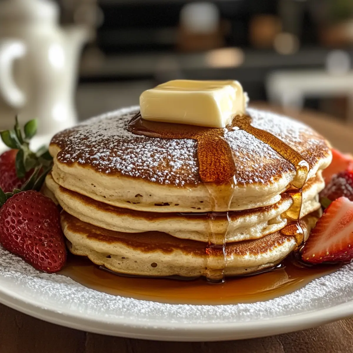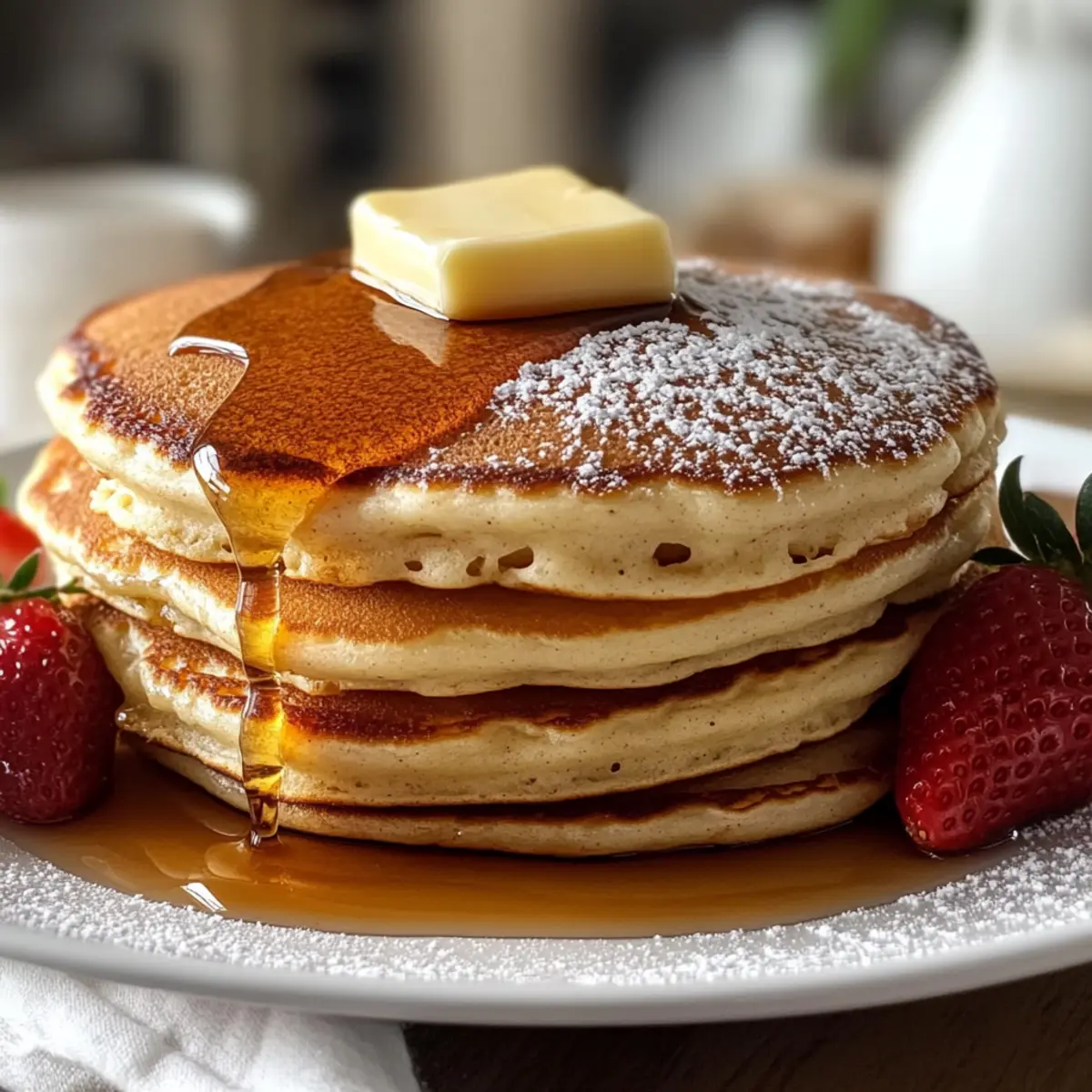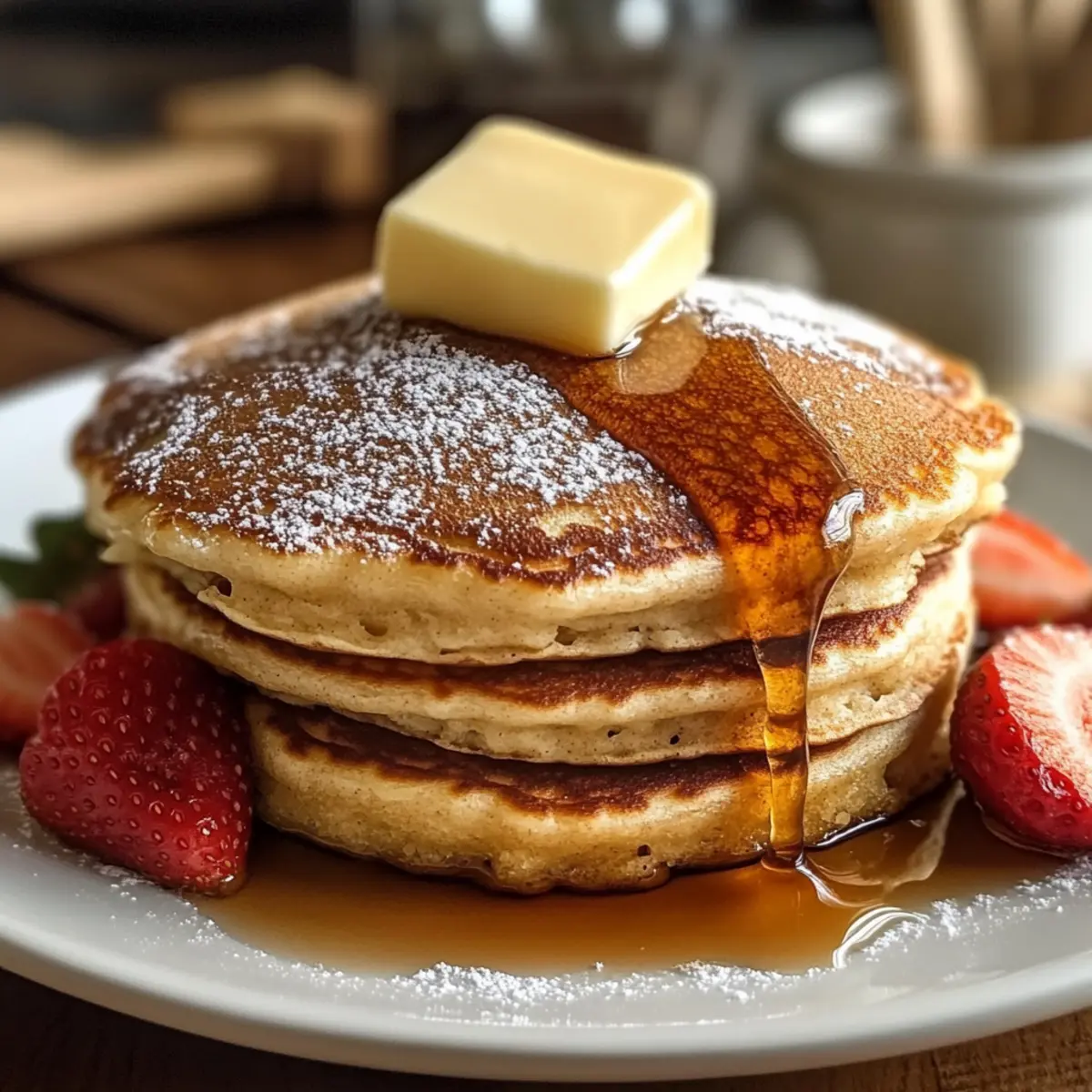 Morgens, wenn die ersten Sonnenstrahlen durch das Fenster kitzeln, zieht der verlockende Duft von frisch gebackenen Vanille Zimt Buttermilch Pfannkuchen durch die Küche und verwandelt den Tag in ein kulinarisches Fest. Diese fluffigen, zarten Pfannkuchen sind die perfekte Wahl für ein gemütliches Frühstück oder eine entspannte Brunchrunde mit Freunden. Dank der Buttermilch wird jeder Bissen unwiderstehlich weich und leicht, während die Kombination aus Vanille und Zimt eine wohlige Wärme vermittelt, die einfach glücklich macht. Ob ungesüßt oder mit frischen Früchten und Sirup serviert, diese Pfannkuchen sind nicht nur schnell zubereitet, sondern auch ein echter Genuss für die Seele. Wie wäre es, wenn du heute Morgen deine eigenen Pfannkuchen zauberst und den Tag mit einem kleinen Festmahl beginnst? Warum sind diese Pfannkuchen ein Muss? Fluffige Textur: Mit ihrer einzigartigen Konsistenz schmelzen die Vanille Zimt Buttermilch Pfannkuchen förmlich im Mund und bieten ein unvergleichliches Geschmackserlebnis. Schnelle Zubereitung: Die einfache Schritt-für-Schritt-Anleitung macht es jedem möglich, auch an geschäftigen Morgen ganz entspannt köstliche Pfannkuchen zu zaubern. Vielseitigkeit: Ob mit frischen Früchten, Nüssen oder einem großzügigen Schuss Ahornsirup – diese Pfannkuchen lassen sich nach Lust und Laune variieren und anpassen. Wohlige Wärme: Die Kombination aus Vanille und Zimt bringt eine heimelige Atmosphäre in jede Frühstücksrunde, die garantiert für gute Laune sorgt. Ideal für Familie und Freunde: Obfür das Wochenende oder einen besonderen Anlass, diese Pfannkuchen sind ein Hit bei Groß und Klein. Probiere auch unsere Protein Pfannkuchen Rezept für eine gesunde Alternative! Vanille Zimt Buttermilch Pfannkuchen Zutaten Für den Teig: Allzweckmehl – sorgt für die nötige Struktur; kann durch eine glutenfreie Mehlmischung ersetzt werden. Zucker – verleiht Süße; brauner Zucker kann für ein reichhaltigeres Aroma verwendet werden. Backpulver – wichtig für die fluffige Konsistenz; achte darauf, dass es frisch ist für beste Ergebnisse. Natron – zusammen mit der Buttermilch für zusätzlichen Auftrieb. Salz – hebt den Geschmack hervor. Zimtpulver – gibt eine warme Würze; kann nach Belieben angepasst oder durch Muskatnuss ersetzt werden. Buttermilch – sorgt für Zartheit und Geschmack; kann durch 1¼ Tassen Milch mit 1 Esslöffel Zitronensaft oder Essig ersetzt werden. Großes Ei – bringt Reichhaltigkeit und bindet die Zutaten. Ungesalzene Butter – fügt Feuchtigkeit und Geschmack hinzu; soll geschmolzen und abgekühlt sein, um das Ei nicht zu stocken. Vanilleextrakt – verleiht Süße und Wärme. Genieße diese Vanille Zimt Buttermilch Pfannkuchen als köstlichen Start in den Tag und lasse dich von ihrem herrlichen Geschmack verführen! Schritt-für-Schritt-Anleitung für Vanille Zimt Buttermilch Pfannkuchen Schritt 1: Trockene Zutaten vorbereiten In einer großen Schüssel das Allzweckmehl, den Zucker, das Backpulver, das Natron, das Salz und das Zimtpulver gründlich vermischen. Mit einem Schneebesen sollten die trockenen Zutaten gut kombiniert werden, um sicherzustellen, dass das Backpulver gleichmäßig verteilt ist. Diese Basis ist entscheidend für die fluffigen Vanille Zimt Buttermilch Pfannkuchen, die du dir wünschst! Schritt 2: Feuchte Zutaten mischen In einer separaten Schüssel die Buttermilch, das große Ei, die geschmolzene Butter und den Vanilleextrakt gut verquirlen, bis die Mischung glatt ist. Die Buttermilch bringt die benötigte Zartheit, während die Vanille für eine süße Note sorgt. Achte darauf, dass die Butter abgekühlt ist, um das Ei nicht zu stocken. Schritt 3: Mischungen kombinieren Gieße die feuchten Zutaten in die Schüssel mit den trockenen Zutaten und falte sie vorsichtig zusammen. Vermeide das Übermischen; ein paar Klumpen sind völlig in Ordnung. Dies ist ein wichtiger Schritt, um die zarten Vanille Zimt Buttermilch Pfannkuchen zu gewährleisten, die dir schmecken werden. Schritt 4: Teig ruhen lassen Lass den Teig für etwa 5 Minuten ruhen. Dadurch kann das Mehl quellen und sorgt für noch fluffigere Pfannkuchen. Nutze diese Zeit, um deinen Kochbereich vorzubereiten und die Pfanne zu erhitzen. Schritt 5: Pfanne erhitzen Erhitze eine antihaftbeschichtete Pfanne oder einen Grill bei mittlerer Hitze und fette die Oberfläche leicht mit Butter oder Öl ein. Wenn du das Gefühl hast, dass die Pfanne heiß genug ist, kannst du mit dem Braten der Pfannkuchen beginnen. Schritt 6: Pfannkuchen garen Gib etwa ¼ Tasse Teig für jeden Pfannkuchen in die Pfanne. Koche die Pfannkuchen für etwa 2-3 Minuten, bis sich Blasen auf der Oberfläche bilden und die Ränder fest werden. Wenn sie goldbraun sind, wende sie und koche sie weitere 1-2 Minuten, bis auch die andere Seite schön gebräunt ist. Schritt 7: Warm halten Übertrage die frisch gebratenen Pfannkuchen auf einen Teller und halte sie bei 200 °F (90 °C) im Ofen warm, während du die restlichen Pfannkuchen zubereitest. So bleiben deine Vanille Zimt Buttermilch Pfannkuchen schön warm und genussbereit, wenn es Zeit zum Servieren ist. Lagerungstipps für Vanille Zimt Buttermilch Pfannkuchen • Raumtemperatur: Ungekochte Pfannkuchen können bis zu 1 Stunde bei Raumtemperatur aufbewahrt werden. Decke sie mit einem sauberen Küchentuch ab, damit sie nicht austrocknen. • Kühlschrank: Gekochte Vanille Zimt Buttermilch Pfannkuchen lassen sich bis zu 3 Tage im Kühlschrank aufbewahren. Bewahre sie in einem luftdichten Behälter oder gut verpackt in Frischhaltefolie auf. • Gefrierer: Bis zu 2 Monate lang können die Pfannkuchen im Gefrierer aufbewahrt werden. Lege sie zwischen Schichten von Backpapier, um ein Zusammenkleben zu verhindern, und verwende einen luftdichten Gefrierbeutel. • Wiedererwärmen: Zum Aufwärmen die Pfannkuchen im Toaster oder in einer Pfanne bei mittlerer Hitze 1-2 Minuten pro Seite erwärmen, bis sie durchgehend warm sind. Genie