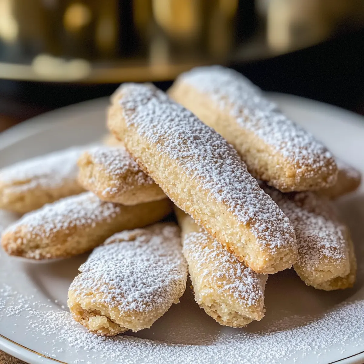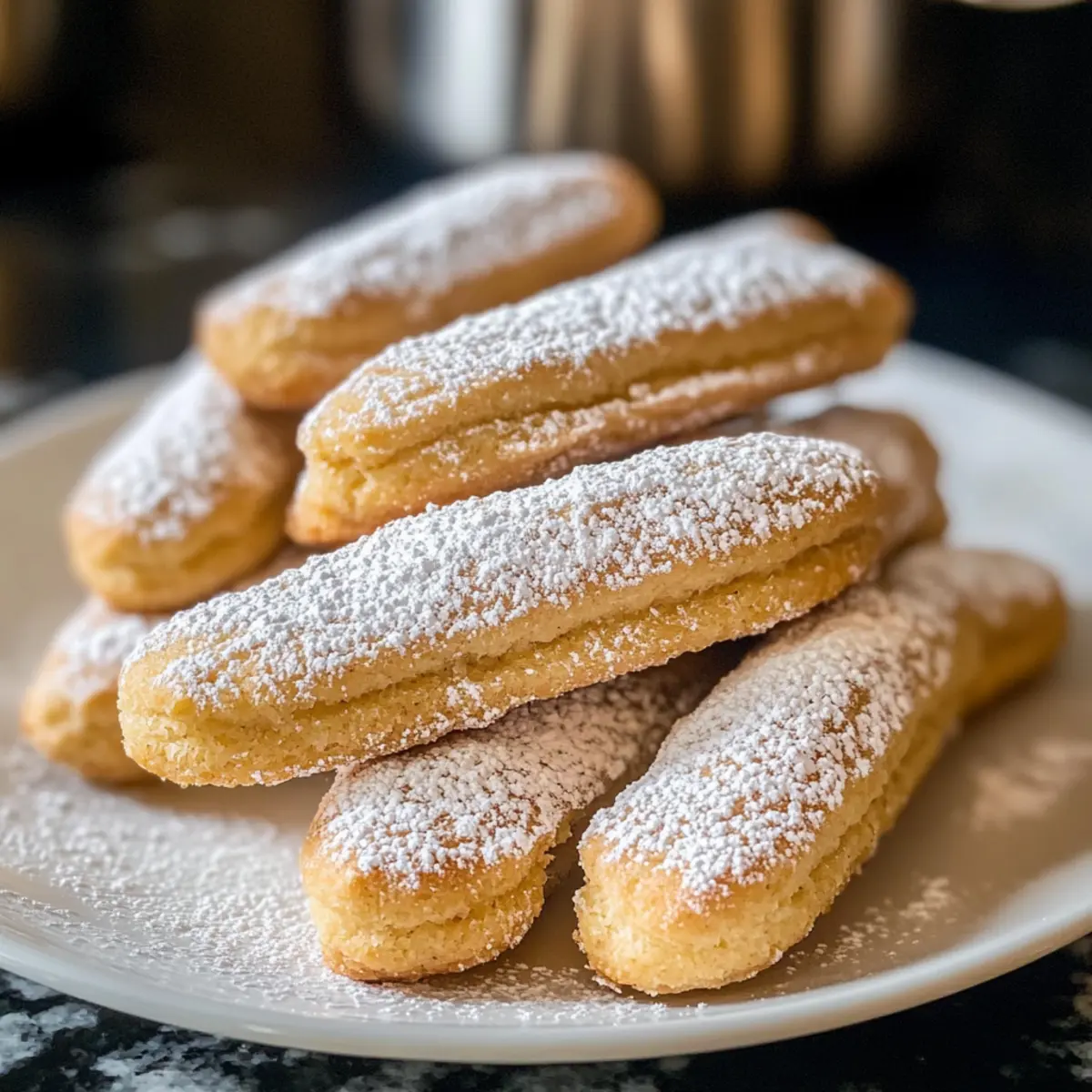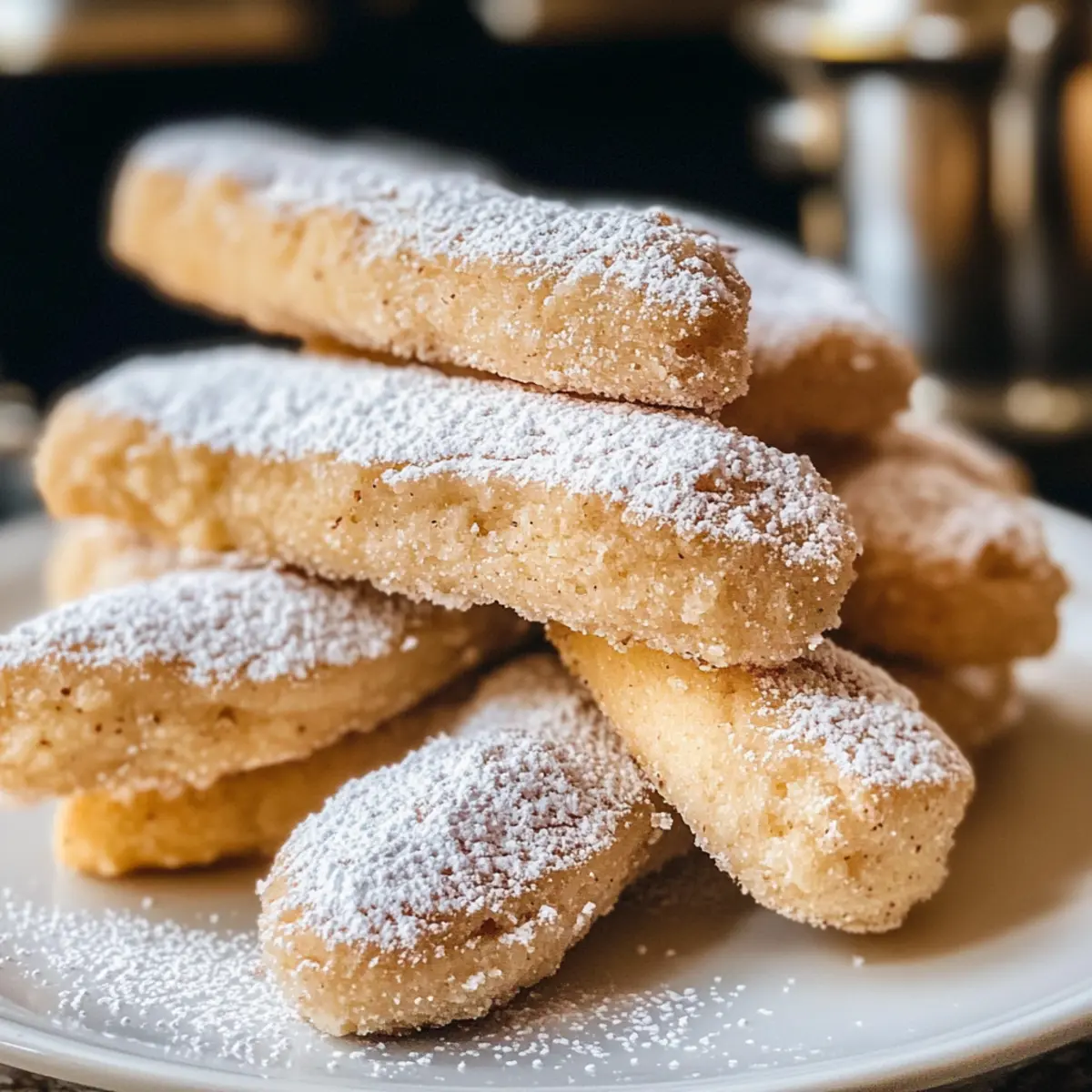 Hast du jemals bei einer italienischen Gelassenheit innegehalten, während die Sonne sanft auf ein kühles Dessert schien? Diese Leichtigkeit und Freude kannst du jetzt in deiner eigenen Küche erleben – mit meinen veganen Löffelbiskuits! Diese himmlischen kleinen Kekse sind nicht nur ganz ohne tierische Produkte, sondern auch einfach und schnell zuzubereiten. In weniger als einer Stunde hast du fluffige, süße Leckereien, die perfekt zu deinem Morgenkaffee passen oder als Basis für himmlische Schichtdesserts dienen können. Du wirst überrascht sein, wie ein paar einfache Pantry-Zutaten solche Freude bereiten können. Bist du bereit, mit mir in die Welt der veganen Köstlichkeiten einzutauchen? Warum sind vegane Löffelbiskuits so besonders? Einfachheit: Die Zubereitung dieser Löffelbiskuits erfordert nur grundlegende Backkenntnisse und einfache Zutaten, die du wahrscheinlich schon zu Hause hast. So kommst du rasch zu deinem köstlichen Ergebnis! Leichte Textur: Diese Kekse sind nicht nur leicht und luftig, sondern auch perfekt für deine nächsten Dessertschichtungen – probiere sie in einem veganen Tiramisu oder Trifle! Vielseitigkeit: Abgesehen von ihrer Verwendung in Desserts sind diese Kekse ideal zum Dippen in deinen Lieblingskaffee oder Tee. Gesundheitsbewusst: Mit nur etwa 94 Kalorien pro Keks bieten sie einen schmackhaften Genuss ohne schlechtes Gewissen. Kreative Variationen: Du kannst sie ganz nach deinem Geschmack anpassen und zum Beispiel mit Mandeln oder Zitronenextrakt experimentieren. Lass deiner Kreativität freien Lauf! Mach dich bereit, diese zeitlosen italienischen Köstlichkeiten zu genießen – du wirst es lieben! Vegane Löffelbiskuits Zutaten Für den Teig: Weizenmehl – sorgt für Struktur und Stabilität der Kekse. Achte auf eine genaue Messung, um dichte Kekse zu vermeiden – wiege oder benutze die „Löffel und abstreifen“-Methode. Maisstärke – verbessert die Textur und sorgt für ein leichteres Gebäck. Kann bei Bedarf durch Pfeilwurzstärke ersetzt werden. Backpulver – lässt die Kekse aufsteigen und sorgt für eine luftige Konsistenz. Natron – trägt zur Bräunung und zum Aufgehen der Kekse bei, wenn es mit der sauren Komponente im Rezept kombiniert wird. Salz – balanciert die Süße und hebt den Geschmack hervor. Vegane Butter – fügt Reichhaltigkeit und Feuchtigkeit hinzu. Kann mit Kokosöl ersetzt werden, jedoch kann die Textur variieren. Zucker (weißer Kristallzucker) – sorgt für die Süße der Kekse. Ein Teil wird beim Schlagen verwendet, um eine stabile Mischung zu erhalten. Vanilleextrakt – sorgt für ein tiefes Aroma. Reiner Vanilleextrakt wird für den besten Geschmack empfohlen. Aquafaba – wirkt als Eiweißersatz für die Lockerung und Struktur. Das Wasser aus Kichererbsendosen hat keinen erkennbaren Geschmack im Endprodukt. Sojamilch – feuchtet den Teig an. Jede pflanzliche Milch kann als Ersatz verwendet werden. Puderzucker – eine leichte Staubschicht fügt Süße hinzu und verziert die Kekse. Kann nach dem Backen wieder leicht bestäubt werden, falls nötig. Bereite dich auf diese köstlichen veganen Löffelbiskuits vor – sie bringen nicht nur Freude in deine Küche, sondern sind auch eine gesunde und schmackhafte Ergänzung zu deinem Kaffeegenuss! Schritt-für-Schritt-Anleitung für Vegane Löffelbiskuits Schritt 1: Ofen vorheizen und Backbleche vorbereiten Heize deinen Ofen auf 180 °C vor und lege zwei Backbleche mit Backpapier aus. Dadurch wird sichergestellt, dass die veganen Löffelbiskuits nicht anhaften und gleichmäßig backen. Achte darauf, dass der Ofen richtig vorgeheizt ist, um eine gute Aufgeh-Tendenz zu erzielen. Schritt 2: trockene Zutaten vermengen In einer Schüssel das Weizenmehl, die Maisstärke, das Backpulver, das Natron und das Salz gut vermischen. Verwende einen Schneebesen, um eine gleichmäßige Verteilung der Zutaten zu gewährleisten. Dieses Mehlgemisch sorgt für die Struktur und die luftige Textur deiner Löffelbiskuits. Schritt 3: vegane Butter und Zucker schaumig schlagen In einer Küchenmaschine die vegane Butter zusammen mit der Hälfte des Zuckers auf hoher Stufe schlagen, bis die Mischung hell und fluffig ist. Dies dauert etwa 3-5 Minuten. Diese Aufschlagtechnik wird die Keksmasse mit Luft füllen und dafür sorgen, dass die Löffelbiskuits locker und leicht werden. Schritt 4: Aquafaba aufschlagen In einer separaten Schüssel die Aquafaba mit einem Handmixer aufschlagen, bis sie schaumig und weiß ist. Füge nach und nach den restlichen Zucker hinzu und schlage weiter, bis die Masse dick und glänzend ist. Diese Aquafaba-Masse ersetzt die Eier und sorgt für die nötige Luftigkeit. Schritt 5: Zubereitung des Teigs Die aufgeschlagene Aquafaba vorsichtig in die schaumig geschlagene Butter-Zucker-Mischung falten, um die Luftigkeit zu bewahren. Sei sanft, damit der Teig nicht zusammenfällt und die Luftblasen erhalten bleiben. Dies ist entscheidend für die luftigen veganen Löffelbiskuits. Schritt 6: Trockene Zutaten und Flüssigkeit hinzufügen Siebe die trockenen Zutaten in die Teigmischung und falte sie behutsam ein, bis gerade so alles kombiniert ist. Füge dann die Sojamilch hinzu und rühre leicht, bis der Teig eine spritzbare Konsistenz erreicht. Dies ist der Moment, wo die Zutaten harmonieren und der Teig seine Form erhält. Schritt 7: Teig in Spritztüte füllen Fülle den Teig in eine Spritztüte mit einer großen runden Tülle (zum Beispiel Ateco 808). Spritze gleichmäßige Streifen von etwa 9 cm Länge und 2,5 cm Breite auf die Backbleche. Achte darauf, genügend Platz zwischen den Keksen zu lassen, damit sie beim Backen Platz haben. Schritt 8: Kekse bestäuben Bestäube die Formlinge leicht mit Puderzucker, bevor du sie in den Ofen schiebst. Diese Zuckerschicht sorgt für eine schöne süße Kruste während des Backens und gibt den veganen Löffelbiskuits ein ansprechendes Aussehen. Schritt 9: Backen Backe die veganen Löffelbiskuits im vorgeheizten Ofen für 