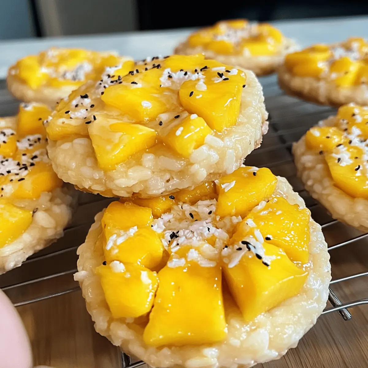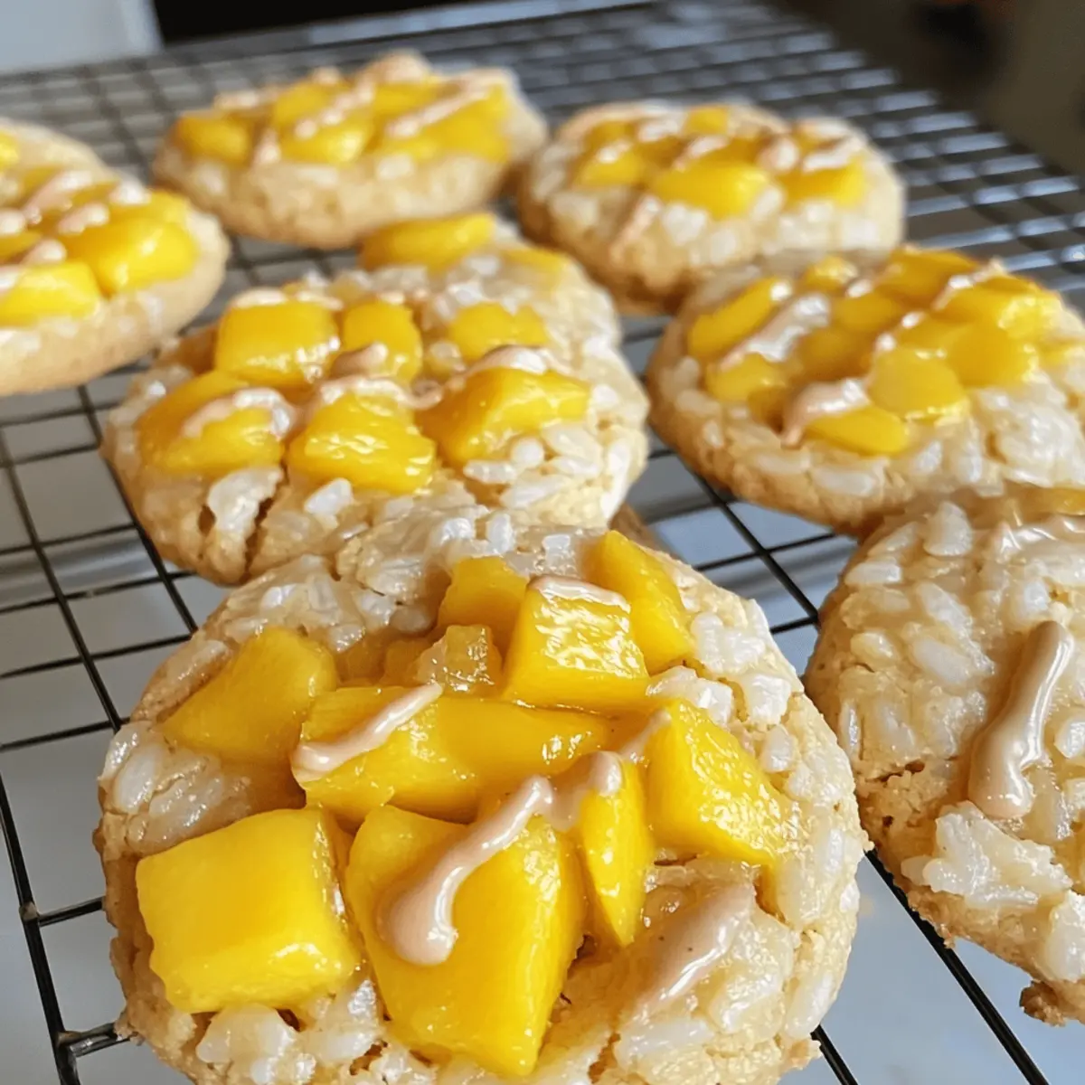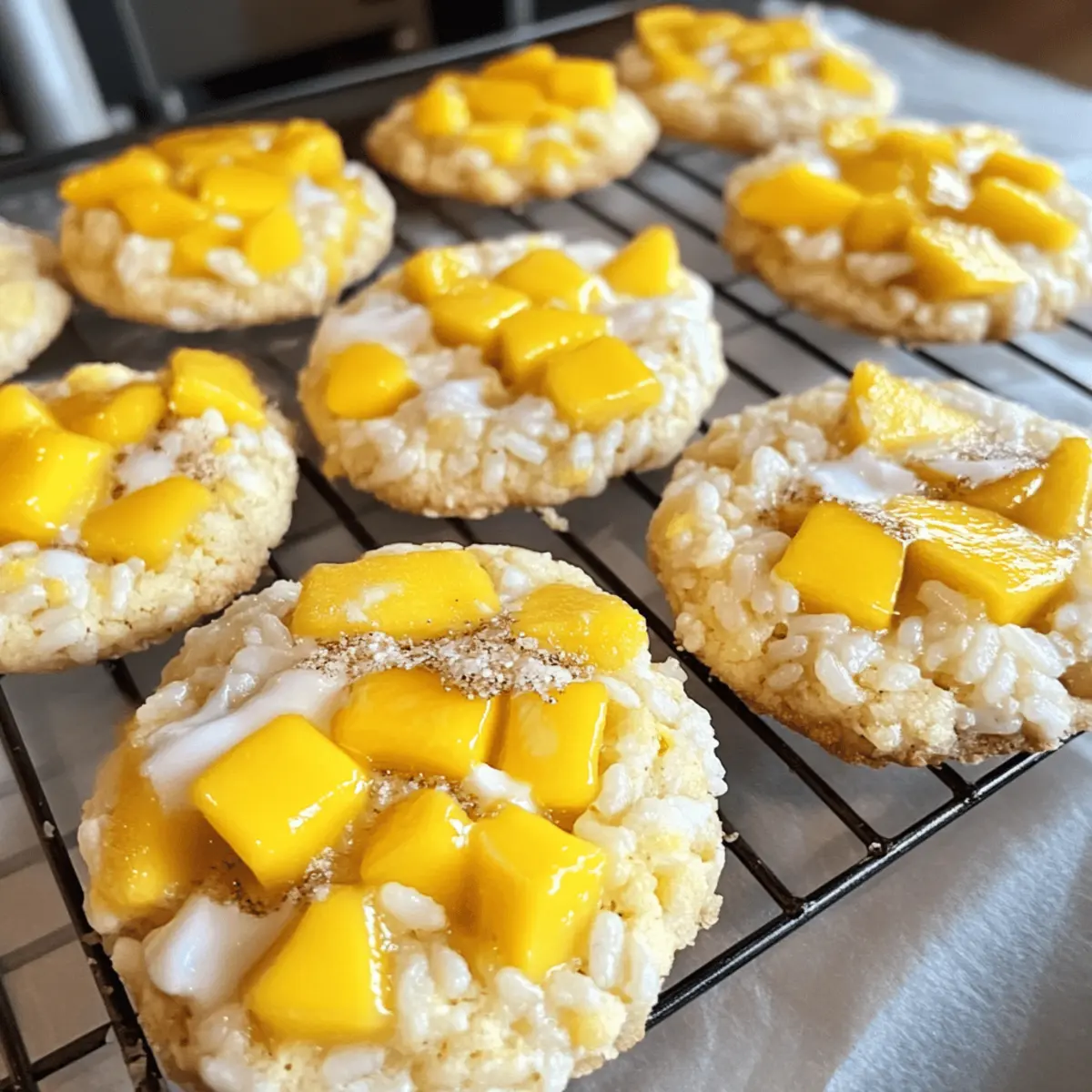Die ersten Schritte in der Küche sind oft eine spannende Entdeckungsreise, und diese veganen Mango Sticky Rice Cookies führen uns direkt in ein tropisches Paradies. In nur wenigen Schritten zaubern wir mit dieser glutenfreien Kreation den unwiderstehlichen Geschmack von traditionellem klebrigem Reis in die Form von köstlichen Keksen. Diese kleinen Leckerbissen sind nicht nur blitzschnell zubereitet, sondern auch ein wahres Fest für die Sinne – knusprig außen und herrlich chewy innen! Verfeinert mit saftigen Mangostücken und einem Hauch von Kokosmilch, bieten sie die perfekte Alternative zu schnellem Fast Food. Warum die Vorfreude nicht gleich wecken und beim Ausprobieren den Sommer in jede Küche zaubern? Warum werden Sie dieses Rezept lieben? Einfachheit: Die Zubereitung ist kinderleicht und erfordert keine speziellen Kochkenntnisse – ideal für jeden, der frische, hausgemachte Leckereien liebt. Tropischer Geschmack: Der reiche, fruchtige Mix aus Mango und Kokosmilch sorgt für ein Geschmackserlebnis wie in den Tropen. Vegan und Glutenfrei: Diese Kekse sind nicht nur für Veganer geeignet, sondern auch für alle, die glutenfrei genießen möchten. Vielseitigkeit: Variieren Sie die Früchte und fügen Sie zum Beispiel Ananas hinzu, um noch mehr tropisches Flair zu erhalten. Schnell zubereitet: In nur 30 Minuten können Sie eine köstliche, gesunde Snack-Option auf den Tisch bringen. Nutzen Sie auch die Gelegenheit, mit Pistazien Schokoladenkeksen oder Zitronen Kokos Cheesecake Keksen neue Geschmackserlebnisse zu entdecken! Vegane Mango Sticky Rice Kekse Zutaten Für den Teig Sticky Rice Flour – sorgt für Struktur und die chewy Textur; verwenden Sie KODA FARM’s Mochiko für die besten Ergebnisse. Kaltes Wasser – hydratisiert das Mehl und schafft eine teigartige Konsistenz; teilen Sie es in zwei Tassen wie im Rezept angegeben. Neutrales Öl oder Olivenöl – verhindert das Anhaften am Backpapier und fügt Feuchtigkeit hinzu; vermeiden Sie starke Aromen; andere neutrale Öle sind auch geeignet. Backpulver – sorgt für das Aufgehen der Kekse; essentiell für die Textur. Zucker – süßt und trägt zur Knusprigkeit bei; passen Sie die Menge nach Geschmack an; mehr Zucker ergibt süßere Kekse. Würfelig geschnittene Mangos – bringt Geschmack und Feuchtigkeit; frische, reife Mangos sind am besten. Gelbe Lebensmittelfarbe – optional für die Farboptimierung; verwendet ein paar Tropfen für einen leuchtend gelben Farbton. Miso (optional) – ein Esslöffel kann eine herzhafte Tiefe des Geschmacks hinzufügen; ersetzen Sie es durch eine Prise Salz, wenn gewünscht. Für den Topping Süße Kokosmilch – für einen extra Hauch von Süße und Cremigkeit; über die warmen Kekse träufeln für das perfekte Finish. Geröstete Sesamkörner – für zusätzlichen Crunch und einen nussigen Geschmack; über die Kekse streuen vor dem Servieren. Diese Zutaten kombinieren sich harmonisch, um die köstlichen und einzigartigen veganen Mango Sticky Rice Kekse zu kreieren. Schritt-für-Schritt-Anleitungen für vegane Mango Sticky Rice Kekse Schritt 1: Ofen vorheizen und Backblech vorbereiten Heizen Sie den Ofen auf 220 °C vor und legen Sie ein Backblech mit Backpapier aus. Achten Sie darauf, dass das Backpapier glatt liegt, um ein Anhaften der Kekse zu verhindern. Dies sorgt dafür, dass Ihre veganen Mango Sticky Rice Kekse gleichmäßig backen und eine schöne goldbraune Farbe erhalten. Schritt 2: Zutaten mischen In einer großen Schüssel das Klebreismehl, 1 Tasse kaltes Wasser, das Öl, das Backpulver und den Zucker vermengen. Rühren Sie die Mischung kräftig um, bis eine glatte, teigartige Konsistenz erreicht ist, die an Kartoffelbrei erinnert. Dies bildet die Basis Ihrer köstlichen Kekse und sorgt für die gewünschte chewy Textur. Schritt 3: Teig aufteilen Teilen Sie die Hälfte des Teigs in eine separate Schüssel und fügen Sie einige Tropfen gelbe Lebensmittelfarbe sowie die gewürfelten Mangos hinzu. Mischen Sie gründlich, bis die Farbe gleichmäßig verteilt ist und die fruchtigen Stücke durch den Teig sichtbar sind. Diese Mischung bringt Farbe und intensiven Geschmack in Ihre veganen Mango Sticky Rice Kekse. Schritt 4: Kekse formen Lassen Sie mit einem Löffel Portionen des Teigs auf das Backblech fallen, und verwenden Sie leicht feuchte Finger, um sie in runde Formen zu bringen. Achten Sie darauf, etwa 2,5 cm Abstand zwischen den Keksen zu lassen, da sie beim Backen leicht auseinanderlaufen. Dies gewährleistet, dass die Kekse die richtige Form beibehalten und gleichmäßig garen. Schritt 5: Backen Schieben Sie das Backblech in den vorgeheizten Ofen und backen Sie die Kekse für 13-14 Minuten. Achten Sie darauf, dass die Oberseite fest ist, die Ränder goldbraun erscheinen und die Unterseite leicht gebräunt ist. Diese Indikatoren zeigen an, dass Ihre veganen Mango Sticky Rice Kekse perfekt gebacken sind. Schritt 6: Abkühlen Nehmen Sie das Backblech aus dem Ofen und überführen Sie die Kekse sofort auf ein Kuchengitter. Dadurch bleibt die Außenkante knusprig, während die Innenstruktur chewy bleibt. Lassen Sie die Kekse ein wenig abkühlen, bevor Sie sie genießen oder mit süßer Kokosmilch servieren. Was passt gut zu veganen Mango Sticky Rice Keksen? Die perfekte Ergänzung zu Ihren veganen Mango Sticky Rice Keksen schafft ein außergewöhnliches Geschmackserlebnis, das Ihre Sinne verzaubert. Süße Kokosmilch: Ein Spritzer darüber bringt die tropische Süße der Kekse zur Geltung und fügt eine cremige Textur hinzu. Diese Kombination ist der Inbegriff von Genuss! Geröstete Sesamkörner: Der nussige Geschmack und der knusprige Biss dieser Körner ergänzen die zarte Konsistenz der Kekse. Streuen Sie sie großzügig darüber für zusätzlichen Crunch. Tropische Fruchtsalate: Eine Mischung aus Ananas, Kiwi und Papaya bringt frische und spritzige Aromen ins Spiel. Diese fruchtige Ergänzung eignet sich hervorragend für einen erfrischenden Snack. Minze und Limetten: