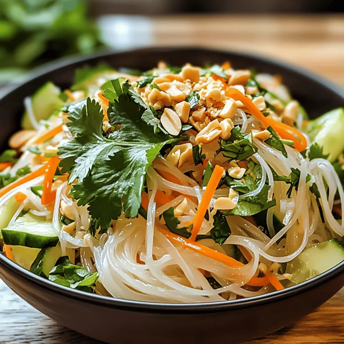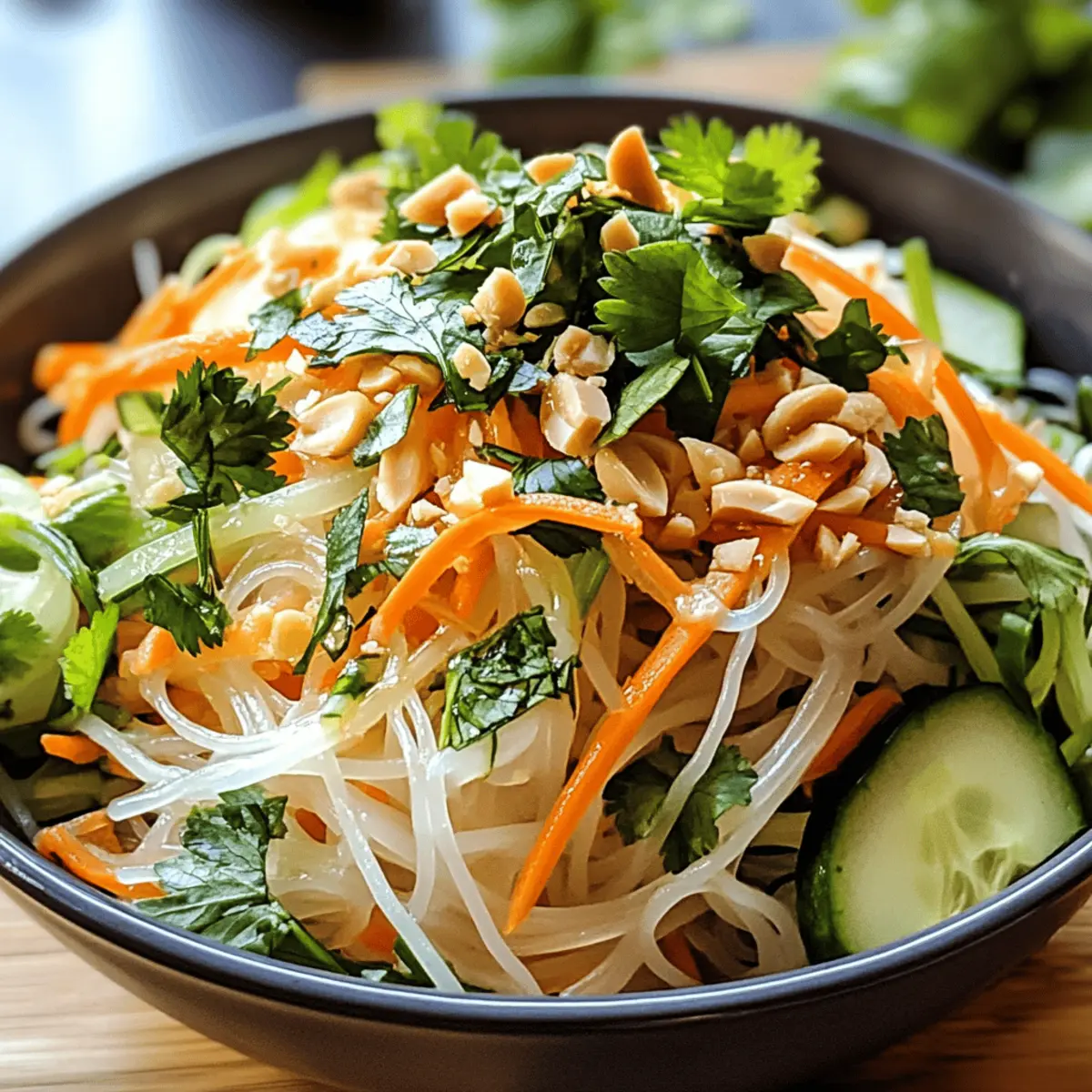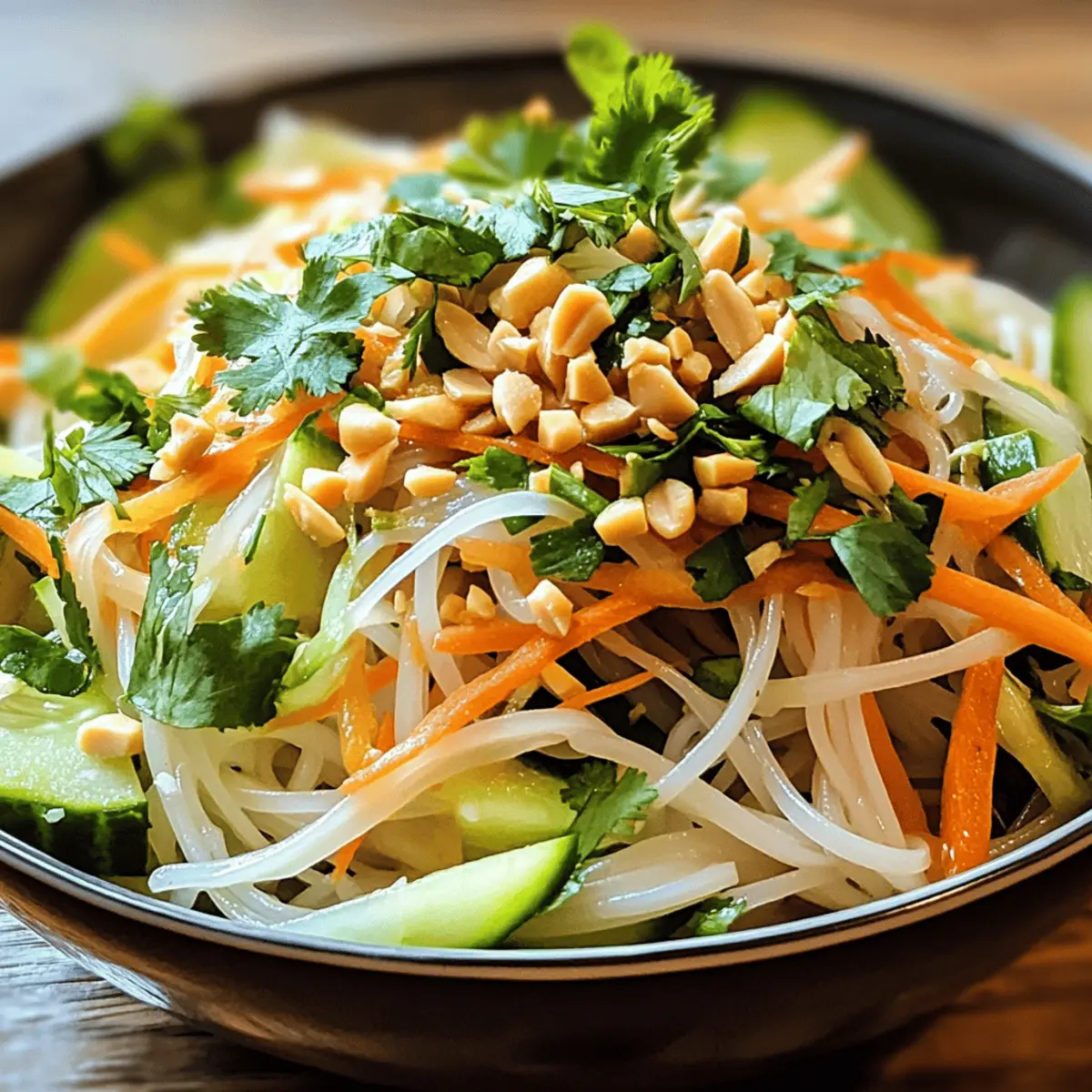 Die Zubereitung einer köstlichen vietnamesischen Nudel-Salat mit einem spritzigen Dressing kann tatsächlich wie ein kleiner Triumph erscheinen. Während ich in der Küche stehe und die bunten Zutaten vor mir ausbreite, fühle ich mich sofort inspiriert. Diese erfrischende Kombination aus zarten Reisnudeln, knackigem Gemüse und duftenden Kräutern ist nicht nur eine Freude für die Geschmacksknospen, sondern auch ein schnelles, gesundes Essen, das perfekt für warme Tage ist. Ob als leichte Hauptmahlzeit oder als schmackhafte Beilage – dieser Salat ist vielseitig und begeistert garantiert jeden. Lust auf etwas mehr? Lass uns gemeinsam die Geheimnisse dieser erfrischenden Kreation entdecken! Warum ist dieser Salat einzigartig? Frische Zutaten: Der vietnamesische Nudel-Salat verwendet knackiges Gemüse und duftende Kräuter, die für ein unvergleichliches Geschmackserlebnis sorgen. Einfachheit: Die Zubereitung ist unkompliziert, ideal für Kochanfänger oder vielbeschäftigte Feinschmecker. Vielseitigkeit: Dieses Rezept kann leicht variiert werden – füge gegrilltes Hühnchen oder Tofu hinzu, um es sättigender zu machen. Gesundheitlich: Mit frischen Zutaten ist dieser Salat eine kalorienarme Option, die voller Vitamine steckt. Perfekt für jede Gelegenheit: Egal ob als leichtes Mittagessen oder als Beilage zu Grillabenden – dieser Salat wird immer zum Star deiner Tischrunde! Probiere auch unsere Nudeln Mit Sojasauce für einen weiteren frischen Genuss! Zutaten für den vietnamesischen Nudel-Salat • Bei der Zubereitung dieses köstlichen Salats kommen frische und gesunde Zutaten zum Einsatz. Reisnudeln – Die Basis des Salats; verwenden Sie flache, breite Reisnudeln für die beste Textur. Glutenfreie Nudeln sind ebenfalls eine gute Alternative. Karotten – Sie sorgen für einen knackigen Biss und natürliche Süße; am besten gerieben oder in Juliennestreifen geschnitten. Gurken – Für ein erfrischendes und knackiges Erlebnis; verwenden Sie englische Gurken, um weniger Kerne zu haben. Minze – Bringt eine helle, aromatische Note; kann durch Basilikum ersetzt werden, sollte dies nicht verfügbar sein. Koriander – Fügt einen frischen, krautigen Geschmack hinzu, der das Dressing ergänzt; kann weggelassen werden, wenn Sie keine starken Kräuteraromen mögen. Geröstete Erdnüsse – Ihre Nussigkeit und der crunchy Effekt erhöhen den Genuss; können durch Sesamsamen ersetzt oder für eine nussfreie Variante ganz weggelassen werden. Limettensaft – Unverzichtbar für die Würze im Dressing; frisch gepresster Limettensaft sorgt für den besten Geschmack. Fischsauce – Fügt tiefen Umami-Geschmack hinzu; verwenden Sie Sojasauce als vegetarische Alternative. Knoblauch – Für eine herzliche Tiefe, frischer gehackter Knoblauch eignet sich am besten. Chili – Sorgt für eine pikante und spritzige Note; nach Geschmack anpassen – verwenden Sie rote Paprikaflocken, wenn frischer Chili nicht verfügbar ist. Erleben Sie mit diesem vietnamesischen Nudel-Salat das spritzige Dressing und die Mischung aus frischen Zutaten, die Ihrer Mahlzeit das gewisse Etwas verleihen! Schritt-für-Schritt-Anleitung für vietnamesischen Nudel-Salat mit würzigem Dressing Step 1: Reisnudeln kochen Kochen Sie die Reisnudeln nach den Anweisungen auf der Verpackung in einem großen Topf mit kochendem Wasser. Achten Sie darauf, die Nudeln nicht zu überkochen; sie sollten bissfest sein. Nach dem Kochen abgießen und mit kaltem Wasser abspülen, um den Garprozess zu stoppen. Lassen Sie die Nudeln gut abtropfen und stellen Sie sie beiseite. Step 2: Gemüse und Kräuter vorbereiten In einer großen Schüssel die geriebenen Karotten, geschnittenen Gurken, frische Minze und Koriander sowie die gerösteten Erdnüsse vermengen. Diese Kombination aus knackigem Gemüse und aromatischen Kräutern wird die Basis für den vietnamesischen Nudel-Salat bilden. Mischen Sie die Zutaten gründlich, damit sich die Aromen gut entfalten können. Step 3: Dressing zubereiten In einer separaten Schüssel alle Zutaten für das Dressing vermischen. Dazu gehören frisch gepresster Limettensaft, Fischsauce, gehackter Knoblauch und gehackte Chili. Verquirlen Sie die Mischung gut, bis sie homogen ist. Das Dressing sollte spritzig und würzig sein, um perfekt zu den Aromen des Nudel-Salates zu passen. Step 4: Nudeln und Gemüse kombinieren Jetzt mischen Sie die abgekühlten Reisnudeln mit der Gemüsemischung in der großen Schüssel. Gießen Sie das vorbereitete Dressing über die Nudeln und das Gemüse. Mit einem großen Löffel beruflich mischen, damit alles gleichmäßig mariniert wird und die Nudeln nicht brechen. Step 5: Salat servieren oder kühlen Servieren Sie den vietnamesischen Nudel-Salat sofort für ein frisches Erlebnis oder decken Sie die Schüssel ab und lassen Sie ihn 30 Minuten im Kühlschrank ziehen, damit die Aromen sich intensiver entfalten. So genießen Sie einen erfrischenden und geschmackvollen Salat, der ideal für warme Tage ist. Was passt gut zum vietnamesischen Nudel-Salat mit würzigem Dressing? Genießen Sie die perfekte Kombination zu Ihrem leichten und erfrischenden Salat, um ein rundum zufriedenstellendes Essen zu kreieren. Cremiger Avocado-Salat: Der sanfte Geschmack von Avocado bietet einen wunderbaren Kontrast zur Spritzigkeit des Nudel-Salats und verleiht Ihnen eine cremige Textur. Gegrilltes Hühnchen: Zartes, saftiges Hühnchen bietet eine herzhaft-würzige Ergänzung, die den Salat zu einer vollwertigen Mahlzeit macht. Kombinieren Sie das Hühnchen mit einem Hauch von Limettensaft für zusätzliche Frische. Vietnamese Spring Rolls: Diese frischen Frühlingsrollen mit ähnlichen Zutaten wie im Salat sind eine großartige, leichte Ergänzung und liefern zusätzlichen Knack und Geschmack. Sie können auch mit einer Erdnusssauce serviert werden. Minze-Limonade: Ein erfrischendes Getränk, das die Aromen des Salats ergänzt. Die Süße und Säure der Limonade harmonieren wunderbar mit dem würzigen Dr