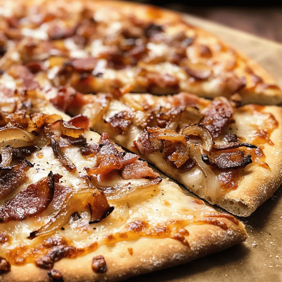 Einfachheit, die begeistert: Die Zubereitung dieser Vollkorn-Bacon-Pizza ist kinderleicht und benötigt keine speziellen Kochkünste. Süße Aromen: Die karamellisierten Zwiebeln sorgen für eine süße Note, die wunderbar mit dem salzigen Bacon harmoniert. Nahrhaft und lecker: Vollkornmehl verleiht dem Boden eine gesunde Note und wertvolle Nährstoffe. Vielfältige Variationen: Experimentieren Sie mit verschiedenen Käsesorten oder fügen Sie frische Kräuter hinzu, um das Rezept nach Ihrem Geschmack zu gestalten. Perfekt für jede Gelegenheit: Ob als Familienessen oder geselliger Abend mit Freunden – diese Pizza ist ein echter Publikumsliebling, der alle begeistert! Wenn Sie noch mehr über kreative Pizzakreationen erfahren möchten, probieren Sie unser Rezept für Air Fryer Pizza oder entdecken Sie den perfekten Teig mit Bobby Flay Pizza.