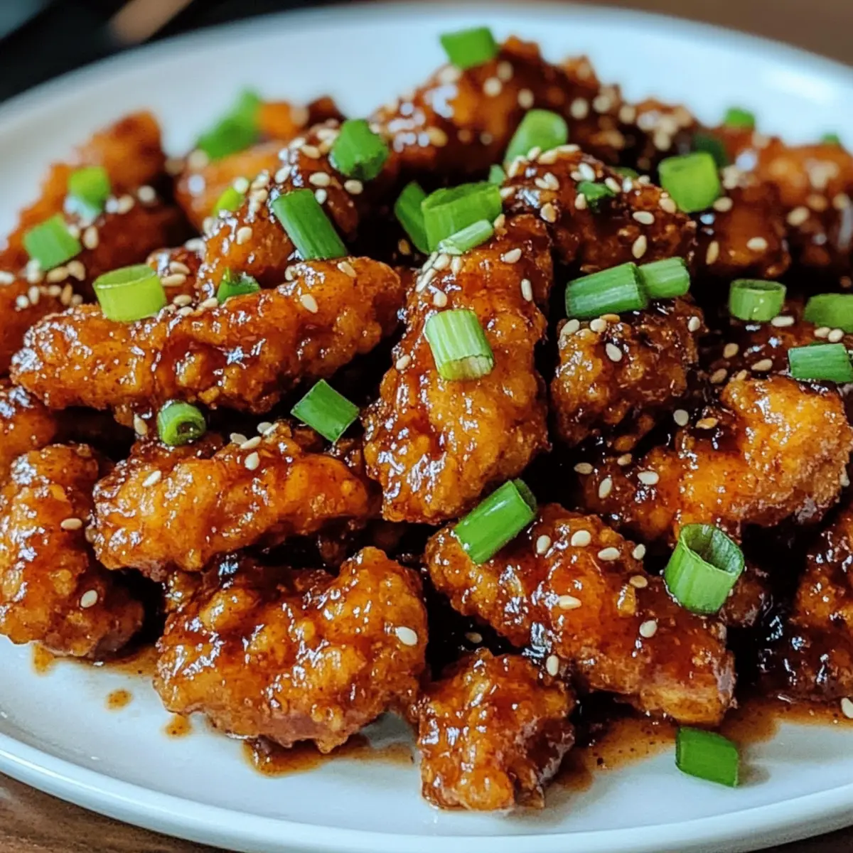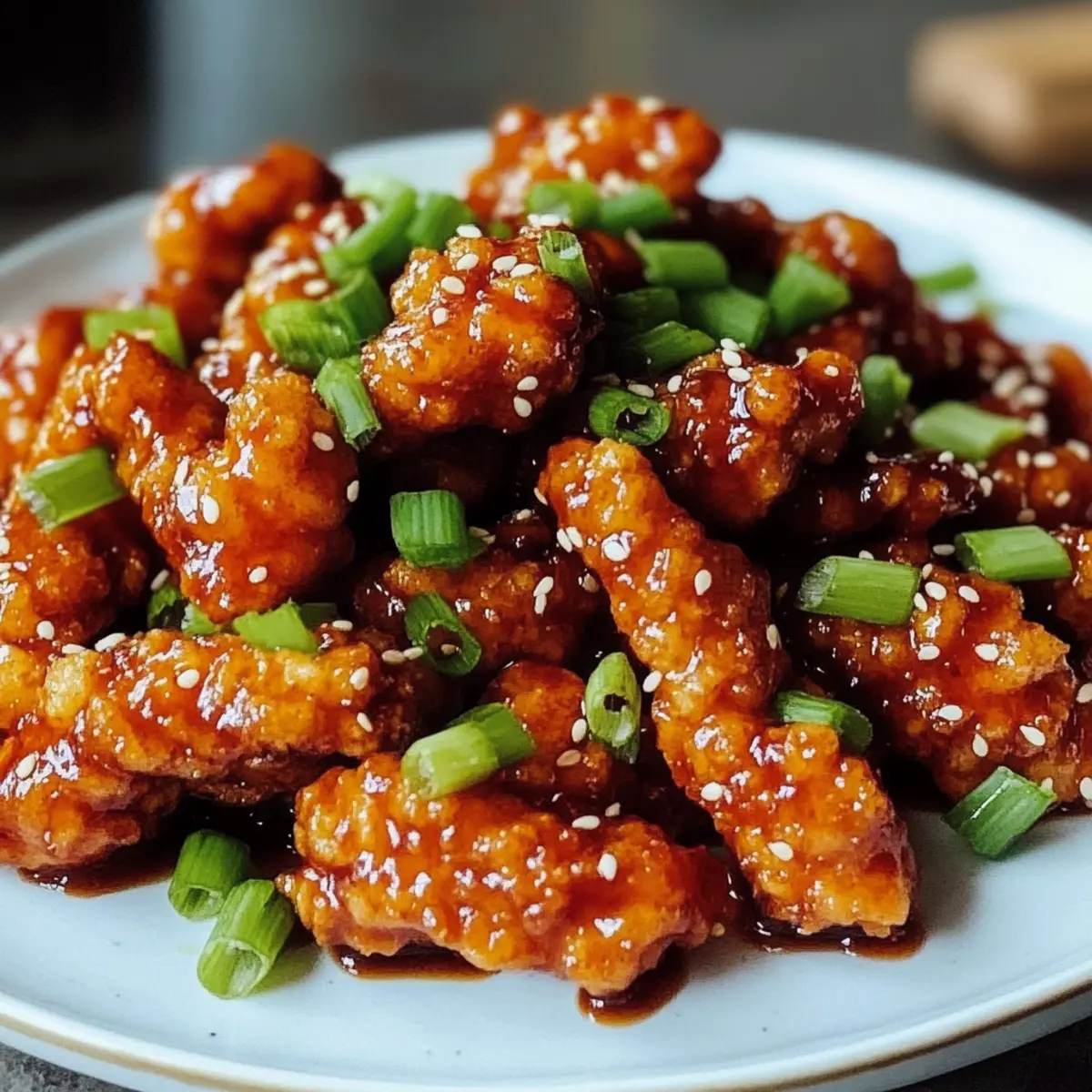 Wenn der Hunger auf etwas Würziges und Ungewöhnliches überhandnimmt, fällt meine Wahl oft auf Würziges Drach Hähnchen. Dieses Gericht ist mehr als nur ein Rezept; es ist eine kulinarische Reise in die Welt der Indo-Chinesischen Küche, die mit knusprigem Hähnchen und einer herrlich süß-scharfen Sauce inspiriert ist. Besonders an hektischen Abenden ist es ein wahrer Lebensretter – in nur 30 Minuten zauberst du ein köstliches Mahl, das sowohl Familien als auch Freunde begeistert. Egal, ob du es über Reis, Nudeln oder frischen Salat servierst, es liefert die perfekte Balance zwischen Einfachheit und Geschmack. Bist du bereit, deine Geschmacksknospen mit einem Hauch von Abenteuer zu wecken? Warum solltest du Drach Hähnchen lieben? Einfachheit: Die Zubereitung ist unkompliziert und benötigt keine speziellen Kochfähigkeiten, sodass du schnell in die Indo-Chinesische Küche eintauchen kannst. Würzige Geschmacksexplosion: Die Kombination aus süßen und scharfen Aromen verleiht diesem Gericht eine unverwechselbare Tiefe, die sowohl Gaumenfreuden als auch Abenteuerlust weckt. Vielfältige Variationen: Du kannst dieses Rezept anbaden und mit Tofu oder Tempeh als vegetarische Option zubereiten, während glutenfreie Sojasauce auch Allergikern gerecht wird. Schnell und praktisch: In nur 30 Minuten genießt du eine köstliche Mahlzeit, die perfekt für stressige Abende ist oder als Meal Prep für die Woche dienen kann. Crowd-Pleaser: Egal, ob für die Familie oder Freunde, dieses Gericht ist ein Hit und wird sicher für gesellige Stimmung am Tisch sorgen. Mach dich bereit, in die Welt des Würzigen Drach Hähnchens einzutauchen, das nicht nur schnell, sondern auch überaus lecker ist! Würziges Drach Hähnchen Zutaten Für die Marinade Hähnchenbrust oder -schenkel – Hauptproteinquelle; Schenkel sind saftiger und geschmackvoller. Eiklar – Hilft, die Marinade am Hähnchen haften zu lassen; kann für eine vegane Version weggelassen werden. Maisstärke – Sorgt für die knusprige Textur; unverzichtbar zum Frittieren des Hähnchens. Salz – Essentielles Gewürz zur Geschmacksverstärkung. Schwarzer Pfeffer – Fügt Wärme hinzu; nach Geschmack anpassen. Für das Frittieren Pflanzenöl – Zum Frittieren verwenden; wähle Öle mit hohem Rauchpunkt wie Raps- oder Erdnussöl. Sesamöl – Verleiht einen nussigen Geschmack; optional, aber empfehlenswert. Für die Sauce Knoblauch (gehackt) – Kernaroma der Sauce; unverzichtbar für den Geschmack. Ingwer (gehackt) – Fügt Wärme und Tiefe hinzu. Getrocknete rote Chilis oder zerstoßene rote Paprika – Sorgt für Schärfe; je nach Vorliebe anpassen. Tomatenketchup – Balanciert die Schärfe mit Süße; kann durch eine hausgemachte Sauce ersetzt werden. Sojasauce – Fügt Umami-Geschmack hinzu; verwende glutenfreie Alternativen (wie Tamari) für allergenfreundliche Versionen. Chili-Knoblauch-Sauce – Verleiht weitere Tiefe und Schärfe. Essig – Rundet die Reichhaltigkeit der Sauce mit einer säuerlichen Note ab. Zucker oder Honig – Süßt die Sauce; je nach Geschmack anpassen. Wasser – Zum Verdünnen der Sauce nach Bedarf. Optionales Garnieren Frühlingszwiebeln (in Scheiben geschnitten) – Für zusätzlichen Geschmack und Frische. Geröstete Sesamkörner – Bringen Knusprigkeit und Aroma. Frittierte Zwiebelstreifen oder Paprika – Für extra Geschmack und Crunch. Mit dem Rezept für das Würzige Drach Hähnchen bereitest du ein Gericht voller Geschmack und Texturen zu, das jeden begeistert! Schritt-für-Schritt-Anleitung für Würziges Drach Hähnchen Step 1: Hähnchen marinieren Schneide die Hähnchenbrust oder -schenkel in dünne Stücke und vermische sie mit Eiklar, Maisstärke, Salz und schwarzem Pfeffer in einer Schüssel. Lasse die Marinade für 10-15 Minuten einziehen, damit die Aromen gut durchdringen. Währenddessen kannst du die weiteren Zutaten vorbereiten und die Arbeitsfläche für das Frittieren bereitlegen. Step 2: Hähnchen frittieren Erhitze in einer großen Pfanne genügend Pflanzenöl, um den Boden leicht zu bedecken, bei mittlerer bis hoher Hitze. Frittiere die marinierten Hähnchenstücke in zwei bis drei Portionen für etwa 4-6 Minuten, bis sie goldbraun und knusprig sind. Lasse sie anschließend auf Küchenpapier abtropfen, um überschüssiges Fett zu entfernen und die Knusprigkeit zu bewahren. Step 3: Sauce zubereiten In derselben Pfanne, in der du das Hähnchen frittiert hast, reduziere die Hitze auf mittel. Gib etwas Sesamöl hinzu und sauté den gehackten Knoblauch, Ingwer und die getrockneten roten Chilis für 1-2 Minuten, bis sie aromatisch sind. Achte darauf, dass der Knoblauch nicht verbrennt, da dies den Geschmack der Sauce beeinflusst. Step 4: Sauce verfeinern Füge jetzt Ketchup, Sojasauce, Chili-Knoblauch-Sauce, Essig und Zucker in die Pfanne hinzu. Rühre alles gut um und lasse die Mischung für 2-3 Minuten köcheln, bis sie leicht eindickt. Wenn die Sauce zu dick ist, kannst du ein wenig Wasser hinzufügen, um die Konsistenz anzupassen. Step 5: Hähnchen mit Sauce kombinieren Gib die knusprigen Hähnchenstücke in die Pfanne mit der Sauce und wende sie vorsichtig, damit jedes Stück gleichmäßig bedeckt wird. Lasse alles für eine weitere Minute bei niedriger Hitze köcheln, damit das Hähnchen die Aromen der Sauce aufnehmen kann und schön glänzt. Step 6: Anrichten und servieren Bestreue das fertige Würzige Drach Hähnchen mit geschnittenen Frühlingszwiebeln und gerösteten Sesamkörnern für einen zusätzlichen Crunch und Geschmack. Serviere das Gericht sofort heiß, zum Beispiel über gedämpftem Reis oder in frischen Salatblättern, um das volle Geschmackserlebnis zu genießen. Was passt zu Würzigem Drach Hähnchen? Verwandle dein Würziges Drach Hähnchen in eine kulinarische Festlichkeit mit köstlichen Beilagen, die die Aromen perfekt ergänzen. Gedämpfter Reis: Ein klassischer Begleiter, der die Würze des Drach Hähnchens aufnimmt und die Aromen harmonisch ausbalanciert. 