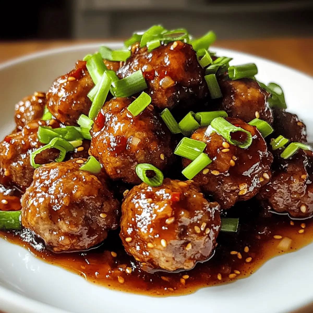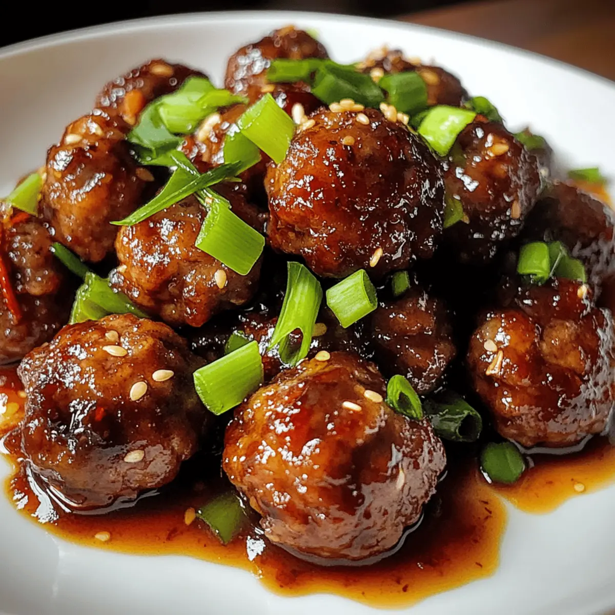Wenn ich an abendliche Kochabenteuer denke, kommen mir oft heitere Bilder von dampfenden Pfannen und dem fröhlichen Geräusch von Zutaten, die zusammenkommen, um etwas Außergewöhnliches zu kreieren. Eine meiner neuesten Entdeckungen sind die würzigen asiatischen Mongolischen Fleischbällchen. Diese sind nicht nur leicht zuzubereiten, sondern auch perfekt für ein schnelles Abendessen, das Eindruck macht. Mit einer Kombination aus herzhaftem Rinderhack, aromatischem Ingwer, und Knoblauch, umhüllt von einer süß-würzigen Sauce, bietet dieses Rezept einen wahren Gaumenschmaus, der unbedingt ausprobiert werden muss. Zudem sind diese köstlichen Fleischbällchen auch glutenfrei und eignen sich hervorragend, um sie mit Freunden oder Familie zu teilen. Bereit, in die aufregende Welt der Mongolischen Fleischbällchen einzutauchen? Lass uns gemeinsam kochen! Warum werden Sie diese Fleischbällchen lieben? Schnelligkeit: In nur 20 Minuten zaubern Sie ein beeindruckendes Gericht auf den Tisch, ideal für hektische Wochentage. Vielseitigkeit: Egal ob als Hauptgericht oder Snack, sie passen perfekt in jede Mahlzeit oder Feier. Aromatischer Geschmack: Die Kombination von Ingwer und Knoblauch bringt die Aromen zum Strahlen, während die süß-würzige Sauce jeden Bissen zum Erlebnis macht. Einfache Zubereitung: Mit nur wenigen Zutaten gelingt der Genuss mühelos, und Anpassungen sind kinderleicht – probieren Sie auch unsere Pistazien Traum Kekse, um etwas Süßes zu ergänzen! Familienfreundlich: Diese Fleischbällchen sind ein Hit bei Groß und Klein, ideal, um die ganze Familie zu erfreuen. Glutenfrei: Mit einfachen Substitutionen bleiben Ihre Gäste glücklich, egal welche diätetischen Einschränkungen vorliegen. Mongolische Fleischbällchen Zutaten Für die Fleischbällchen • Rinderhack – bildet die saftige Basis der Fleischbällchen und sorgt für eine zarte Textur. • Semmelbrösel – helfen, die Fleischbällchen zusammenzuhalten und sorgen für zusätzliche Feuchtigkeit; verwenden Sie glutenfreie Semmelbrösel für eine glutenfreie Variante. • Frühlingszwiebeln – verleihen Frische und Farbe; die weiße Hälfte wird in die Mischung gegeben, die grüne Hälfte dient als Garnitur. • Knoblauch – intensiviert den Geschmack; frischer, gehackter Knoblauch ist am besten. • Ingwer – bringt eine aromatische Note; frischer Ingwer bietet ein lebendigeres Aroma als Pulver. • Ei – wirkt als Bindemittel; ein Leinsamen-Ei kann für eine vegane Option verwendet werden. • Sojasauce – fügt Umami und salzige Tiefe hinzu; für eine glutenfreie Option verwenden Sie Tamari. • Hoisinsauce – sorgt für die süß-würzige Note; reduzieren Sie die Menge für einen weniger süßen Geschmack. • Sesamöl – bringt einen nussigen Geschmack; kann weggelassen oder durch neutrales Öl ersetzt werden. • Salz & Pfeffer – zum Würzen nach Geschmack; verwenden Sie Meersalz für einen reineren Geschmack. • Rote Pfefferflocken – bieten kontrollierte Schärfe, je nach Vorliebe anpassbar; frische Chili können eine andere Schärfe-vorzeigebrin geben. Für die Sauce • Sojasauce – wichtig für den Geschmack des Saucen; wie oben erwähnt. • Brauner Zucker – balanciert die Aromen von süß und würzig; verwenden Sie Kokoszucker für eine niedrigere Blutzuckerreaktion. • Maisstärke – verdickt die Sauce für eine glatte Konsistenz; mit Wasser verdünnen, um Klumpen zu vermeiden. • Zusätzlicher Ingwer & Knoblauch – intensiviert den Geschmack der Sauce. • Sesamöl & Rote Pfefferflocken – bringen Tiefe und Wärme in die Sauce. Step-by-Step Instructions for Würzige mongolische Fleischbällchen Step 1: Ofen vorheizen Heizen Sie den Ofen auf 200 °C (400 °F) vor. Legen Sie ein Backblech mit Backpapier aus, um ein Anhaften der Fleischbällchen zu verhindern. Dies sorgt dafür, dass die würzigen mongolischen Fleischbällchen beim Backen gleichmäßig garen und schön goldbraun werden. Step 2: Fleischbällchen vorbereiten In einer großen Schüssel kombinieren Sie das Rinderhack, die Semmelbrösel, die gehackten Frühlingszwiebeln, den Knoblauch, den Ingwer, das Ei, die Sojasauce, die Hoisinsauce, das Sesamöl, Salz, Pfeffer und die roten Pfefferflocken. Mischen Sie alles gründlich, bis eine homogene Masse entsteht. Achten Sie darauf, nicht zu fest zu drücken, um die Zartheit der fleischigen Mischung zu bewahren. Step 3: Fleischbällchen formen Formen Sie aus der Mischung kleine Bällchen von etwa einem Zoll Durchmesser und legen Sie diese gleichmäßig auf das vorbereitete Backblech. Lassen Sie dabei ausreichend Platz zwischen den einzelnen Fleischbällchen, damit sie beim Backen gleichmäßig garen und nicht aneinanderkleben. Step 4: Fleischbällchen backen Backen Sie die Fleischbällchen im vorgeheizten Ofen für 15-20 Minuten, bis sie goldbraun und durchgegart sind. Sie sollten außen knusprig und innen saftig sein. Überprüfen Sie die Garstufe, indem Sie eines der Fleischbällchen leicht aufschneiden: Der Innenbereich sollte nicht mehr rosa sein. Step 5: Sauce zubereiten In einem kleinen Topf Sojasauce, Wasser und braunen Zucker bei mittlerer Hitze vermengen. Rühren Sie, bis der Zucker vollständig aufgelöst ist. Diese aromatische Basis wird die würzigen mongolischen Fleischbällchen perfekt ergänzen und sorgt für eine köstliche Sauce. Step 6: Sauce andicken In einer separaten Schüssel eine Mischung aus Maisstärke und Wasser herstellen, um eine slurry zu erstellen. Fügen Sie diese Mischung in die Sauce im Topf hinzu, zusammen mit zusätzlichem Ingwer, Knoblauch, Sesamöl und roten Pfefferflocken. Rühren Sie die Sauce 1-2 Minuten lang, bis sie dick und glänzend wird. Step 7: Anrichten und servieren Gießen Sie die dicke Sauce über die frisch gebackenen Fleischbällchen in einer Servierschale. Garnieren Sie das Gericht mit den reservierten grünen Frühlingszwiebeln und optional mit Sesamkörnern. Die würzigen mongolischen Fleischbällchen sind jetzt berei