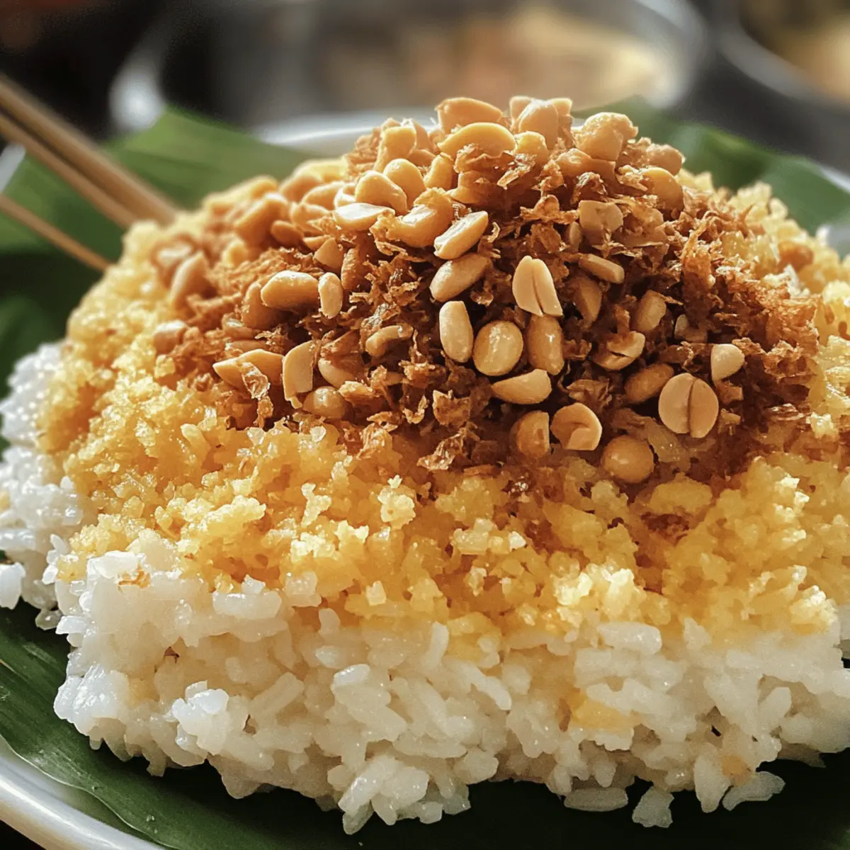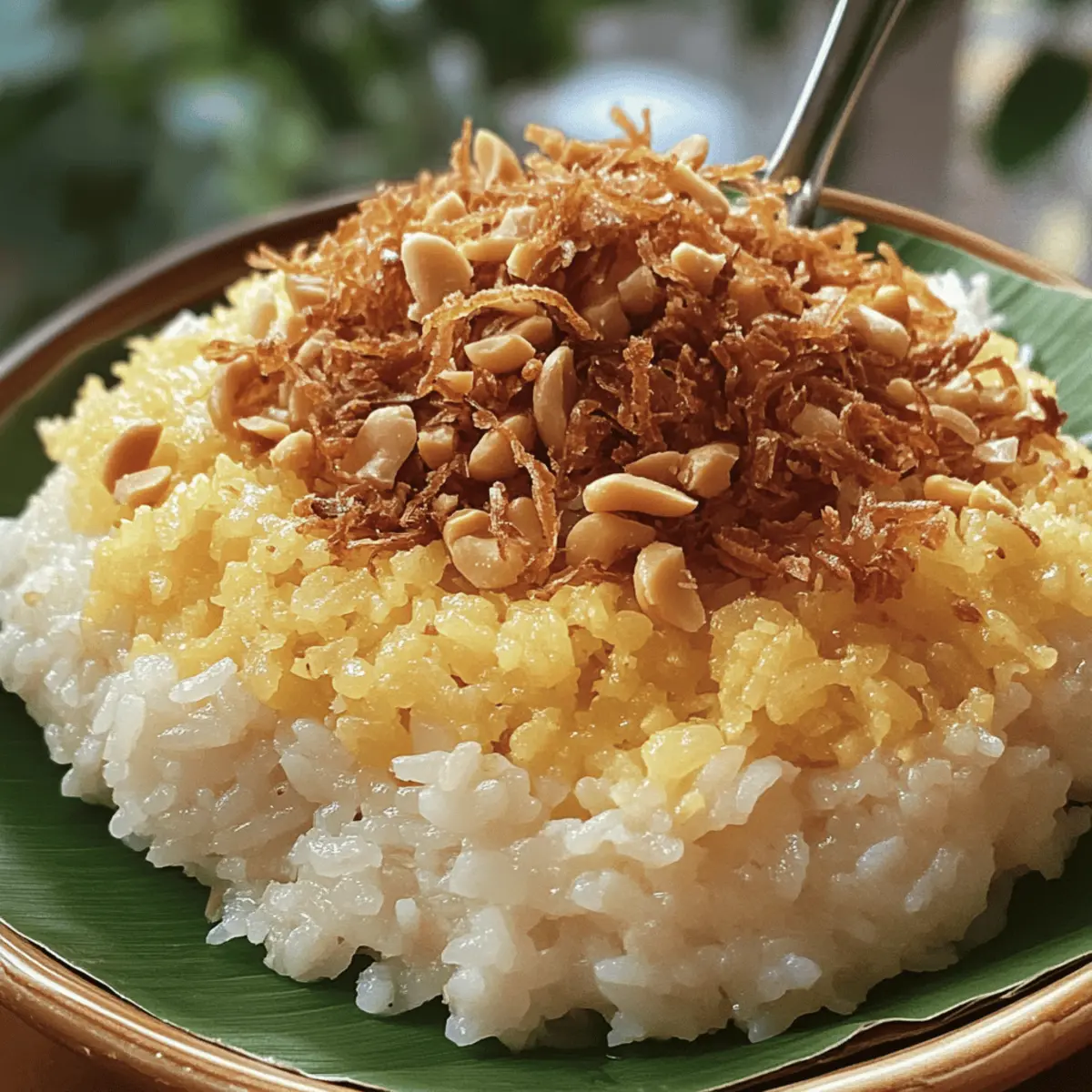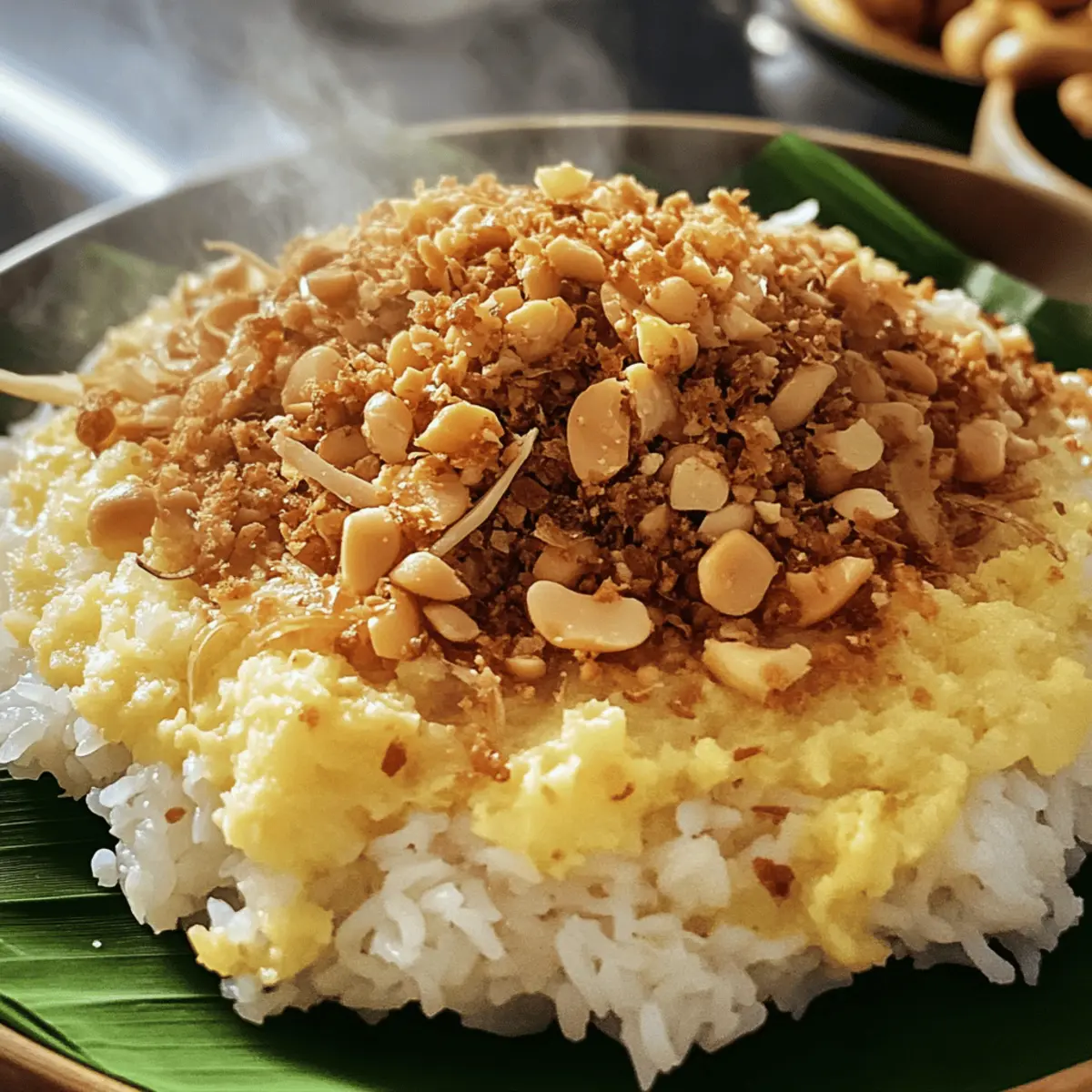 Die köstliche Reise in die Welt des vietnamesischen Xôi beginnt oft mit dem verführerischen Aroma, das beim Dämpfen des glutinösen Reises durch die Küche zieht. Xôi, oder vietnamesischer Klebreis, ist ein echtes Multitalent: Ob als herzhaftes Frühstück oder als süßes Dessert, es bietet unzählige Möglichkeiten, die eigenen Geschmacksvorlieben auszuleben. Besonders begeistert mich an diesem Gericht die einfache Zubereitung und die Tatsache, dass es glutenfrei ist – ideal für alle, die traditionelle Aromen lieben, aber auf ihre Ernährungsweise achten möchten. In meinem Rezept teile ich nicht nur die Grundlagen für das perfekte Xôi, sondern auch kreative Variationen, die das Herz eines jeden Kochliebhabers höher schlagen lassen. Bereit, die Geheimnisse dieser herzlichen Spezialität zu entdecken? Warum ist Xôi so vielseitig? Vielfalt: Xôi ist nicht nur ein Gericht, sondern ein Erlebnis, das in unzähligen Variationen angeboten werden kann – von herzhaft bis süß. Einfache Zubereitung: Mit nur wenigen Zutaten und einfachen Schritten ist es perfekt für Anfänger und erfahrene Köche. Glutenfrei: Dieses Gericht ermöglicht es, traditionelle Aromen zu genießen, ohne auf glutenhaltige Zutaten zurückgreifen zu müssen. Aromenreichtum: Durch die Fusion von Kokosmilch und Mungbohnen entsteht ein einzigartiger Geschmack, der sowohl den Gaumen verwöhnt als auch die Sinne anspricht. Entdecken Sie auch, wie Sie mit Variationen von Xôi Ihren eigenen, modifizierten Twist kreieren können! Zutaten für Xôi Hinweis: Hier sind die wesentlichen Zutaten, die Sie benötigen, um dieses köstliche Xôi zuzubereiten und die Aromen Vietnams in Ihre Küche zu zaubern. Für den Klebreis Glutinöses Reis – bildet die Grundlage des Gerichts; für die gewünschte Klebrigkeit über Nacht einweichen. Kokosmilch – verleiht einen reichen, cremigen Geschmack; kann für eine milchfreie Option durch Mandel- oder Kokoscreme ersetzt werden. Zucker – steigert die Süße, besonders in der süßen Variante; je nach Geschmack anpassen. Salz – hebt die Aromen hervor; wichtig für herzhafte Zubereitungen. Für die Toppings Mungbohnen – sorgen für Cremigkeit und einen erdigen Geschmack; müssen geputzt und gespalten gekocht werden. Frittierte Schalotten – optional als Garnierung für die herzhaften Varianten, sorgen für knusprigen Biss und Umami-Geschmack. Geröstete Erdnüsse – optionales Topping für Süße und Crunch; kann durch geröstete Sesamsamen ersetzt werden, wenn nussfrei gewünscht. Sesamsamen – zur Garnierung; fügt einen leichten nussigen Geschmack hinzu. Kann nach Belieben weggelassen werden. Entdecken Sie die verschiedenen Möglichkeiten, wie Sie das Xôi individuell anpassen und genießen können! Schritt-für-Schritt-Anleitung für das vietnamesische Klebreisrezept (Xôi) Step 1: Reis vorbereiten Legen Sie den glutinösen Reis in eine Schüssel und bedecken Sie ihn mit Wasser. Lassen Sie den Reis über Nacht einweichen, um die gewünschte Klebrigkeit zu erreichen. Am nächsten Tag spülen Sie den Reis gründlich unter fließendem Wasser, bis das Wasser klar bleibt, um überschüssige Stärke zu entfernen, und stellen Sie ihn bereit für das Dämpfen. Step 2: Mungbohnen kochen Während der Reis einweicht, bereiten Sie die mungbohnen vor. Dämpfen Sie die geschälten mungbohnen in einem Dampfkorb für etwa 20 Minuten, bis sie weich sind. Danach nehmen Sie die Bohnen vom Dampf und zerdrücken Sie sie mit einer Gabel oder in einer Schüssel, um eine cremige Konsistenz zu erhalten. Stellen Sie die pürierten Bohnen beiseite. Step 3: Reis dämpfen Bringen Sie einen Dampftopf oder einen großen Topf mit Wasser zum Kochen. Mischen Sie den eingeweichten Reis mit Kokosmilch, einer Prise Salz und Zucker in einer großen Schüssel. Füllen Sie die Mischung in den Dampfkorb, decken Sie ihn ab, und dämpfen Sie den Reis für etwa 40 Minuten, bis er gar und klebrig ist. Nach der Dämpfzeit sollte der Reis glänzen und sich gut zusammenhalten. Step 4: Zutaten schichten Sobald der Reis fertig ist, nehmen Sie ihn vorsichtig aus dem Dampfkorb. In einer geeigneten Schüssel geben Sie zuerst eine Schicht des gedämpften Klebreis und verteilen dann die zerdrückten mungbohnen gleichmäßig darüber. Dies verleiht dem Gericht eine köstliche, cremige Textur und kombiniert wunderbar mit dem Reis. Step 5: Garnieren Krönen Sie das Xôi mit Ihren bevorzugten Toppings. Streuen Sie die frittierten Schalotten für einen herzhaften Biss, gefolgt von gerösteten Erdnüssen und Sesamsamen für zusätzlichen Crunch. Diese Garnierungen bieten nicht nur Geschmack, sondern auch eine ansprechende Präsentation, die Ihr Gericht lebendiger macht. Step 6: Servieren Servieren Sie das Xôi heiß auf einem dekorativen Teller oder in kleinen Schüsseln. Genießen Sie es als herzhaftes Hauptgericht oder als süßes Dessert, je nachdem, welche Toppings Sie gewählt haben. Es ist eine flexible und schmackhafte Option, die sowohl für den Alltag als auch für besondere Anlässe geeignet ist. Lagerung und Einfrieren von Xôi Kühlschrank: Bewahren Sie übrig gebliebenes Xôi in einem luftdichten Behälter im Kühlschrank auf, um die Frische zu erhalten. Genießen Sie es innerhalb von 3 Tagen. Einfrieren: Xôi kann problemlos in Portionen eingefroren werden. Wickeln Sie es gut in Frischhaltefolie und lagern Sie es dann in einem geeigneten Gefrierbehälter. So bleibt es bis zu 2 Monate haltbar. Aufwärmen: Zum Aufwärmen das gefrorene Xôi im Kühlschrank über Nacht auftauen. Anschließend kann es in der Mikrowelle oder im Dampfer erhitzt werden, bis es wieder warm und klebrig ist. Achten Sie auf die Konsistenz: Wenn Sie Xôi aufwärmen, geben Sie ggf. etwas Kokosmilch hinzu, um die ursprüngliche feuchte und klebrige Konsistenz wiederherzustellen. Variationen & Substitutionen Lassen Sie Ihrer Kreativität freien Lauf und passen Sie das Rezept für Xôi ganz nach Ihren eigenen Vorlieben an! Hier sind einige leckere Id