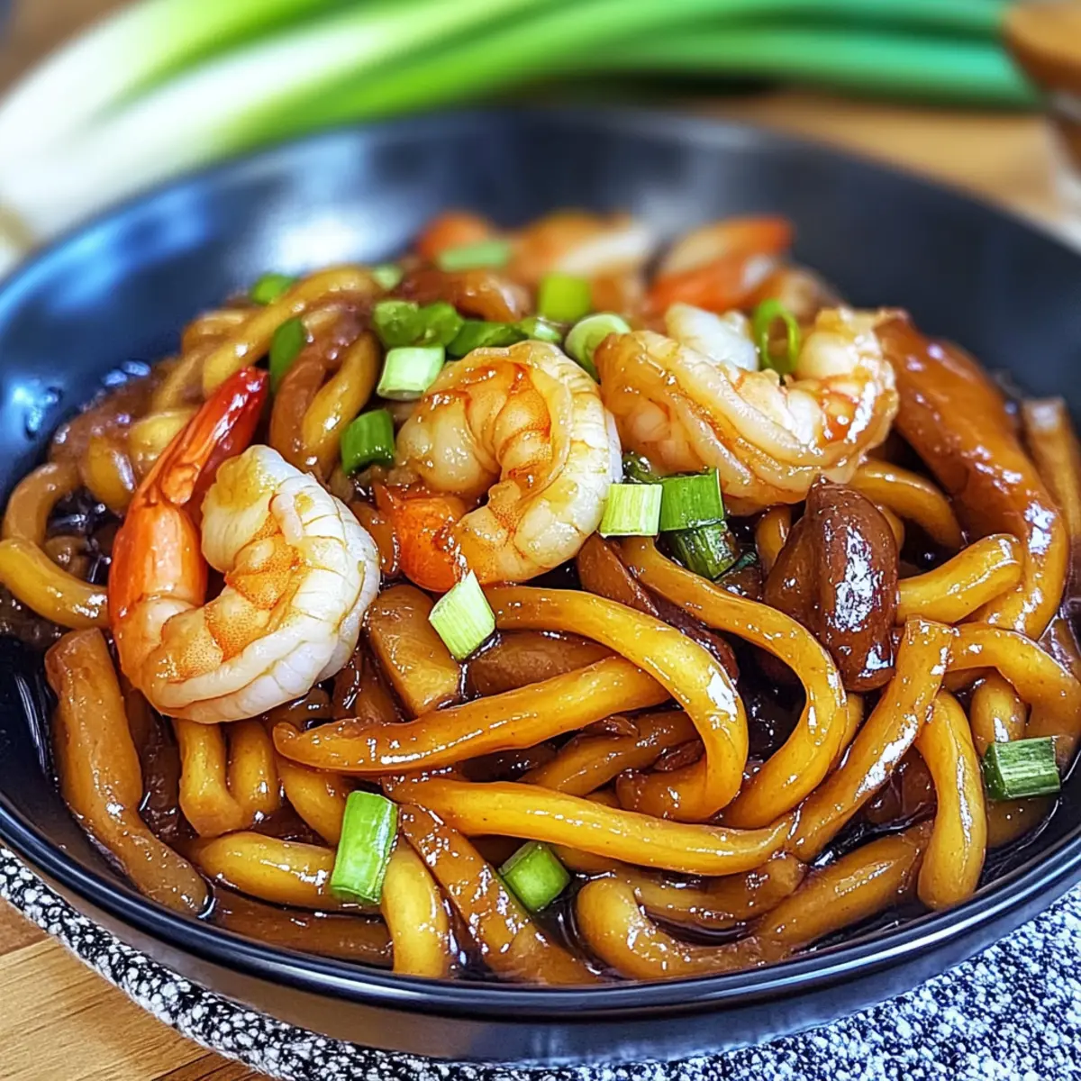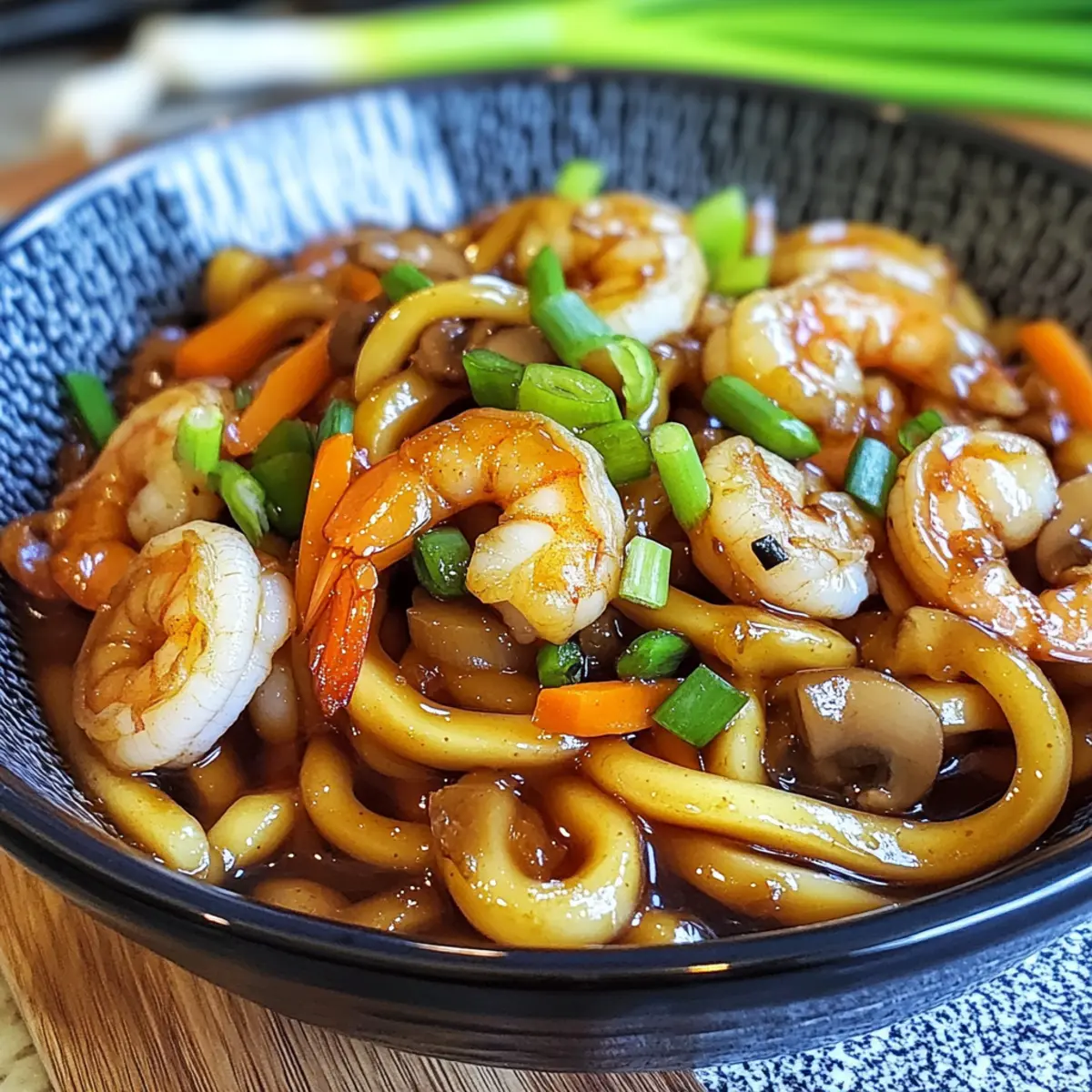 Schmackhafte Vielfalt: Die Kombination aus zarten Udon-Nudeln und saftigen Garnelen sorgt für ein unverwechselbares Geschmackserlebnis, das du garantiert lieben wirst.