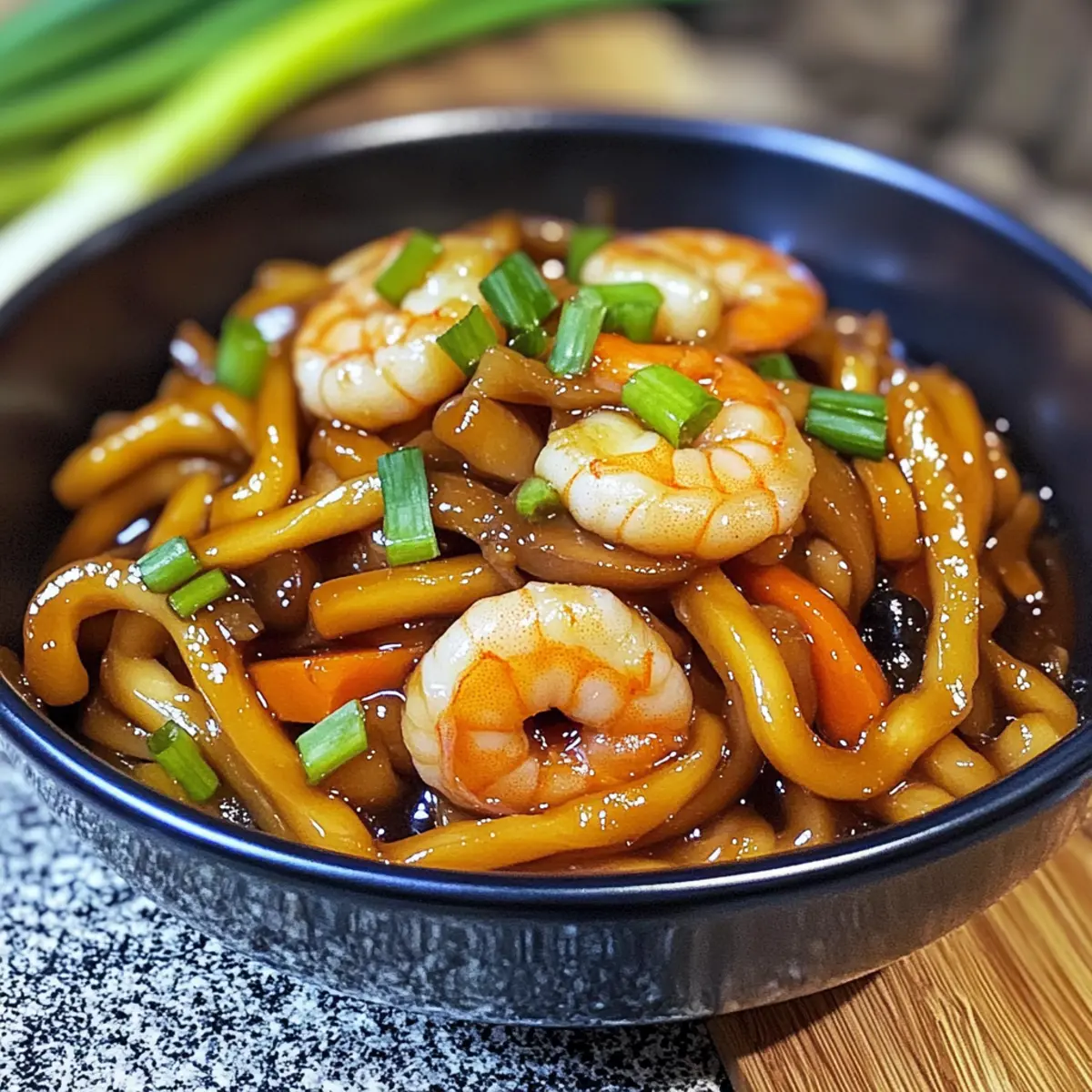 Entdecke den verführerischen Geschmack von Yaki Udon mit Garnelen in nur 20 Minuten und genieße ein gesundes, schnelles Abendessen!