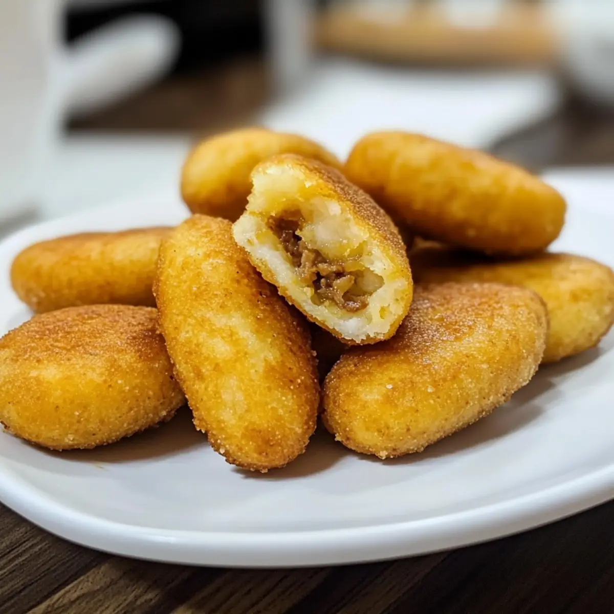 In einer kleinen Gasse in Panama, umgeben von den verlockenden Gerüchen des Straßenimbisses, entdeckte ich die Leidenschaft für Yuca-Küchle, auch bekannt als Carimañolas. Diese köstlichen frittierten Leckerbissen sind nicht nur glutenfrei, sondern auch ein wahres Fest der Aromen. Jeder Biss offenbart eine knusprige Hülle, die eine würzige Füllung aus zartem Fleisch umschließt, während der cremige Yuca-Teig dafür sorgt, dass der Genuss nie zu Ende geht. Diese Yuca-Küchle sind lächerlich einfach zuzubereiten und eignen sich perfekt als Snack oder Vorspeise, die deine Familie und Freunde begeistern werden. Bereit, dein eigenes Stück lateinamerikanischer Straßenküche zu zaubern? Lass uns gemeinsam in die Welt der Carimañolas eintauchen! Warum sind Yuca-Küchle so unwiderstehlich? Einzigartiger Geschmack: Die Kombination aus knuspriger Hülle und würzigem Fleischfüller sorgt für ein Geschmackserlebnis, das deine Sinne betört. Vielseitigkeit: Diese Küchle können mit verschiedenen Füllungen gestaltet werden, von Hühnchen bis hin zu Gemüse, was sie perfekt für jede Vorliebe macht. Schneller Genuss: In kürzester Zeit zubereitet, eignen sie sich hervorragend für eine spontane Snack-Idee oder eine festliche Vorspeise. Glutenfrei: Ideal für alle, die glutenfreies Essen lieben, ohne auf Geschmack zu verzichten. Und wenn du mehr leckere Ideen suchst, schau dir auch die Mac Cheese Kaese oder den Zimt Kaesekuchen Nach an! Yuca-Küchle Zutaten Für den Teig Yuca – Die Basis für die küchle; gefrorene Yuca ist eine praktische Option. Kosher Salz – Verstärkt den Geschmack im Teig; nach Belieben anpassen. Salzbutter – Fügt dem Teig eine reichhaltige Note hinzu; ungesalzene Butter kann verwendet werden. Ei – Bindet den Teig; für eine vegane Variante kann Aquafaba benutzt werden. Mehl – Sorgt für die nötige Konsistenz; glutenfreies Mehl ist eine tolle Alternative. Für die Füllung Rinderhackfleisch – Hauptbestandteil der Füllung; kann durch Hühnerfleisch oder vegetarische Optionen ersetzt werden. Olivenöl – Zum Anbraten der Füllung verwendet; kann durch Raps- oder Pflanzenöl ersetzt werden. Zwiebel, Knoblauch, Roma-Tomate – Bringen Tiefe ins Aroma; gelbe Zwiebel oder andere Tomatensorten sind gute Alternativen. Gewürze (Paprika, Kreuzkümmel, Chili-Pulver, Adobo-Gewürz, Piment) – Geben der Füllung einen aromatischen Kick; nach Geschmack anpassen. Recaito – Eine Korianderbasis, die der Füllung das Wesen lateinamerikanischer Küche verleiht; kann selbstgemacht oder gekauft werden. Schritt-für-Schritt-Anleitung für Yuca-Küchle Step 1: Yuca-Teig zubereiten Die geschälten Yuca-Stücke in einem großen Topf mit kochendem Wasser etwa 25–30 Minuten lang kochen, bis sie weich und mit einer Gabel durchstochen werden können. Anschließend gut abtropfen lassen und in eine große Schüssel geben. Füge das Salz, die Butter und ein wenig vom Kochwasser hinzu und püriere die Mischung, bis sie glatt und cremig ist. Rühre das verquirlte Ei und das Mehl ein, bis ein homogener Teig entsteht. Step 2: Füllung zubereiten In einer Pfanne bei mittlerer Hitze das Olivenöl erhitzen und die gewürfelte Zwiebel und den gehackten Knoblauch darin 3–4 Minuten lang anbraten, bis sie weich und duftend sind. Füge das Rinderhackfleisch dazu und brate es unter häufigem Rühren etwa 5–7 Minuten, bis es gleichmäßig braun ist. Dann die gewürfelte Roma-Tomate und den Recaito einrühren, und alles etwa 2 Minuten köcheln lassen. Vom Herd nehmen und abkühlen lassen. Step 3: Küchle formen Von dem Yuca-Teig kleine Portionen abnehmen und zu Kugeln formen, die ungefähr die Größe eines Tischtennisballs haben. Jede Kugel zwischen den Handflächen leicht flachdrücken und etwa einen Esslöffel der Fleischfüllung in die Mitte geben. Die Ränder vorsichtig zusammenfalten und die Küchle zu einer torpedoförmigen Gestalt formen, um die Füllung gut zu umschließen. Step 4: Küchle frittieren In einer tiefen Pfanne das Öl auf 180 °C vorheizen. Die Yuca-Küchle vorsichtig ins heiße Öl geben und 4–5 Minuten frittieren, bis sie goldbraun und knusprig sind, dabei gelegentlich wenden. Alternativ können die Küchle mit Öl bepinselt und bei 180 °C im Airfryer etwa 25 Minuten lang gebacken werden, wobei sie zur Halbzeit gewendet werden sollten, um eine gleichmäßige Bräunung zu erreichen. Nützliche Tipps für Yuca-Küchle Yuca richtig kochen: Achte darauf, die Yuca lange genug zu kochen, bis sie weich ist, damit der Teig geschmeidig wird. Überprüfe die Konsistenz mit einer Gabel. Füllung nicht überfüllen: Verwende nicht zu viel Füllung, da die Küchle sonst beim Frittieren aufplatzen könnten. Ein Esslöffel ist ideal. Optimale Öltemperatur: Stelle sicher, dass das Öl heiß genug ist (etwa 180 °C), bevor du die Küchle hineinlegst, um eine knusprige Textur zu erzielen. Teigpflege: Verwende eine leicht bemehlte Fläche oder befeuchte deine Hände, um das Festkleben des Teigs zu vermeiden, während du die Küchle formst. Vorbereitung: Du kannst die Yuca-Küchle im Voraus zubereiten und roh im Kühlschrank aufbewahren, bis du bereit bist, sie zu frittieren, sodass sie frisch und köstlich bleiben. Aufbewahrungstipps für Yuca-Küchle Raumtemperatur: Küchle sollten nicht länger als 2 Stunden bei Raumtemperatur aufbewahrt werden, um die Frische zu gewährleiten. Kühlschrank: Im Kühlschrank halten sich die Yuca-Küchle bis zu 3 Tage in einem luftdichten Behälter. So bleiben sie frisch genug, um erneut erwärmt zu werden. Gefrierschrank: Du kannst die Küchle bis zu 2 Monate im Gefrierfach aufbewahren, entweder roh oder nach dem Frittieren. Achte darauf, sie gut einzuwickeln, um Gefrierbrand zu vermeiden. Wiederehitzen: Um die Küchle wieder aufzufrischen, backe sie im Ofen oder Airfryer, bis sie erneut knusprig sind. Das hilft, die köstliche Textur der Yuca-Küchle zu bewahren. Was passt zu Yuca-Küchle? Die perfekte Begleitung zu diesen köstlichen Yuca-K