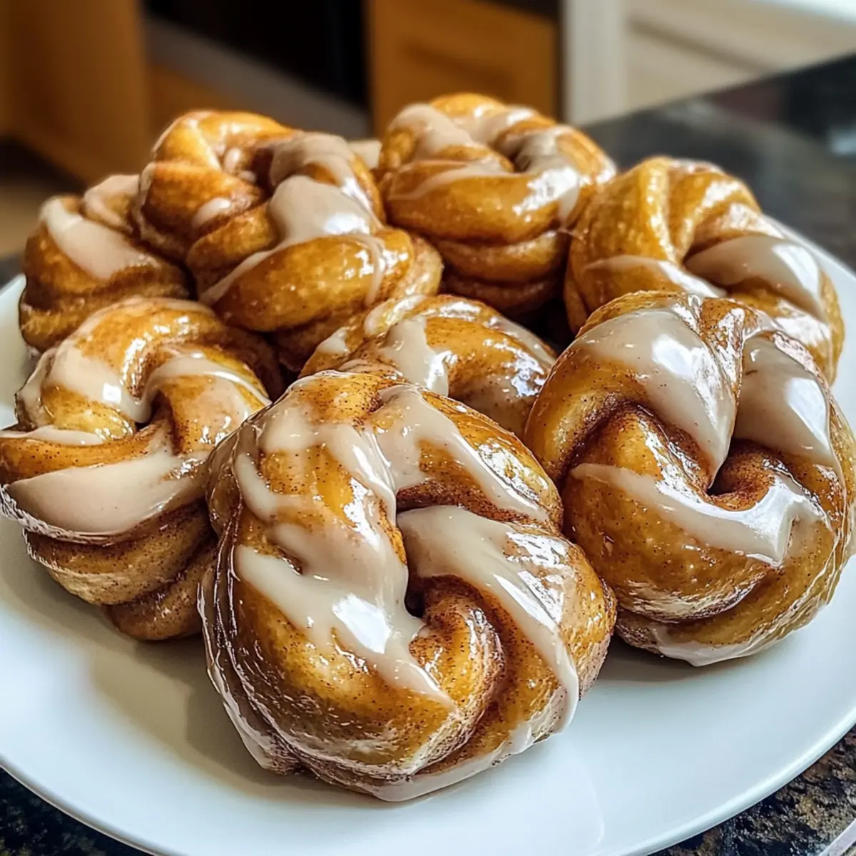 Die Morgenstunden können so hektisch sein, und ich habe oft das Bedürfnis nach einem kleinen Genuss, der mich aufheitert und die Energie für den Tag zurückbringt. Genau hier kommen meine Zimtknoten mit Kaffee-Glasur ins Spiel! Diese köstlichen kleinen Knötchen sind nicht nur schnell und einfach zuzubereiten, sondern sie bringen auch sofort ein Gefühl von Wärme und Gemütlichkeit in die Küche. Das Beste daran? Sie sind perfekt zum Frühstück oder als süßer Snack für zwischendurch. Die fluffigen Knoten sind mit würzigem Zimt gefüllt und erhalten durch die reichhaltige Kaffee-Glasur den ultimativen Kick. Bist du bereit, dich in eine Welt des duftenden Genusses zu stürzen? Lass uns gemeinsam backen! Warum wirst du diese Zimtknoten lieben? Einfachheit, die begeistert: Diese Zimtknoten mit Kaffee-Glasur sind schnell und unkompliziert zu erstellen, selbst für Anfänger in der Küche. Aromatischer Geschmack: Die Kombination aus Zimt und Kaffee sorgt für ein unwiderstehliches Geschmackserlebnis, das deinen Morgen aufhellt. Vielfältige Variationen: Füge Nüsse oder Trockenfrüchte hinzu, um deine Knoten individuell zu gestalten. Perfekte Konsistenz: Fluffige, goldene Knoten, die mit einer glänzenden Glasur gekrönt sind, sind ein echter Augenschmaus. Zeitersparnis: In weniger als einer Stunde zauberst du eine köstliche Leckerei, die du mit Freunden oder Familie teilen kannst. Kaffeegenuss: Kombiniere sie mit deiner Tasse Lieblingskaffee oder -tee für das perfekte Frühstück oder einen süßen Snack. Zimtknoten mit Kaffee-Glasur Zutaten Für den Teig Warme Milch – Aktiviert die Hefe und sorgt für einen feuchten Teig. Tipp: Verwende Hafermilch für eine milchfreie Option. Hefe – Sorgt für das Aufgehen und die fluffige Textur der Knoten. Achte darauf, dass sie frisch ist, für den besten Auftrieb. Zucker – Süßt den Teig und die Füllung. Kann durch braunen Zucker für mehr Tiefe ersetzt werden. Salz – Balanciert die Süße und verbessert den Geschmack. Wichtig, um die Geschmacksentwicklung nicht zu beeinträchtigen. Mehl – Hauptstrukturgeber; sorgt für Elastizität. Raffiniertes Mehl ist empfehlenswert; glutenfreies Mehl kann die Textur verändern. Geschmolzene Butter – Fügt Geschmack und Reichhaltigkeit hinzu. Tipp: Verwende Kokosöl für die vegane Variante. Ei – Wirkt als Bindemittel und verleiht Reichhaltigkeit. Kann durch ein Flax-Ei als vegane Alternative ersetzt werden. Für die Füllung Brauner Zucker – Sorgt für Süße und Feuchtigkeit in der Füllung. Kann durch Kokoszucker für eine gesündere Option ersetzt werden. Gemahlener Zimt – Gibt den Zimtknoten ihren charakteristischen Geschmack. Saigon-Zimt intensiviert den Geschmack. Für die Glasur Puderzucker – Süßt und verdickt die Kaffee-Glasur. Confectioner’s Sugar ist wichtig für eine glatte Glasur. Brewed Coffee – Fügt der Glasur Geschmack hinzu und intensiviert das Kaffee-Erlebnis. Substitution: Verwende Milch oder aromatisierte Creamer bei frischem Kaffee. Vanilleextrakt – Bringt aromatische Geschmacksnoten in die Glasur ein. Verwende reinen Vanilleextrakt für beste Ergebnisse. Diese Zimtknoten mit Kaffee-Glasur sind also nicht nur eine köstliche Leckerei für deine Mornings, sondern auch einfach zuzubereiten und anpassbar! Schritt-für-Schritt-Anleitung für Zimtknoten mit Kaffee-Glasur Schritt 1: Hefe aktivieren Erwärme die Milch, bis sie lauwarm ist, und gib die Hefe sowie den Zucker hinzu. Rühre die Mischung vorsichtig um und lasse sie für 5-10 Minuten ruhen, bis die Oberfläche schäumt. Dieses Blubbern zeigt, dass die Hefe aktiv ist und bereit für den Teig, ideal für deine Zimtknoten mit Kaffee-Glasur. Schritt 2: Teig zubereiten In einer großen Schüssel vermenge das Mehl, den restlichen Zucker und das Salz gründlich. Füge dann die Hefe-Mischung, die geschmolzene Butter und das Ei hinzu. Mische alles, bis ein grober Teig entsteht. Knete den Teig 8-10 Minuten lang von Hand oder 5-7 Minuten mit einem Mixer, bis er glatt und elastisch ist. Schritt 3: Erster Aufgang Forme den Teig zu einer Kugel und lege ihn in eine leicht gefettete Schüssel. Decke sie mit einem sauberen Küchentuch ab und stelle die Schüssel an einen warmen Ort, um den Teig etwa eine Stunde lang gehen zu lassen, bis er sich verdoppelt hat. Der Teig sollte luftig und leicht erscheinen, bereit für die nächste Phase. Schritt 4: Füllung vorbereiten Während der Teig aufgeht, stelle die Füllung her. Vermische die weiche Butter, den braunen Zucker und den Zimt in einer kleinen Schüssel zu einer streichfähigen Paste. Diese Mischung wird das Herz deiner Zimtknoten mit Kaffee-Glasur ausmachen und sorgt für einen köstlichen Geschmack. Schritt 5: Knoten formen Rolle den aufgegangenen Teig auf einer bemehlten Fläche zu einem Rechteck aus, etwa 1 cm dick. Verteile gleichmäßig die vorbereitete Füllung auf dem Teig. Falte ihn der Länge nach in der Mitte zusammen, schneide ihn in Streifen, verdrehe die Streifen und forme sie zu Knoten. Schritt 6: Zweiter Aufgang Lege die geformten Knoten auf ein mit Backpapier belegtes Backblech, achte darauf, dass sie genügend Platz haben. Decke sie ab und lasse sie nochmals 30-40 Minuten gehen, bis sie sichtbar aufgegangen sind. Diese Ruhezeit ist wichtig, um die perfekte Textur für deine Zimtknoten mit Kaffee-Glasur zu erreichen. Schritt 7: Knoten backen Heize den Ofen auf 190°C vor. Backe die Knoten etwa 15-18 Minuten lang, bis sie goldbraun und leicht knusprig sind. Die fertigen Zimtknoten sollten einen herrlichen Duft verbreiten und eine zarte, goldene Farbe haben, ideal zum Verzehr. Schritt 8: Glasur zubereiten Während die Knoten abkühlen, bereite die Kaffee-Glasur zu. Vermische in einer Schüssel den Puderzucker, den frisch gebrühten Kaffee und den Vanilleextrakt gut miteinander, bis die Mischung glatt und cremig ist. Du kannst die Konsistenz nach Belieben anpassen, indem du mehr Puderzucker oder Kaffee hinzufügst. Schritt 9: Servieren Drizzle die vo