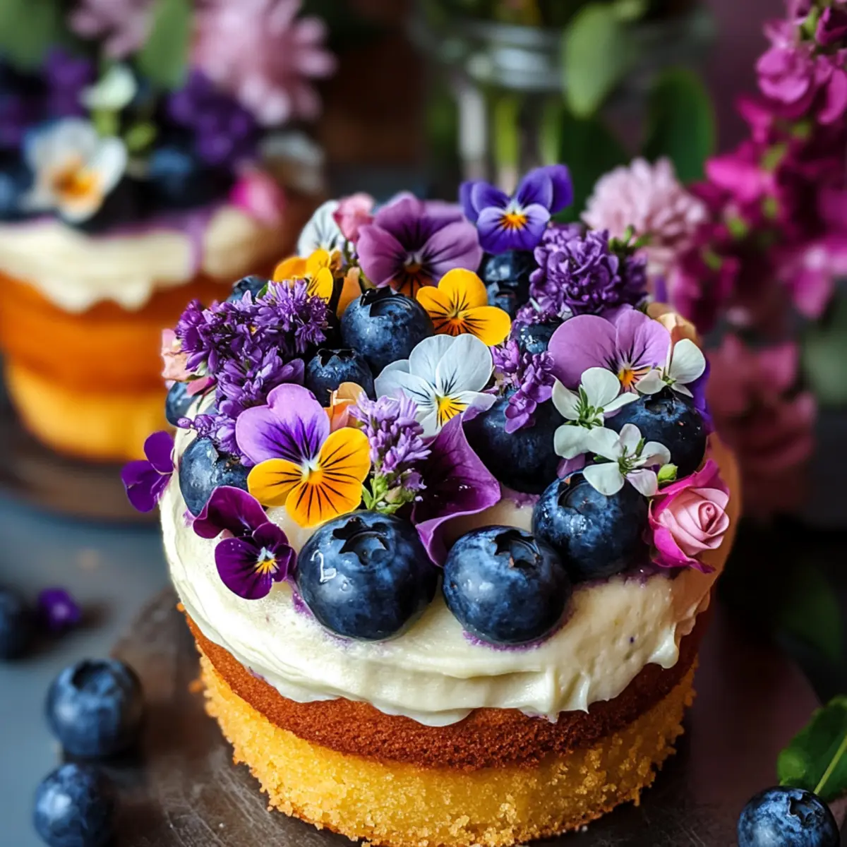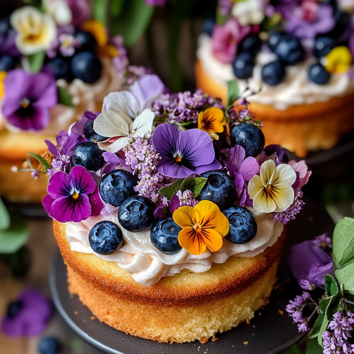 • Dekoration: Verwende verschiedene essbare Blumen für die Garnitur. Das gibt deinen Zitronen-Blaubeer gefüllten Feen Kuchen eine persönliche Note und rückt sie ins Rampenlicht!