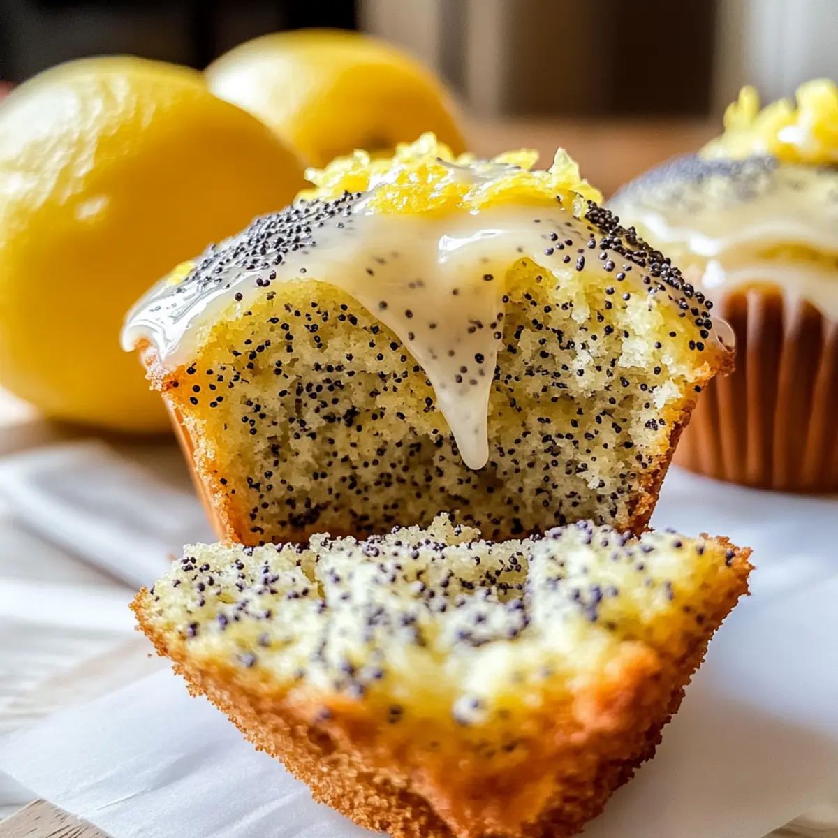 Als ich das erste Mal den süßen Duft von frisch gebackenen Zitronen-Mohn-Muffins in meiner Küche erlebte, wusste ich, dass ich etwas Besonderes kreiert hatte. Diese fluffigen Muffins sind eine wunderbare Kombination aus spritziger Zitrone und dem knusprigen Biss der Mohnsamen, die sie einfach unwiderstehlich macht. Sie sind nicht nur schnell zubereitet und daher perfekt für ein Frühstück oder einen gemütlichen Snack, sondern überzeugen auch mit ihrer feuchten Textur, die jeden Bissen zu einem kleinen Genussmoment macht. Ob zum Brunch mit Freunden oder einfach für einen Moment der Selbstverwöhnung – diese Muffins bringen jedem Tag ein Stückchen Freude. Ich kann es kaum erwarten, euch zu zeigen, wie ihr diese leckeren Zitronen-Mohn-Muffins selbst backen könnt. Seid ihr bereit für eine saftige Überraschung? Warum sind diese Muffins so besonders? Einfachheit: Die Zubereitung der Zitronen-Mohn-Muffins ist ganz unkompliziert und benötigt nur wenige Grundzutaten. Frischer Geschmack: Die Kombination aus spritziger Zitrone und knackigen Mohnsamen sorgt für einen einzigartigen und erfrischenden Geschmack. Vielseitigkeit: Sie eignen sich hervorragend als Frühstück, Snack oder Dessert und sind der perfekte Begleiter für eine Tasse Tee oder Kaffee. Schnelle Zubereitung: Dank der schnellen Anleitung sind sie in kürzester Zeit fertig, sodass du mehr Zeit für die schönen Dinge im Leben hast. Crowd-Pleaser: Diese Muffins sind bei jedem beliebt und zaubern jedem ein Lächeln ins Gesicht! Und wenn du nach weiteren Ideen für kreative Muffin-Varianten suchst, schau dir unbedingt auch unsere anderen Rezepte an! Zutaten für Zitronen-Mohn-Muffins • Hier sind alle notwendigen Zutaten für die perfekten Zitronen-Mohn-Muffins. Für den Teig Allzweckmehl – sorgt dafür, dass die Muffins die ideale Struktur und Textur haben. Zucker – fügt die süße Note hinzu, die die Spritzigkeit der Zitrone ausgleicht. Backpulver – ist der Geheimtipp für fluffige Muffins, die beim Backen aufgehen. Salz – hebt den Geschmack der Muffins und harmoniert wunderbar mit den Zutaten. Eier – verbinden die Zutaten und bringen Feuchtigkeit in den Teig. Buttermilch – sorgt für eine zarte Krume und eine saftige Textur. Frische Buttermilch bringt den besten Geschmack. Zitronenschale – verstärkt das zitrusfrische Aroma und macht die Muffins besonders lebendig. Zitronensaft – fügt eine köstliche Säure hinzu, die die Muffins noch spritziger macht. Mohnsamen – bringen einen feinen, nussigen Crunch, der jedem Bissen das gewisse Etwas verleiht. Für die Glasur Puderzucker – süßt die Glasur und sorgt für einen wunderschönen Glanz. Zusätzlicher Zitronensaft – verstärkt den Zitrusgeschmack der Glasur und sorgt für die perfekte Konsistenz. Step-by-Step Instructions für Zitronen-Mohn-Muffins Step 1: Ofen vorheizen Heize den Ofen auf 175°C (350°F) vor und lege ein Muffinblech mit Papierförmchen aus. Dies sorgt dafür, dass die Muffins nicht anhaften und die Reinigung später einfacher wird. Achte darauf, dass der Ofen die Temperatur erreicht hat, bevor du mit der Zubereitung beginnst. Step 2: Trockene Zutaten mischen In einer großen Rührschüssel vermenge das Allzweckmehl, den Zucker, das Backpulver und das Salz gründlich miteinander. Mische die trockenen Zutaten, bis sie gut kombiniert sind und keine Klümpchen vorhanden sind. Diese Mischung bildet die Grundlage für deine Zitronen-Mohn-Muffins und sorgt für die notwendige Struktur. Step 3: Feuchte Zutaten vorbereiten Nimm eine separate Schüssel und gib die Eier, die Buttermilch, den Zitronensaft und die Zitronenschale hinein. Verquirle die Zutaten gründlich, bis sie gut vermischt sind. Achte darauf, die Frische der Zitronen zu nutzen, um den besten Geschmack für deine Muffins zu erzielen. Step 4: Trockene und feuchte Zutaten kombinieren Gieße die feuchte Mischung vorsichtig in die Schüssel mit den trockenen Zutaten. Rühre alles sanft mit einem Spatel, bis gerade so ein Teig entsteht. Vermeide es, zu lange zu rühren, da dies die Muffins dicht machen kann. Füge abschließend die Mohnsamen hinzu und falte sie vorsichtig unter den Teig. Step 5: Muffinblech füllen Verteile den Muffinteig gleichmäßig in die vorbereiteten Muffinförmchen, bis sie etwa zu zwei Dritteln gefüllt sind. Achte darauf, dass die Teigmengen in jedem Förmchen gleich sind, um gleichmäßig gebackene Muffins zu erhalten. Dabei kannst du einen Eisportionierer verwenden, um das Portionieren zu erleichtern. Step 6: Backen Setze das Muffinblech in den vorgeheizten Ofen und backe die Muffins für 18-20 Minuten. Sie sind fertig, wenn die Oberflächen goldbraun sind und ein Zahnstocher, der in die Mitte gestochen wird, sauber herauskommt. Halte während des Backens ein Auge auf die Muffins, damit sie nicht überbacken werden. Step 7: Aus dem Ofen nehmen und abkühlen Lass die Muffins nach dem Backen für etwa 5 Minuten im Muffinblech abkühlen. Danach kannst du sie vorsichtig auf ein Kuchengitter setzen, damit sie vollständig auskühlen. Dies verhindert, dass die Muffins von unten feucht werden und hilft, die perfekte Textur zu erhalten. Step 8: Glasur zubereiten (optional) Für die Glasur mische Puderzucker mit etwas zusätzlichem Zitronensaft in einer kleinen Schüssel, bis die gewünschte Konsistenz erreicht ist. Die Glasur sollte dickflüssig, aber gießbar sein. Gieße die Glasur gleichmäßig über die abgekühlten Muffins, um ihnen eine köstliche, süße Note zu verleihen. Zitronen-Mohn-Muffins – Variationen & Substitutionen Lass deiner Kreativität freien Lauf und entdecke, wie du diese Muffins nach deinem Geschmack anpassen kannst! Glutenfrei: Ersetze das Allzweckmehl durch eine glutenfreie Mehlmischung für eine glutenfreie Option. Vegan: Nutze Flax-Eier anstelle von Eiern und pflanzliche Milch statt Buttermilch für eine vegane Variante. Fruchtige Note: Ergänze den Teig mit frischen Heidelbeeren oder Himbeeren für einen fruchtigen Twist. Zwiebel
