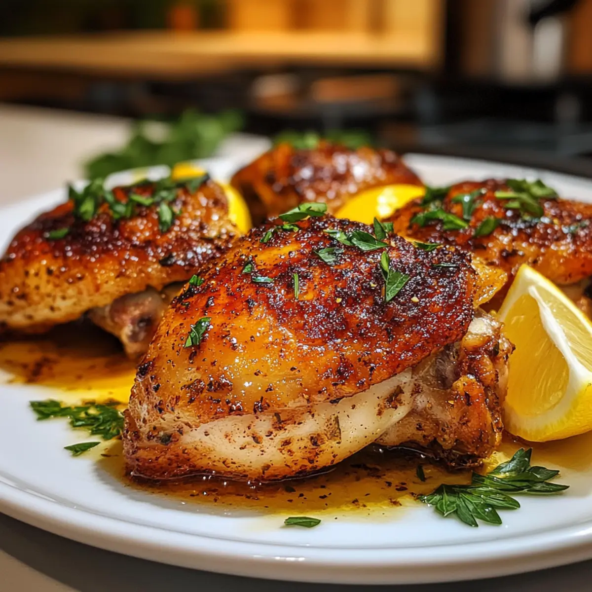 Einfaches Rezept für Zitronen-Paprika-Brathähnchenschenkel, das frische Aromen und rauchige Intensität vereint.