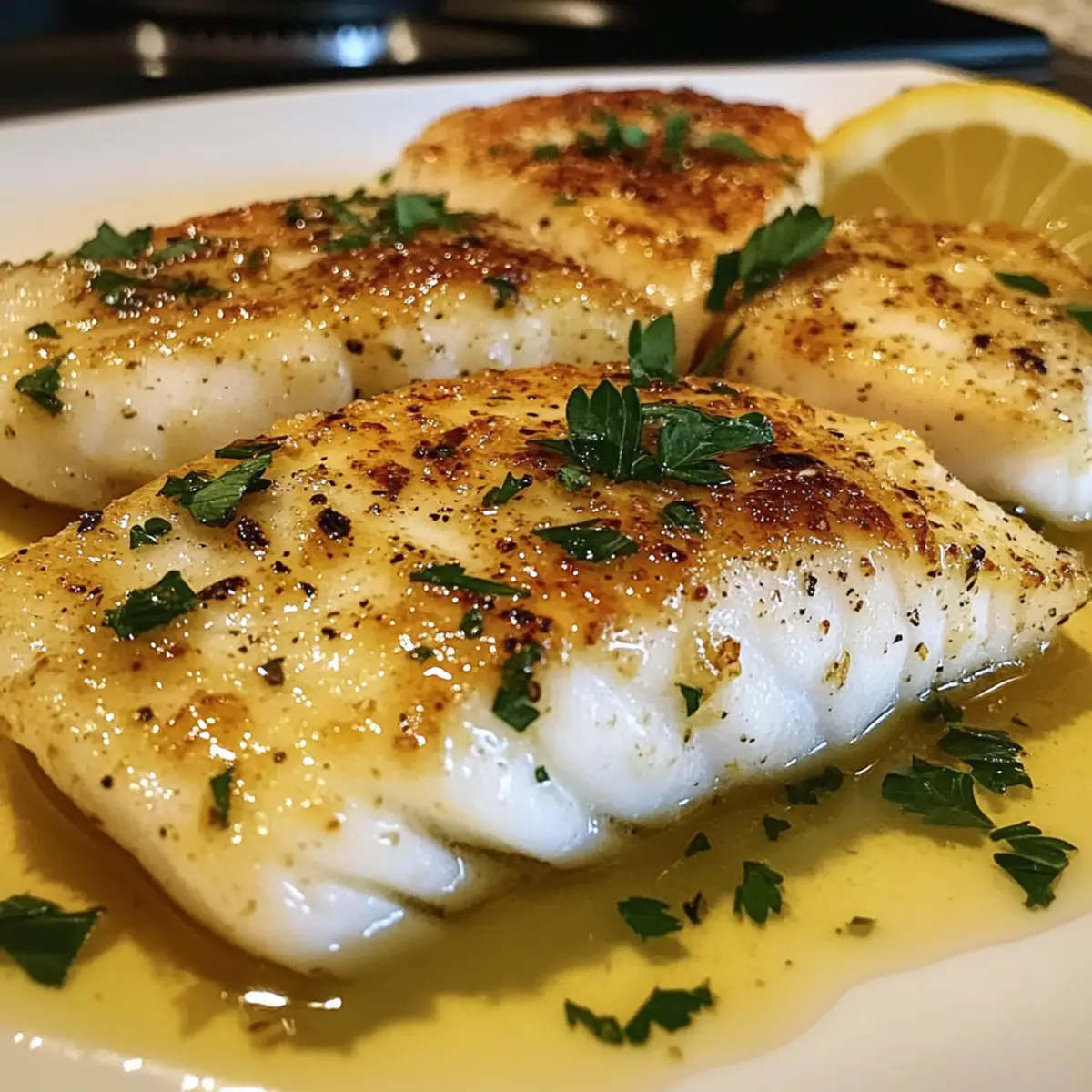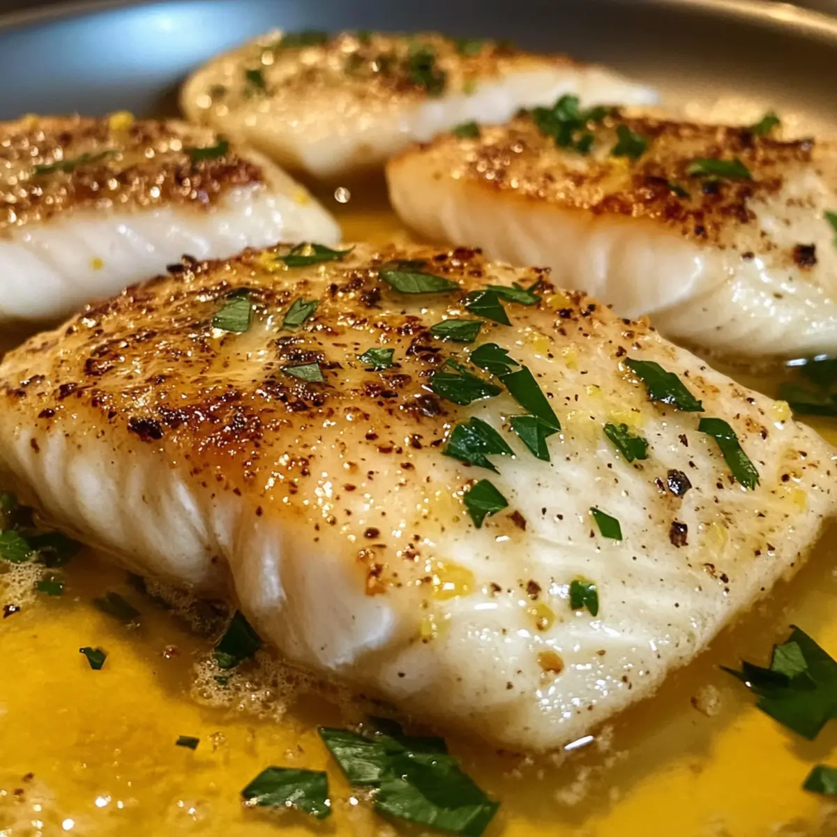 Ein zarter Biss in den frisch gebratenen Fisch, umhüllt von einer spritzigen Zitronenbuttersoße, wird selbst die einfachsten Abendessen in ein Festmahl verwandeln. Mit meinem Rezept für Zitronenbutterfischfilet lernst du nicht nur, wie du in nur 25 Minuten ein köstliches Gericht zauberst, sondern auch, wie vielseitig dieses Rezept ist, da du verschiedene weiße Fischsorten wie Kabeljau oder Tilapia verwenden kannst. Dieses Gericht ist der perfekte Begleiter für stressige Wochentage und beeindrucken gleichzeitig bei besonderen Anlässen. Der gesunde hohe Proteingehalt sorgt dafür, dass du dich nach dem Essen zufrieden und energiegeladen fühlst. Bereit, dein eigenes, köstliches Zitat zu kreieren? Lass uns loslegen! Warum wirst du dieses Rezept lieben? Einfachheit: Die Zubereitung ist kinderleicht und benötigt nur grundlegende Kochkünste. Frischer Geschmack: Der Kombination aus Zitronenbutter und frischem Fisch verleiht jedem Bissen eine erfrischende Note, die den Gaumen erfreut. Vielseitigkeit: Du kannst dieses Rezept anpassen, indem du verschiedene Fischsorten wie Kabeljau oder Lachs verwendest, was dir unzählige Möglichkeiten bietet. Schnell zubereitet: In nur 25 Minuten hast du ein köstliches Gericht auf dem Tisch – ideal für hektische Wochentage. Gesundheitsbewusst: Mit etwa 350 Kalorien und 30 Gramm Protein pro Portion ist dieses Gericht nicht nur lecker, sondern auch nahrhaft. Läuft bei jedem gut: Ob im Alltag oder bei besonderen Anlässen, dein Zitronenbutterfischfilet wird immer ein Hit sein! Nutze auch unsere Tipps für eine perfekte Zubereitung. Zitronenbutterfischfilet Zutaten • Die perfekte Grundlage für dein Gericht! Fischfilets – Die Hauptzutat, die eine mageren Proteinbasis bietet. Verwendung von Kabeljau, Tilapia, oder Lachs für verschiedenen Geschmack. Olivenöl (2 Esslöffel) – Sorgt für Feuchtigkeit und Geschmack während des Kochens. Kann auch durch Avocadoöl ersetzt werden. Paprika (1 Teelöffel) – Verleiht Farbe und einen milden Geschmack. Knoblauchpulver (1 Teelöffel) – Hebt das Geschmacksprofil des Fisches hervor. Zwiebelpulver (1 Teelöffel) – Gibt Tiefe zu den Gewürzen. Butter (4 Esslöffel) – Die Grundlage für die köstliche Zitronenbuttersoße. Nutze für eine leichtere Variante eine fettarme Butteralternative. Frischer Knoblauch, gehackt (4 Zehen) – Bringt aromatischen Geschmack in die Soße. Zitronensaft und -zesten (von 2 Zitronen) – Sorgt für den essenziellen spritzigen Geschmack. Frische Petersilie, gehackt (1 Esslöffel) – Für die Garnitur und zusätzlichen Geschmack. Salz und Pfeffer – Nach Geschmack, um den Fisch und die Soße abzuschmecken. Schritt-für-Schritt-Anleitung für Zitronenbutterfischfilet Step 1: Fisch vorbereiten Den Fisch gründlich abtrocknen und mit Olivenöl beträufeln. Beide Seiten der Fischfilets mit Salz, Pfeffer, Paprika, Knoblauchpulver und Zwiebelpulver würzen. Diese Zubereitung sorgt für eine aromatische Basis des Zitronenbutterfischfilets, die den Geschmack bei jedem Bissen entfaltet. Step 2: Fisch braten Eine große Pfanne bei mittlerer bis hoher Hitze erhitzen. Die gewürzten Fischfilets in die heiße Pfanne legen und für 3-4 Minuten braten, bis sie goldbraun und leicht knusprig sind. Anschließend die Filets umdrehen und die andere Seite ebenfalls 3-4 Minuten braten, bis der Fisch sich leicht mit einer Gabel zerteilen lässt und durchgegart ist. Step 3: Soße zubereiten Die Fischfilets aus der Pfanne nehmen und beiseitelegen. In der gleichen Pfanne bei mittlerer Temperatur 4 Esslöffel Butter zusammen mit 2 Esslöffeln Olivenöl schmelzen. Den gehackten Knoblauch hinzufügen und 1-2 Minuten braten, bis er aromatisch und leicht goldbraun ist, dann Zitronensaft und -zesten einrühren. Mit Salz und Pfeffer abschmecken. Step 4: Kombinieren und servieren Die gebratenen Fischfilets auf eine Servierplatte legen und großzügig mit der warmen Zitronenbuttersoße überziehen. Mit frisch gehackter Petersilie garnieren und sofort servieren. Dieses Zitronenbutterfischfilet ist ein schneller Genuss, der jedem Gericht eine besondere Note verleiht! Expertentipps für Zitronenbutterfischfilet Frischer Fisch: Achte darauf, stets frische Fischfilets zu verwenden, um den besten Geschmack zu erzielen und die natürliche Textur zu bewahren. Nicht überfüllen: Überlade die Pfanne nicht mit zu vielen Filets auf einmal. Dies sorgt für ein gleichmäßiges Garen und eine schöne Bräunung. Ruhezeit beachten: Lass den Fisch nach dem Braten kurz ruhen, damit er die Feuchtigkeit behält und zart bleibt. Kochüberwachung: Überwache den Fisch während des Garens genau, da er schnell fertig ist. Er ist perfekt, wenn er sich leicht mit einer Gabel zerteilen lässt. Alternativen nutzen: Experimentiere mit verschiedenen weißen Fischsorten, wie Kabeljau oder Lachs, um das Zitronenbutterfischfilet nach deinem Geschmack zu variieren. Was passt gut zum Zitronenbutterfischfilet? Ein köstliches Zitronenbutterfischfilet verdient die besten Begleiter, um ein harmonisches und ausbalanciertes Menü zu kreieren. Cremige Kartoffelpüree: Die samtige Textur des Pürees harmoniert wunderbar mit der leichten Zitronensoße und bietet einen schönen Kontrast. Gedünstetes Gemüse: Frisches, saisonales Gemüse wie Brokkoli oder grüne Bohnen bringt Farbe auf den Teller und ergänzt die frischen Aromen des Fisches. Reis: Ob Basmati oder Jasminreis, eine neutrale Beilage wie Reis nimmt die köstliche Zitronenbuttersoße auf und ergänzt das Gericht perfekt. Frischer gemischter Salat: Ein leichter Salat mit Rucola, Tomaten und einem spritzigen Dressing ist die perfekte Erfrischung dazu und bringt zusätzliche Frische. Zitronenhühnchen: Wenn du den Fisch mit einer Freude am Zitrusgeschmack kombinieren möchtest, könnte ein Zitronenhühnchen eine wunderbare Ergänzung sein. Weißwein: Ein gekühlter Sauvignon Blanc oder ein trockener Riesling passt perfekt zum Zitronenbutterfischfilet und hebt die Aromen des Gerichts hervor