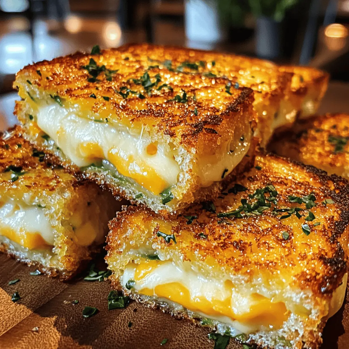 Die Küche duftet verführerisch, während ich die Zucchini für mein nächstes Projekt vorbereite. Diese Zucchini-Crust-Grilled-Cheese-Quadrate sind nicht nur eine kreative Abwandlung des traditionellen Käsegerichts, sie bieten auch den perfekten Genuss für alle, die auf der Suche nach einer gesünderen Alternative sind. Mit einer knusprigen Zucchini-Basis und einer aromatischen Käsemischung sind diese quadratischen Köstlichkeiten ideal für alle, die Low-Carb oder keto-freundlich essen wollen. Außerdem sind sie blitzschnell zubereitet und ein echtes Highlight auf jeder Feier oder einfach für einen gemütlichen Abend zu Hause. Neugierig, wie diese gesunde Variante der geliebten Grillkäse-Schnitte in Ihrer eigenen Küche gelingt? Warum werden Sie dieses Rezept lieben? Einzigartig, die Zucchini-Crust verleiht einem klassischen Gericht eine köstliche Wendung und sorgt für ein aufregendes Geschmackserlebnis. Gesundheitsbewusst, ideal für alle, die auf Low-Carb oder keto achten, ohne auf Genuss verzichten zu müssen. Einfache Zubereitung, eine unkomplizierte Anleitung garantiert, dass auch Kochanfänger diese köstlichen Quadrate meistern. Vielseitig, fügen Sie Zutaten wie Spinat oder verschiedene Käsesorten hinzu, um Ihre eigenen Kreationen zu gestalten. Perfekte Textur, knusprige Außenschicht und ein geschmolzener Käsekern machen jedes Stück unwiderstehlich. Verpassen Sie nicht die Möglichkeit, diese herzhaften Zucchini-Crust-Grilled-Cheese-Quadrate zu genießen, vielleicht sogar mit einer warmen Tomatensuppe als Begleitung! Zutaten für Zucchini-Crust-Grilled-Cheese-Quadrate • Für alle Käseliebhaber und gesundheitsbewusste Genießer! Für den Boden Zucchini – bildet die Basis und ist kalorienarm; Achten Sie darauf, überschüssige Feuchtigkeit zu entfernen, um die richtige Textur zu erzielen. Mozzarella Käse – sorgt für Stretch und Bindung der Kruste; Unverzichtbar für den klassischen Käsegeschmack. Parmesan Käse – fügt herzhaftigkeit hinzu; Verbessert die Geschmackstiefe. Eier – dienen als Bindemittel und tragen zur Reichhaltigkeit bei; Wesentlich für die Formhaltung. Mandelnmehl – als low-carb Alternative für eine nussige Note; Kann durch Weizenmehl ersetzt werden, wenn Sie nicht keto sind. Gewürze (Knoblauchpulver, Zwiebelpulver, italienische Gewürzmischung) – heben das geschmackliche Profil hervor; Machen das Gericht von einfach zu köstlich. Für die Füllung Cheddar Käse – der Hauptbestandteil; Kann mit anderen Käsesorten für Variation gemischt werden. Für das Grillen Olivenöl – wird zum Braten verwendet; Eine gesündere Fettoption für eine goldene Kruste. Optionale Garnitur Basilikum oder Petersilie – fügt visuelle Frische hinzu; Verbessert die Präsentation. Diese Zucchini-Crust-Grilled-Cheese-Quadrate sind ein Genuss für jeden Gaumen, ohne das schlechte Gewissen – perfekt für jeden, der sich gesund ernähren möchte! Schritt-für-Schritt-Anleitung für Zucchini-Crust-Grilled-Cheese-Quadrate Schritt 1: Zucchini vorbereiten Reiben Sie die Zucchini mit einer Reibe und drücken Sie sie in einem Küchentuch kräftig aus, um überschüssige Feuchtigkeit zu entfernen. Dies ist wichtig, damit die Zucchini-Crust nicht matschig wird. Der Vorgang sollte etwa 5 bis 10 Minuten in Anspruch nehmen, aber das Ergebnis wird sich lohnen. Schritt 2: Krusten-Zutaten mischen In einer großen Schüssel kombinieren Sie die ausgepresste Zucchini, den Mozzarella, den Parmesan, die Eier, das Mandelnmehl sowie die Gewürze wie Knoblauch- und Zwiebelpulver. Rühren Sie die Mischung gut um, bis sie zusammenhält, aber vermeiden Sie es, zu lange zu mischen, damit die Textur erhalten bleibt. Dies sollte etwa 3 Minuten in Anspruch nehmen. Schritt 3: Kruste formen Heizen Sie Ihren Ofen auf 200 °C (400 °F) vor. Fetten Sie ein Backblech leicht ein und verteilen Sie die Zucchini-Mischung gleichmäßig darauf. Die Schicht sollte etwa 1/4 Zoll dick sein. Achten Sie darauf, dass die Oberfläche glatt und gleichmäßig ist, was besonders wichtig für die gleichmäßige Backzeit ist. Schritt 4: Kruste backen Backen Sie die Zucchini-Crust für 20-25 Minuten, bis sie goldbraun und fest ist. Verwenden Sie einen Zahnstocher, um die Garheit zu überprüfen – wenn er sauber herauskommt, ist die Kruste bereit. Die Zeit kann je nach Ofen variieren, also behalten Sie sie im Auge! Schritt 5: In Quadrate schneiden Lassen Sie die gebackene Kruste etwas abkühlen, bevor Sie sie in 3-Zoll-Quadrate schneiden. Dies macht das Handling einfacher und hilft, die Formen beim weiteren Zusammenbauen der Zucchini-Crust-Grilled-Cheese-Quadrate zu bewahren. Dies sollte nicht länger als 5 Minuten dauern. Schritt 6: Grilled Cheese zusammensetzen Legen Sie eine dicke Scheibe Cheddar-Käse auf die Hälfte der Zucchini-Quadrate. Danach setzen Sie ein weiteres Quadrat oben auf, um kleine Sandwiches zu bilden. Achten Sie darauf, dass der Käse gut zwischen den Krusten liegt, damit er beim Grillen schmilzt. Schritt 7: Quadrate grillen Erhitzen Sie etwas Olivenöl in einer Pfanne bei mittlerer Hitze. Legen Sie die Sandwiches vorsichtig hinein und braten Sie sie 3-4 Minuten pro Seite, bis sie goldbraun sind und der Käse schmilzt. Nutzen Sie einen Spatel, um die Sandwiches vorsichtig zu wenden, um ein Kleben zu verhindern. Schritt 8: Servieren und garnieren Richten Sie die Zucchini-Crust-Grilled-Cheese-Quadrate auf einem Teller an und garnieren Sie sie optional mit frischen Kräutern wie Basilikum oder Petersilie. Die Präsentation wird nicht nur ansprechend, sondern auch appetitlich sein und Freude beim Servieren bereiten. Lagerungstipps für Zucchini-Crust-Grilled-Cheese-Quadrate Bei Raumtemperatur: Lassen Sie die Quadrate nach dem Grillen vollständig abkühlen, bevor Sie sie in einem luftdichten Behälter aufbewahren. Sie sind bei Raumtemperatur bis zu 2 Stunden haltbar. Kühlschrank: Bewahren Sie die Reste in einem luftdichten Behälter im Kühlschrank auf. Dort bleiben die Zucchini-Crust